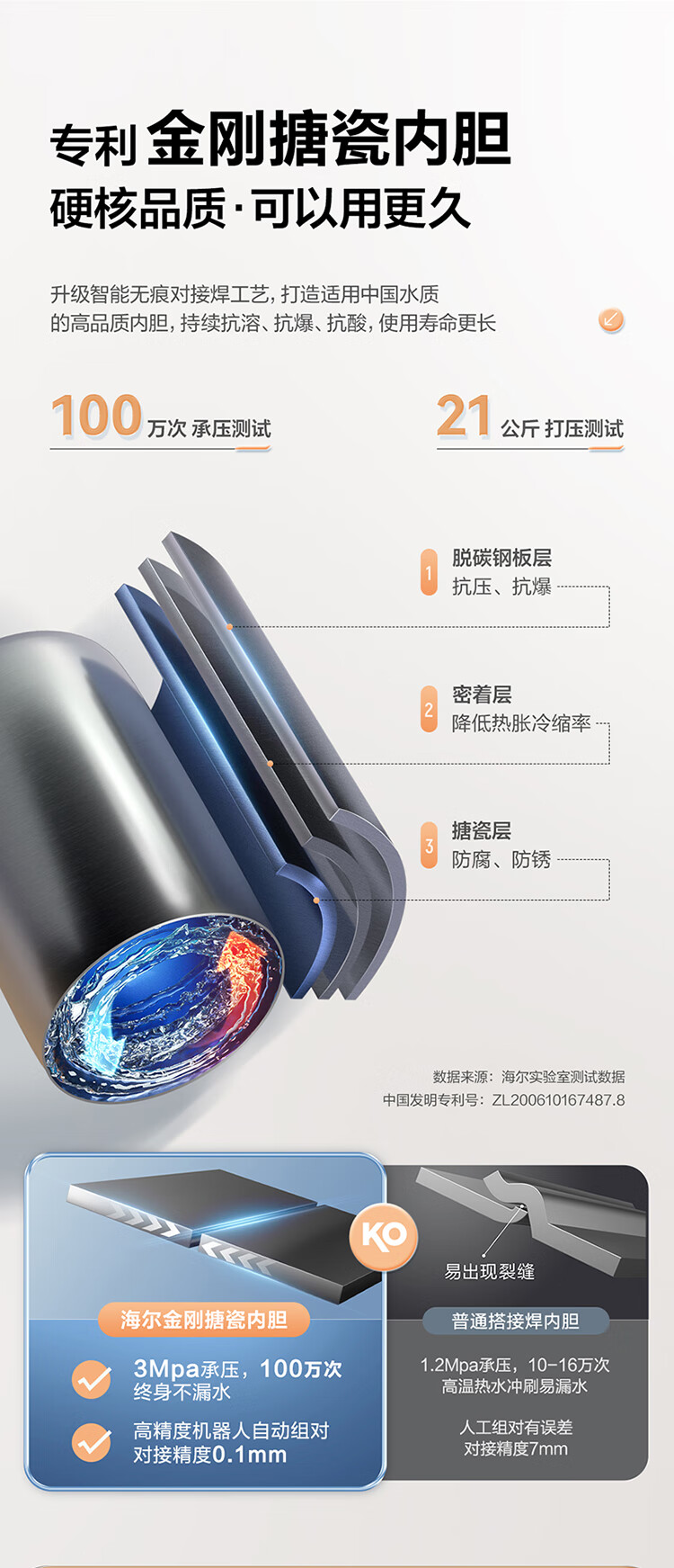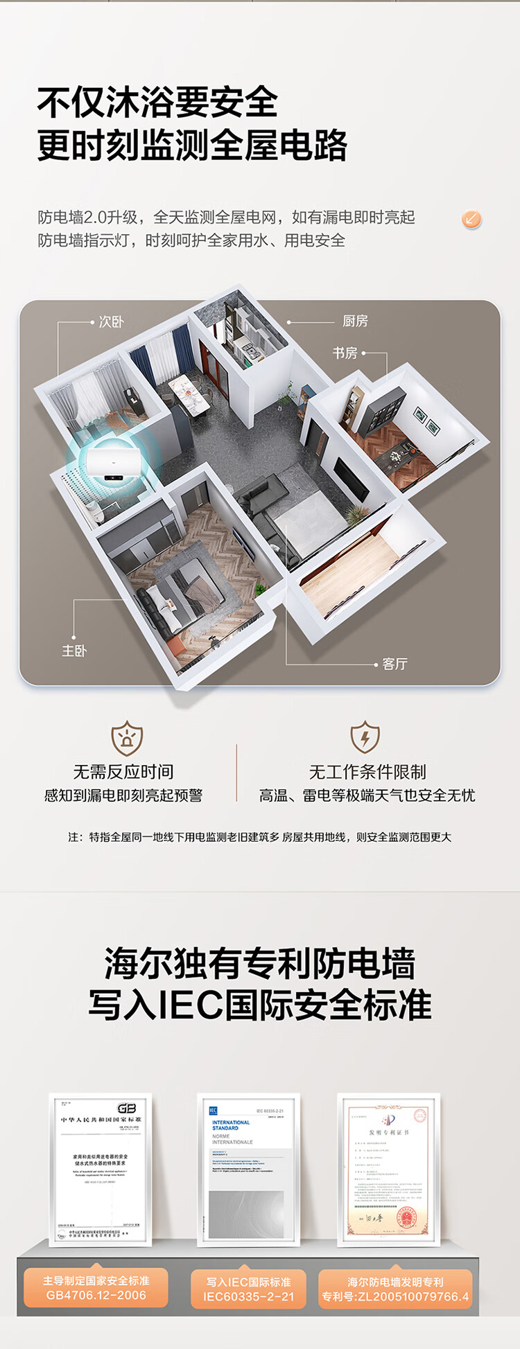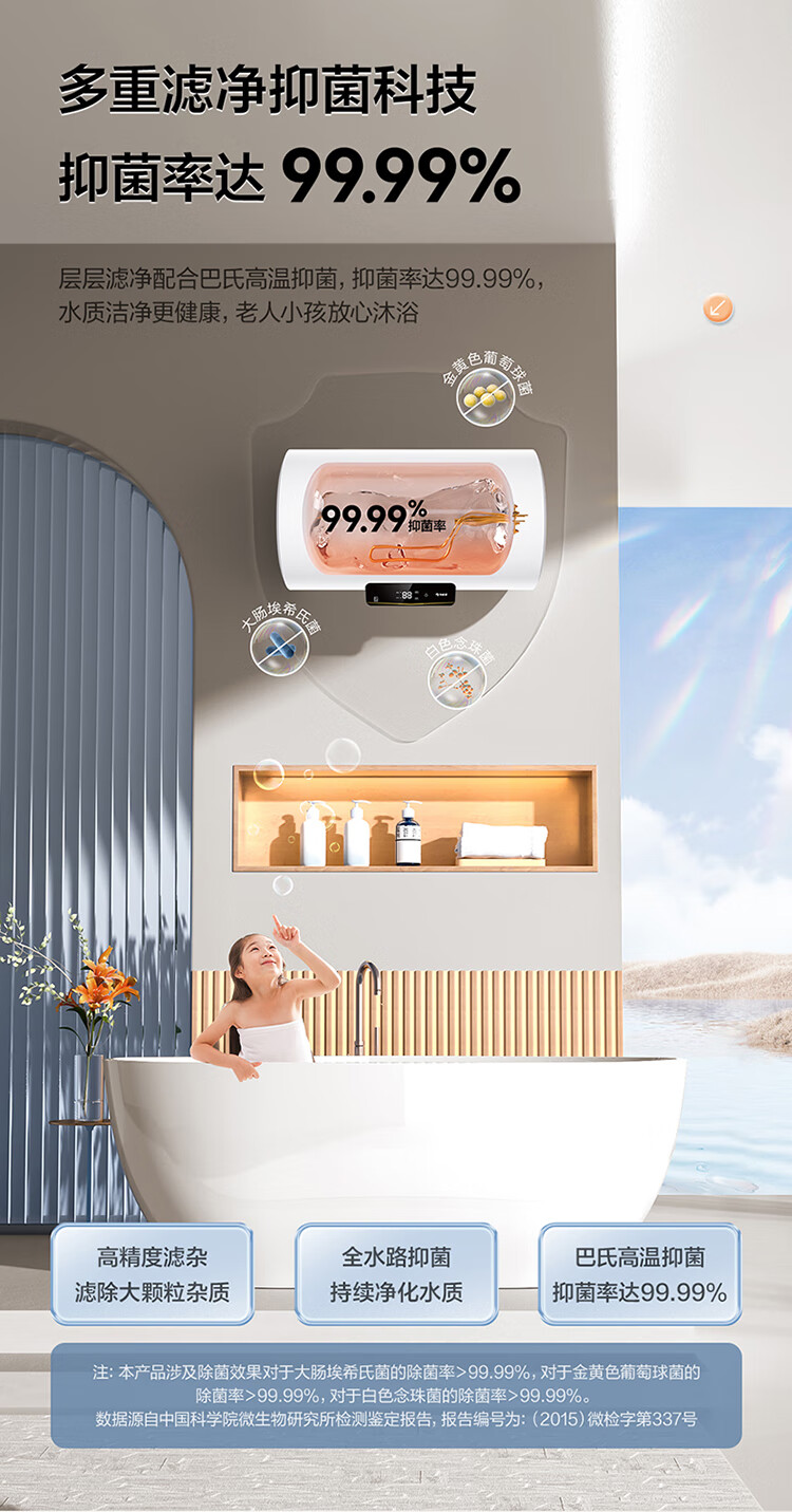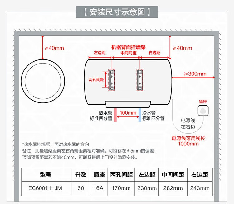 国补到手价 1039 元 海尔60升 电热水器 一级能效 2200W功率速热 EC6001H-JM *