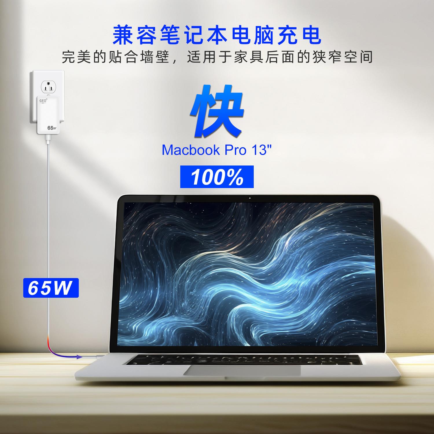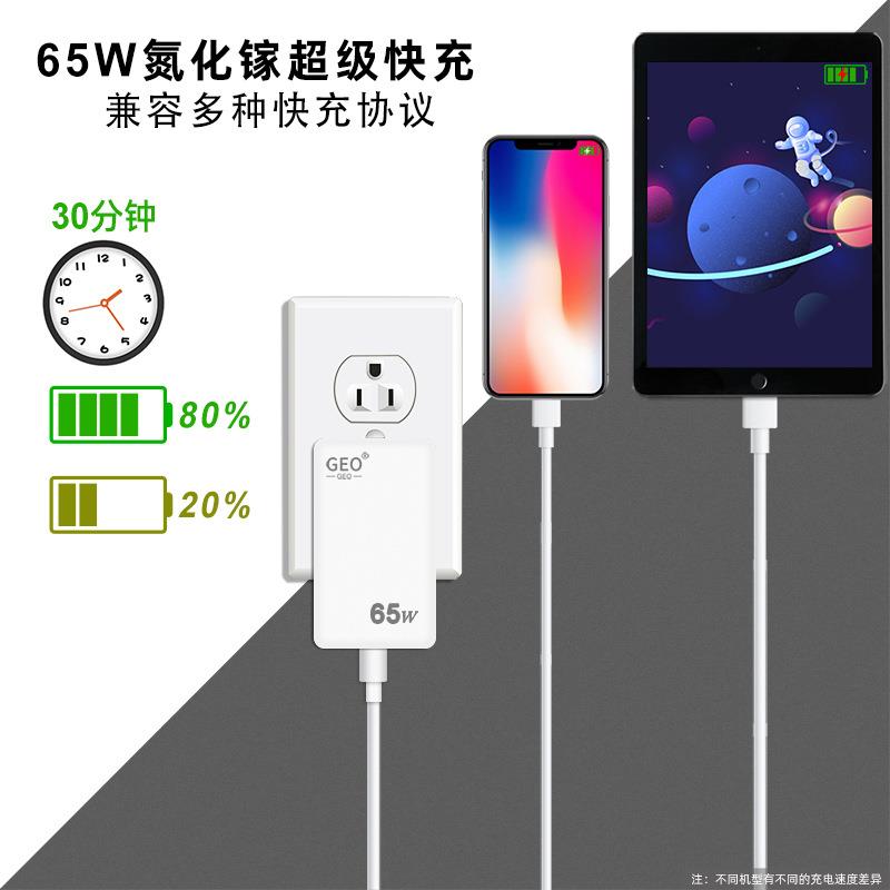 超薄45W65W氮化镓适配器手机快充数码电子产品笔记本多口充电器