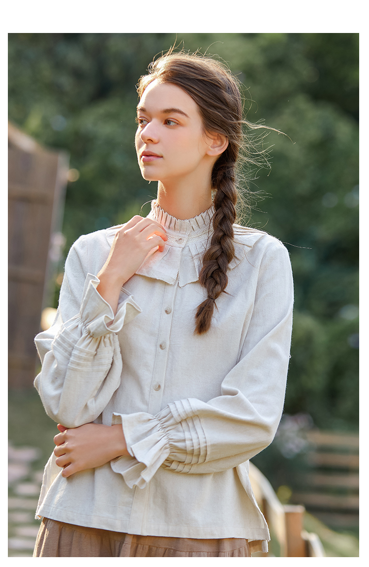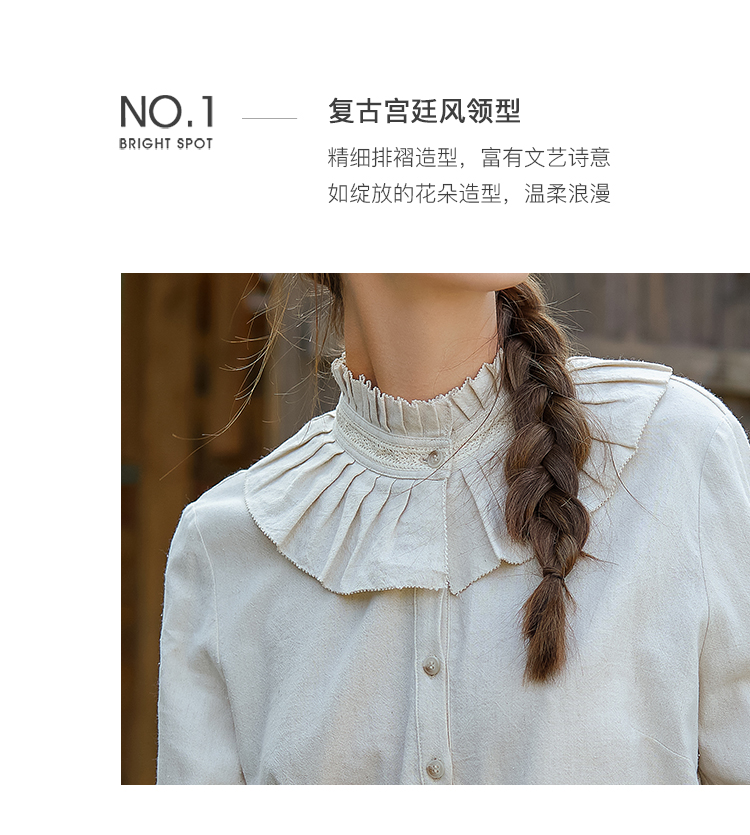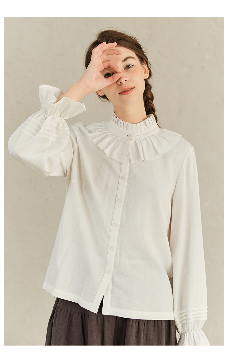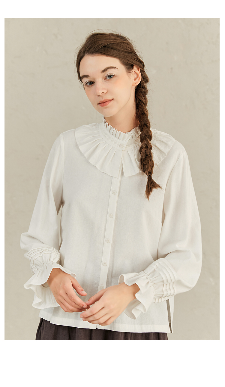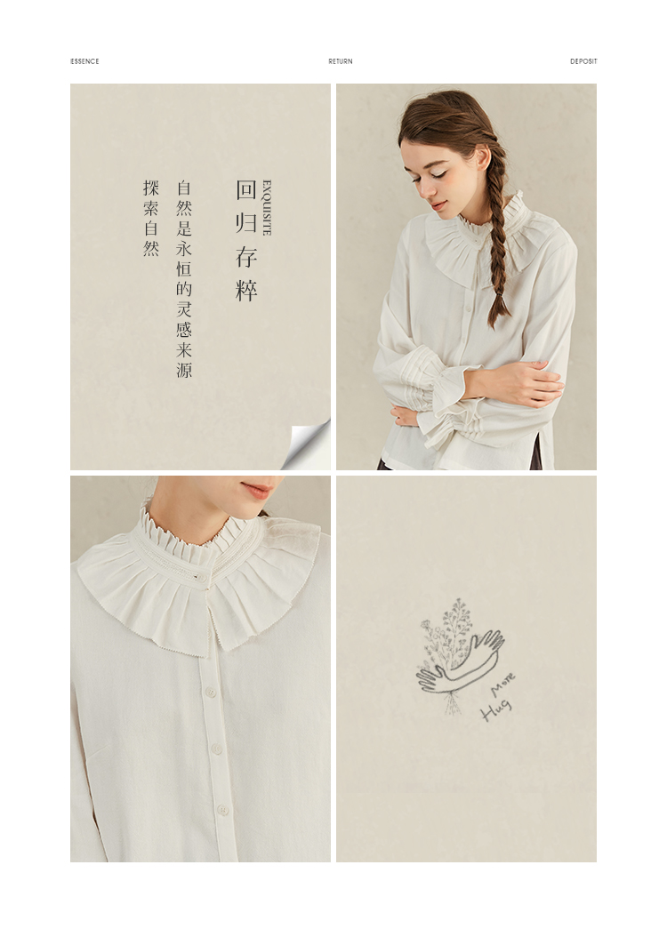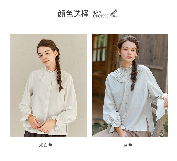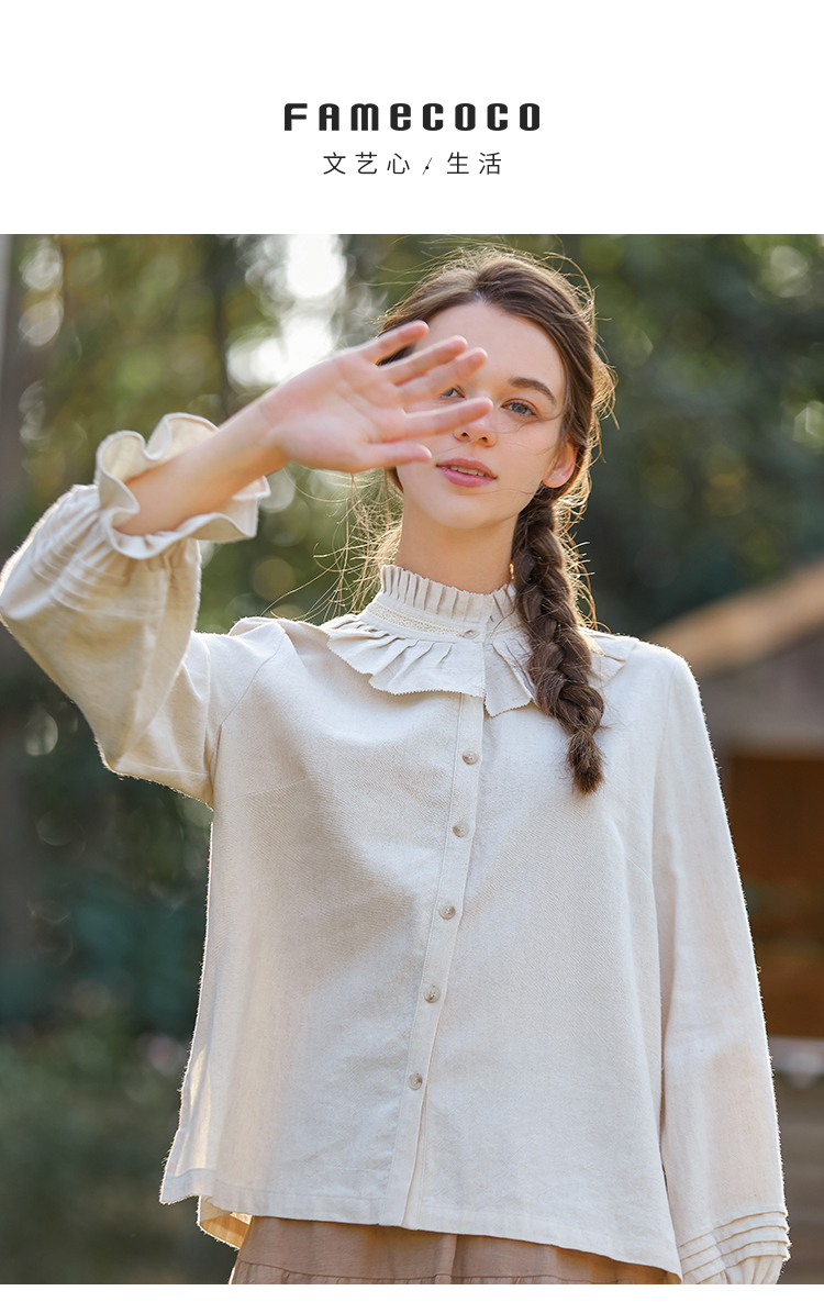 famecoco范可儿洋气花边领衬衫甜美法式时尚衬衣女F221BH007