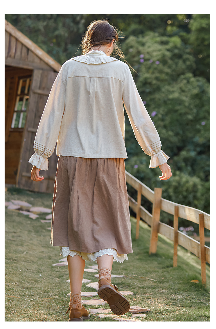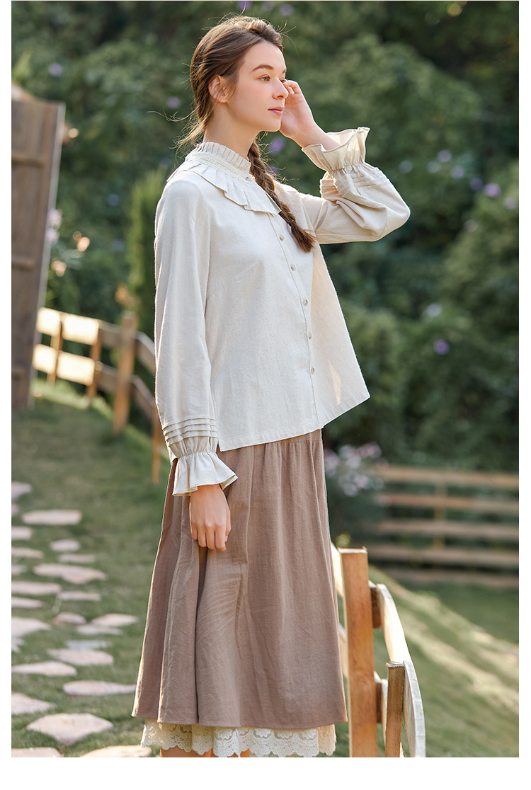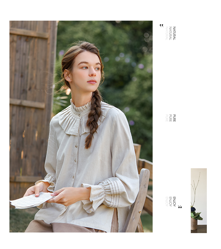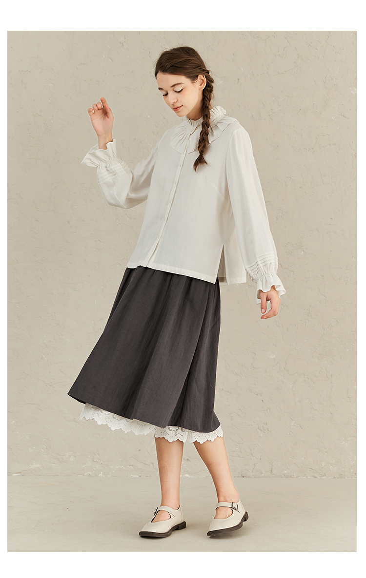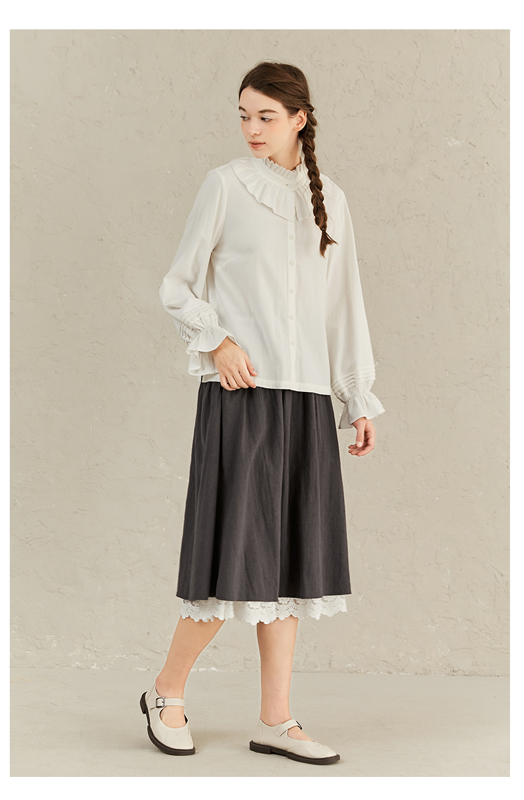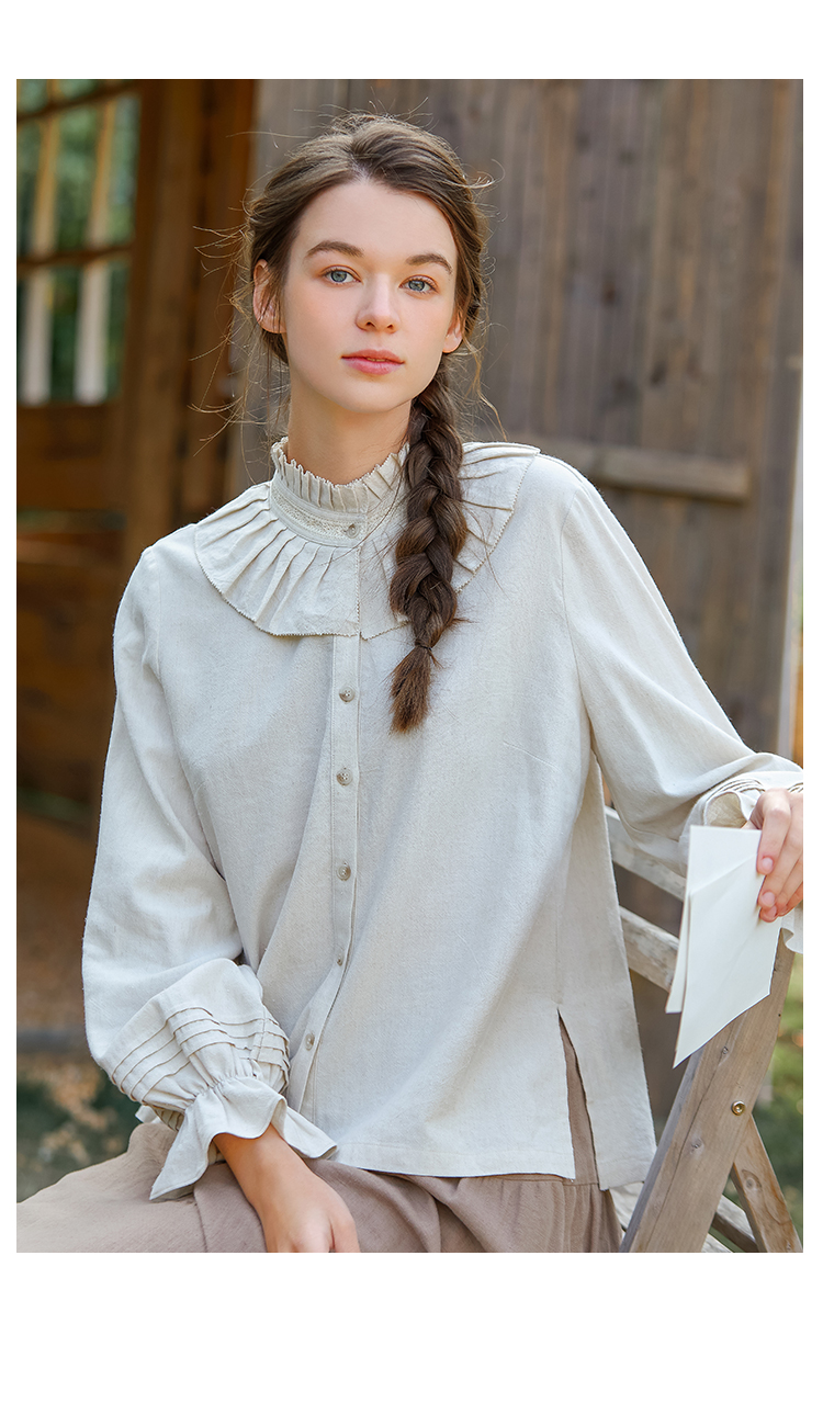 famecoco范可儿洋气花边领衬衫甜美法式时尚衬衣女F221BH007