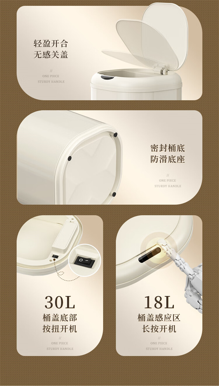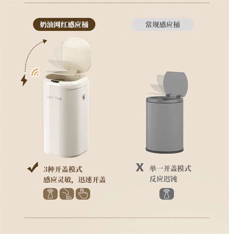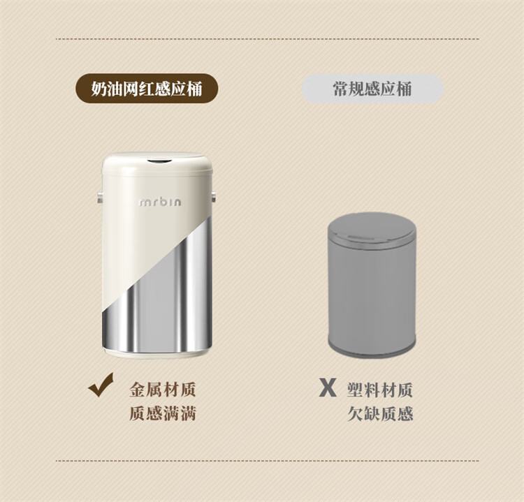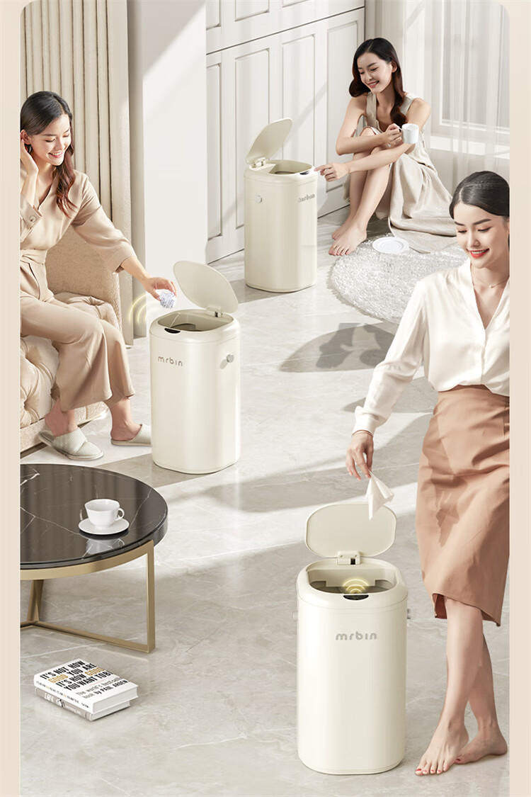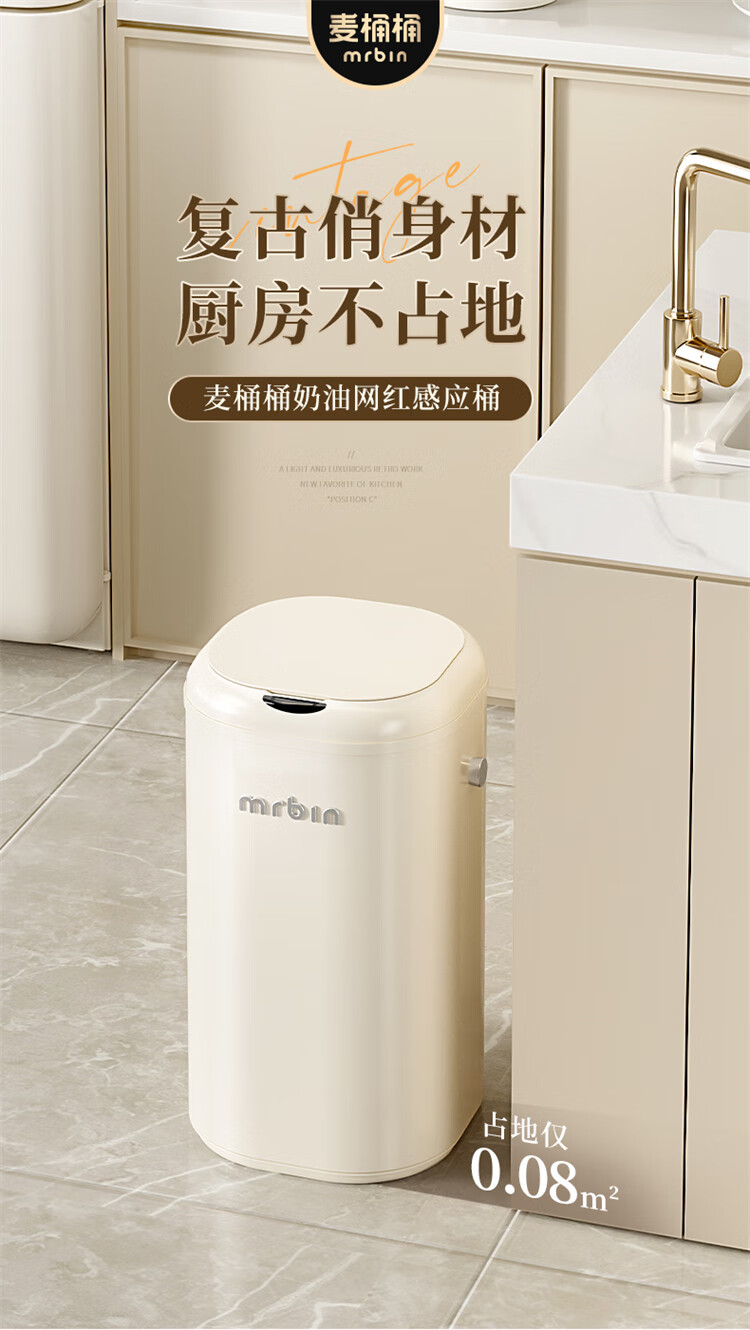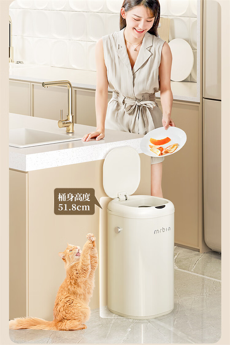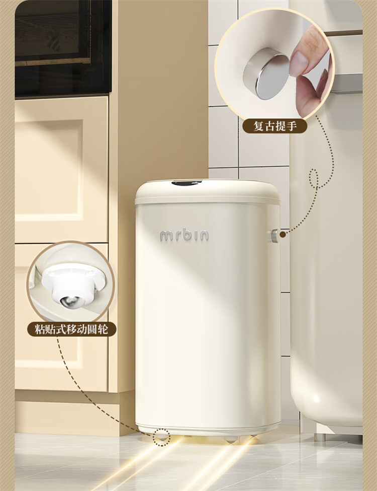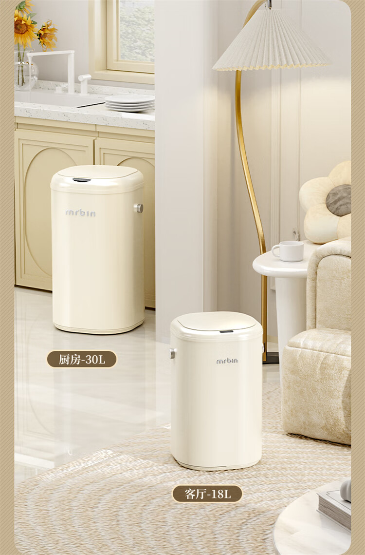 麦桶桶(Mr.Bin)感应厨房垃圾桶智能大号带盖客厅办公室电动自动厨余桶复古高颜值 奶油白18L/30L电池感应