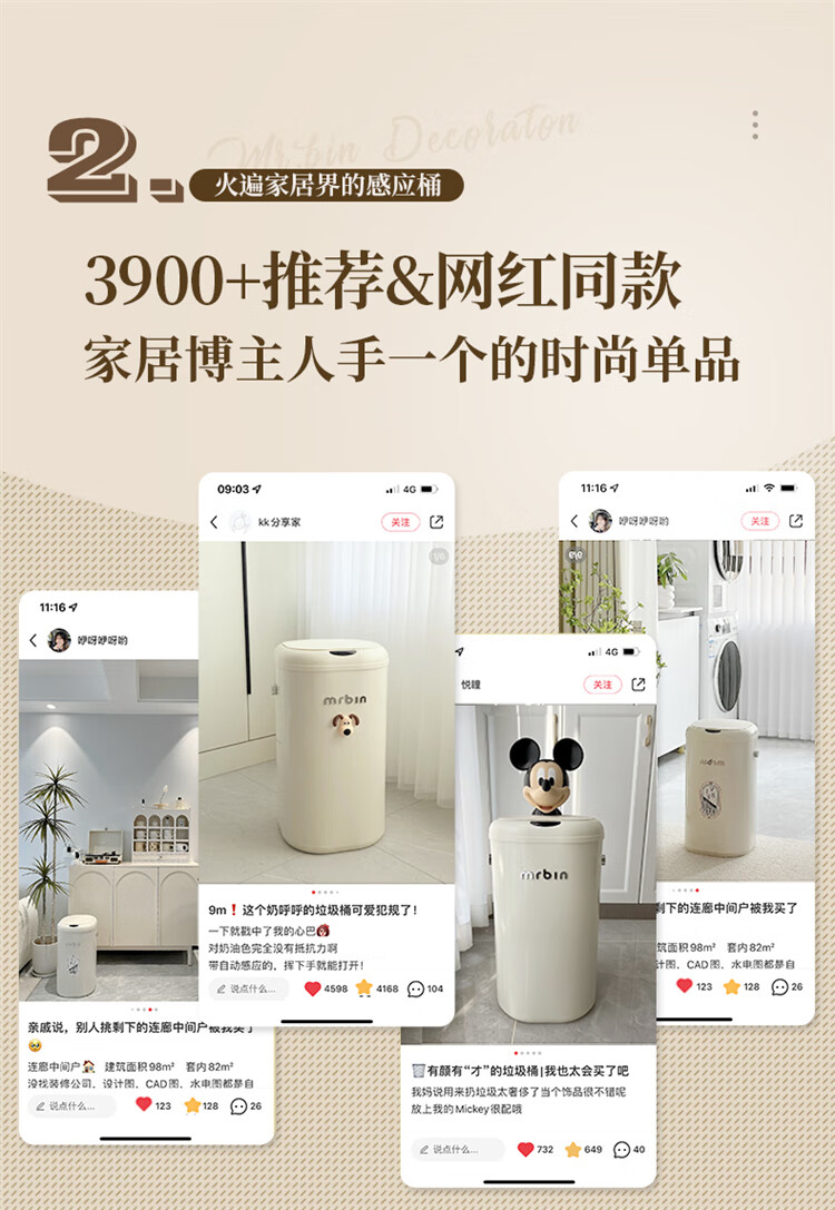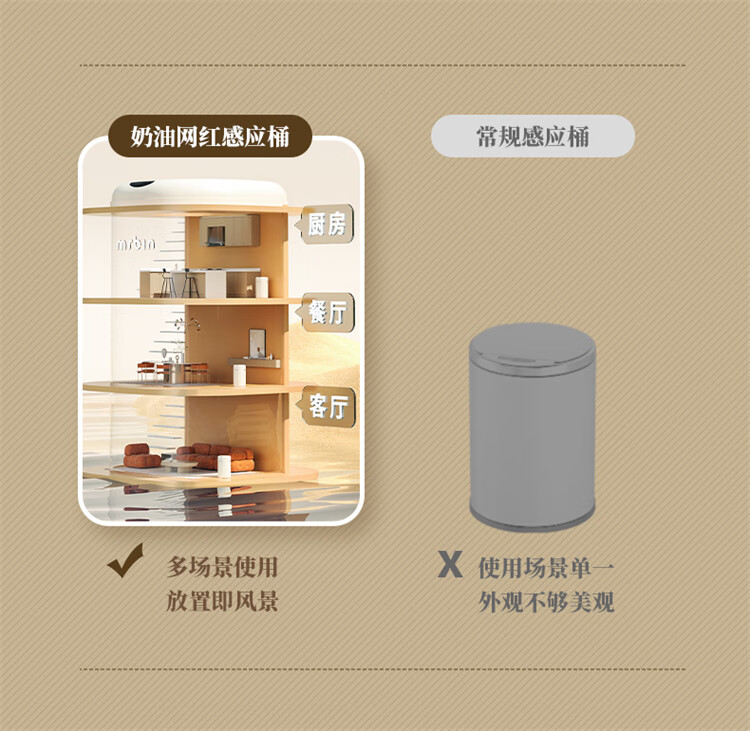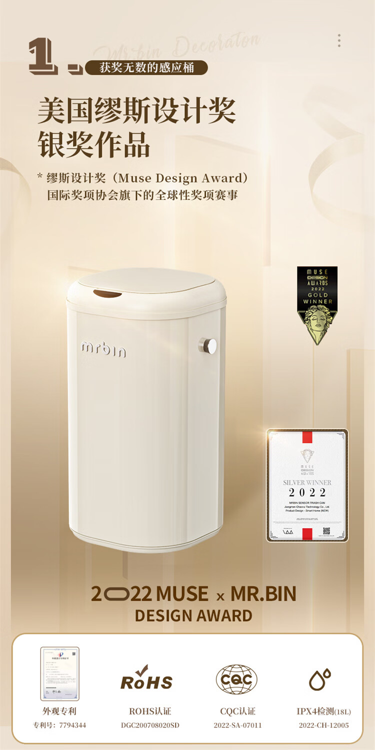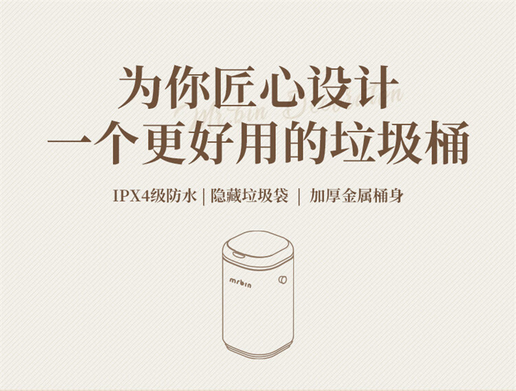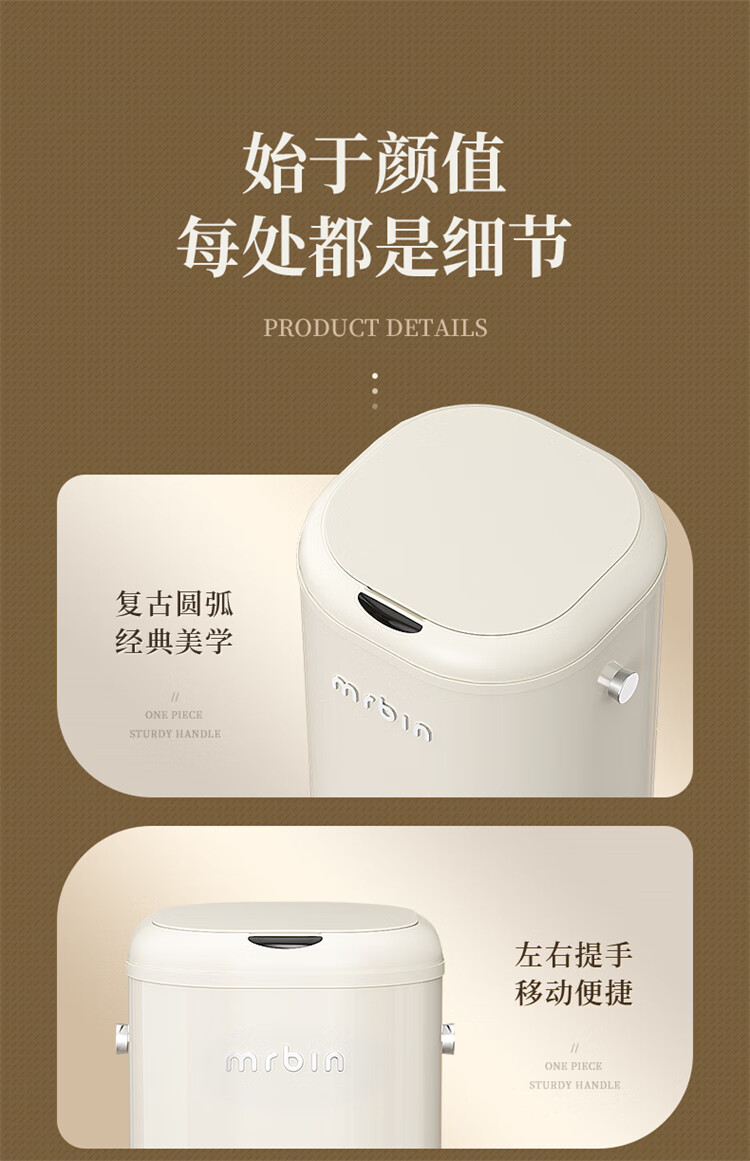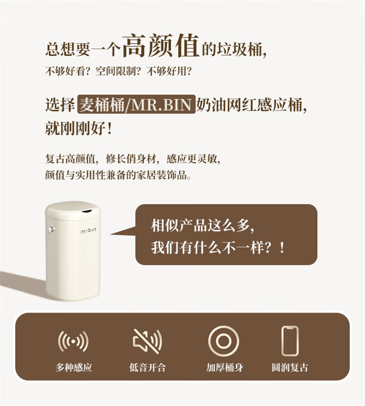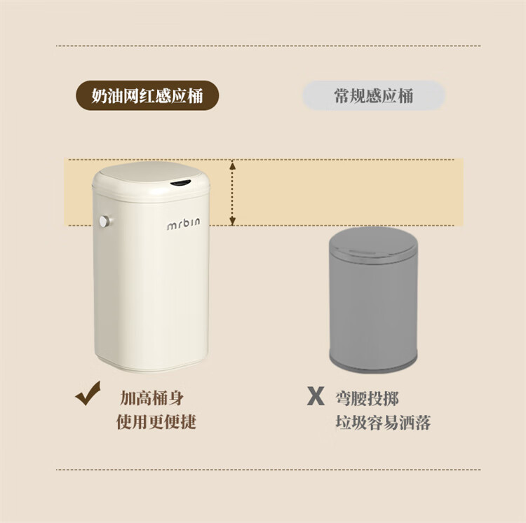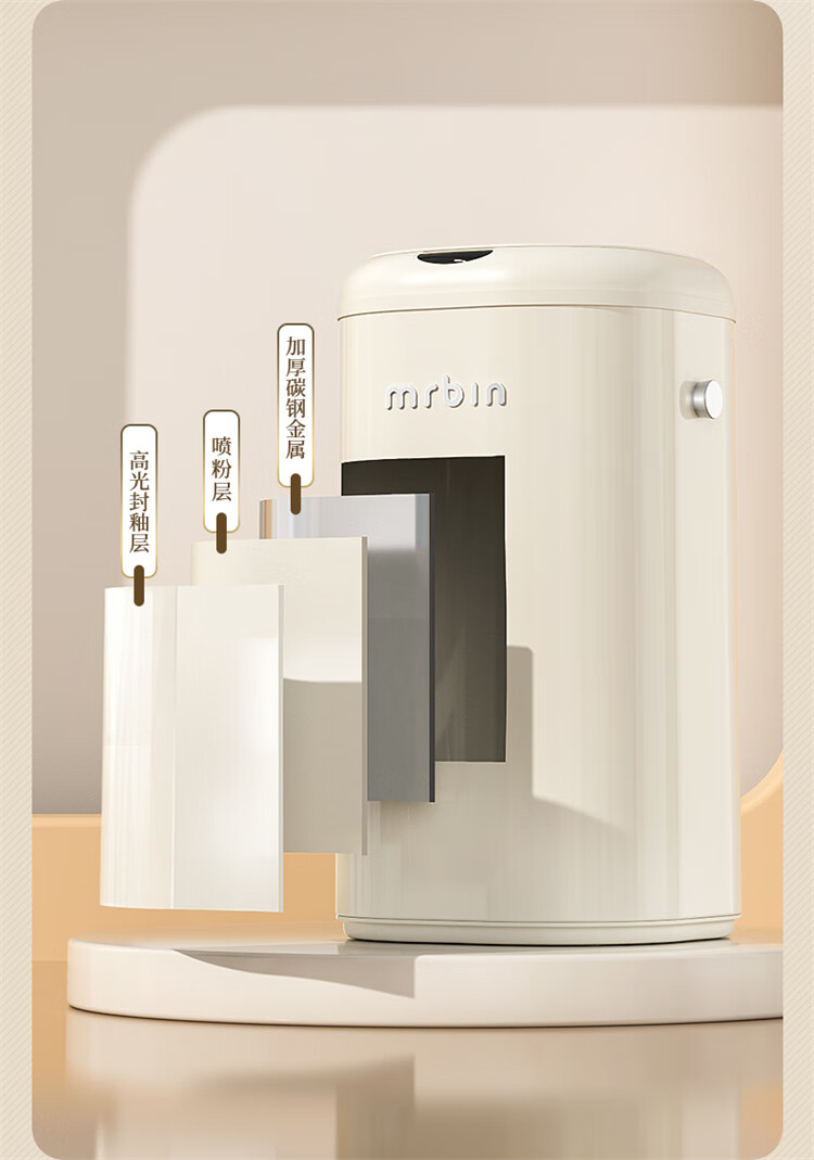 麦桶桶(Mr.Bin)感应厨房垃圾桶智能大号带盖客厅办公室电动自动厨余桶复古高颜值 奶油白18L/30L电池感应