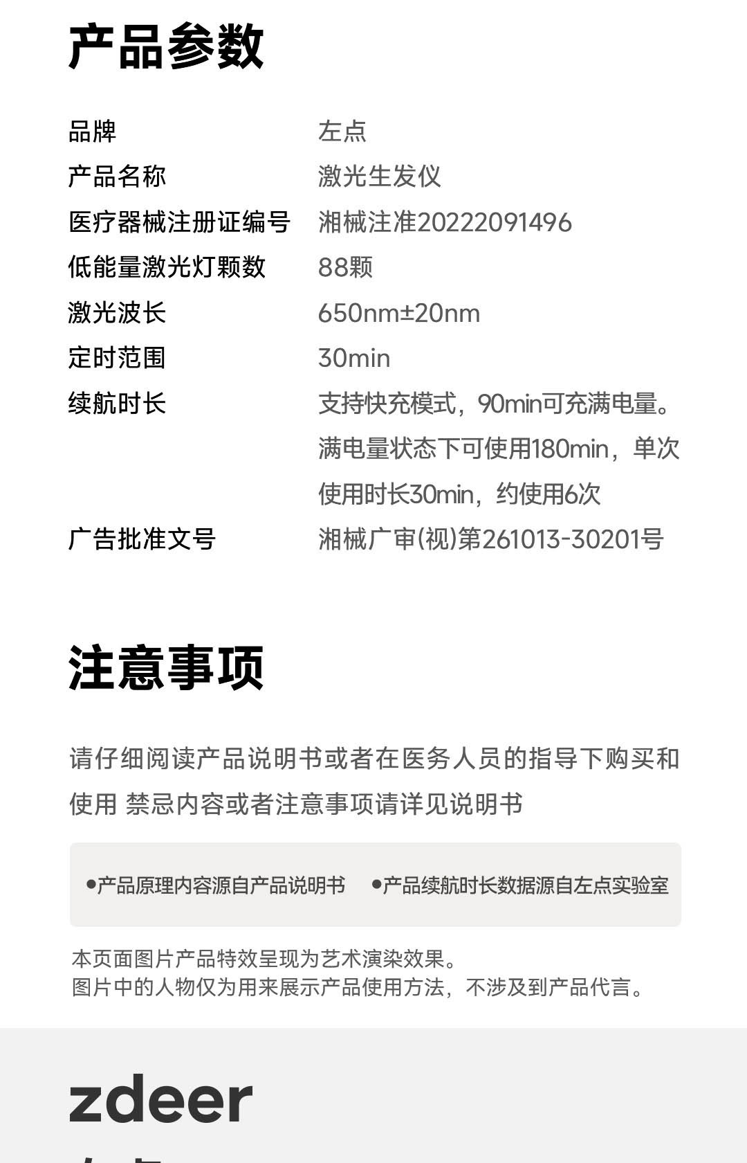 zdeer左点低能量激光生发帽激光治疗仪头盔养发仪医用
