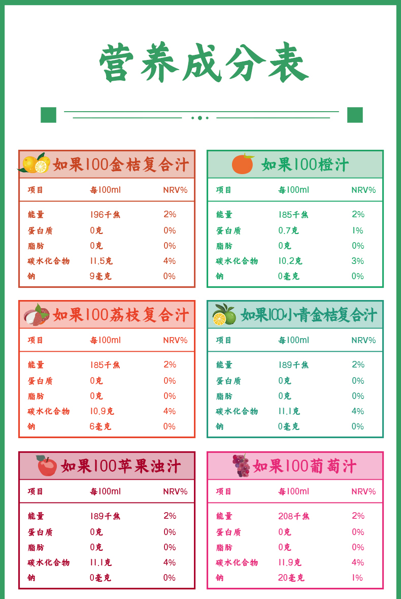 【如果果汁纯果蔬汁饮料 推荐组合 4.16发货】荔枝山楂橙汁苹果葡萄无添加混合装300g/瓶