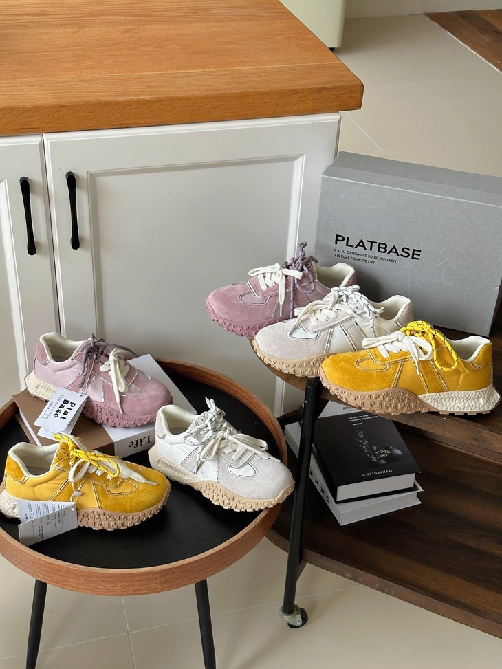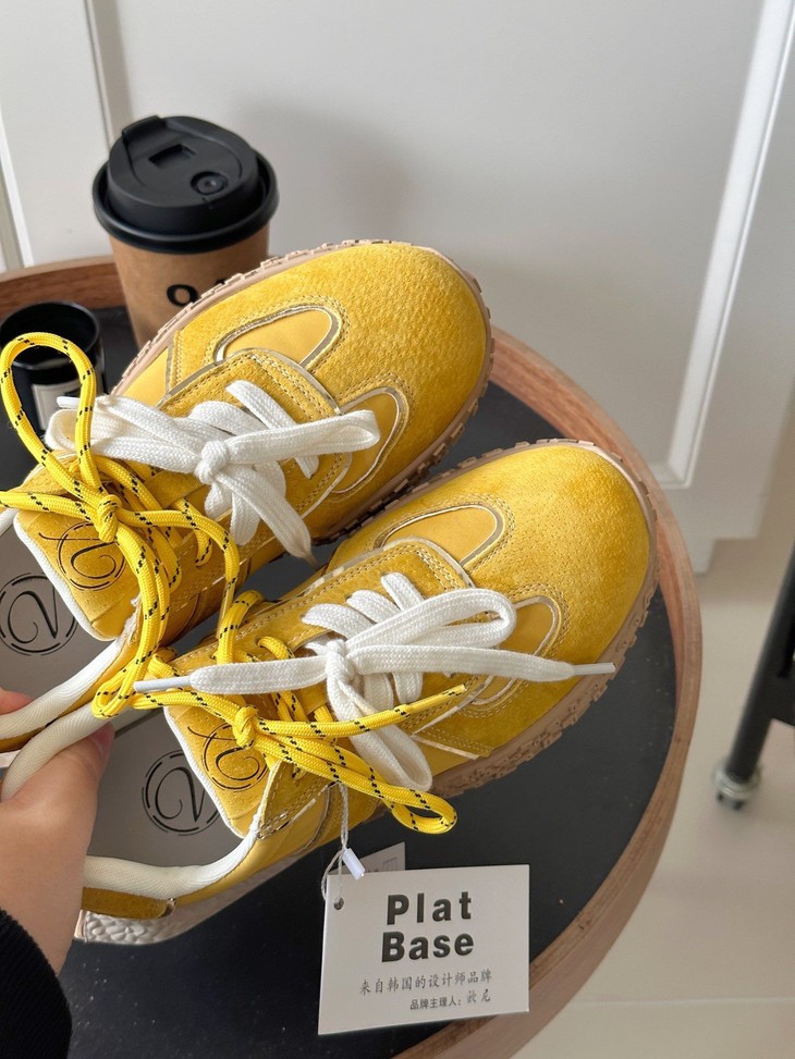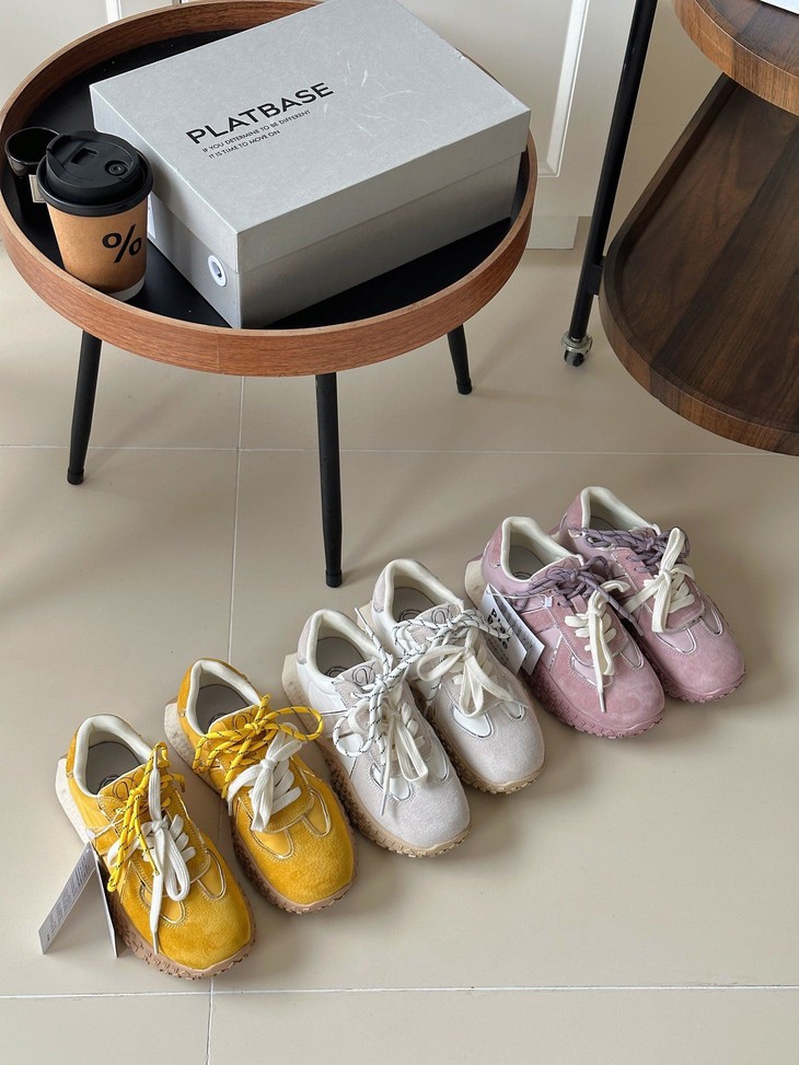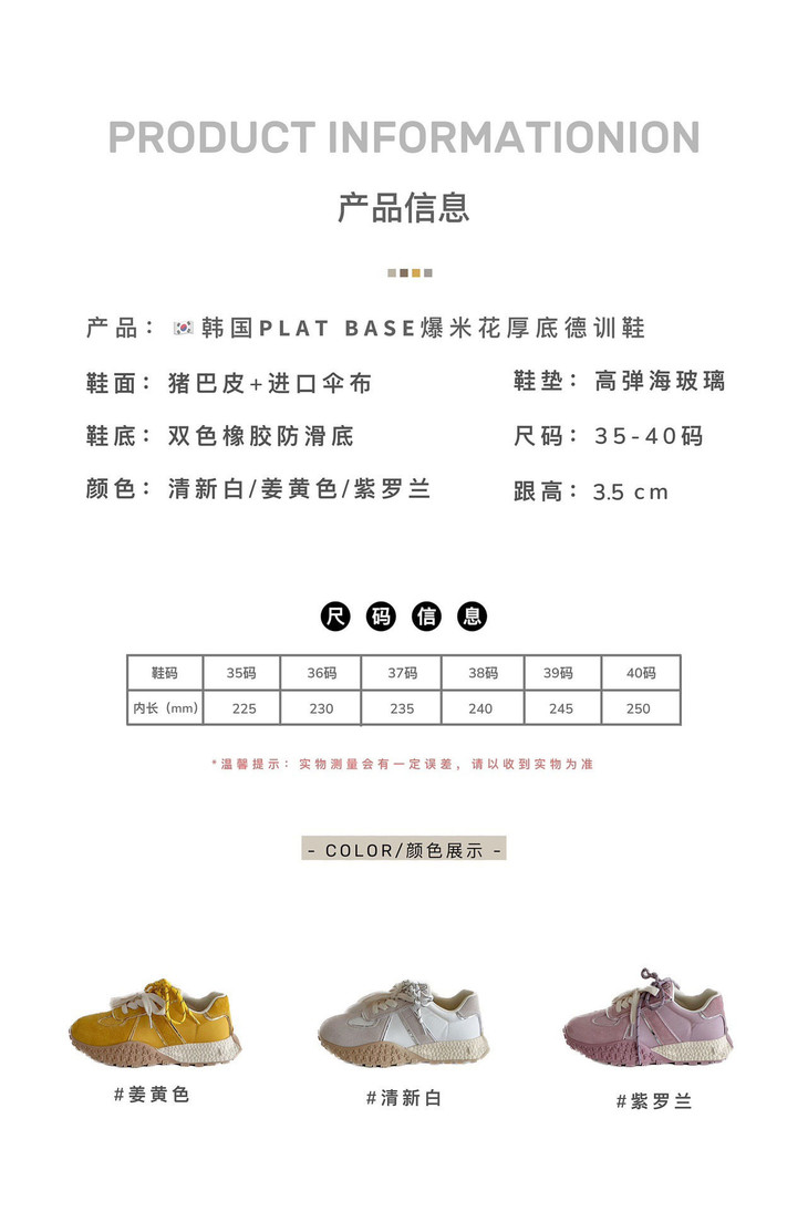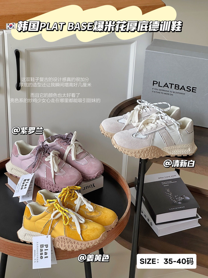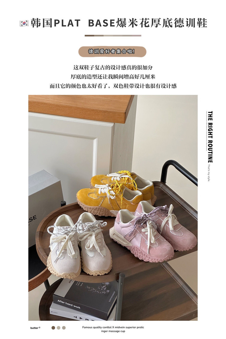 🔥超火❗️【🇰🇷·韩国𝗣𝗟𝗔𝗧 𝗕𝗔𝗦𝗘爆米花厚底德训鞋】鸳鸯双鞋带!🥰上脚也太好看了吧!喜欢韩式风和ins极简风的姐妹💗,这款一定要来上一双!