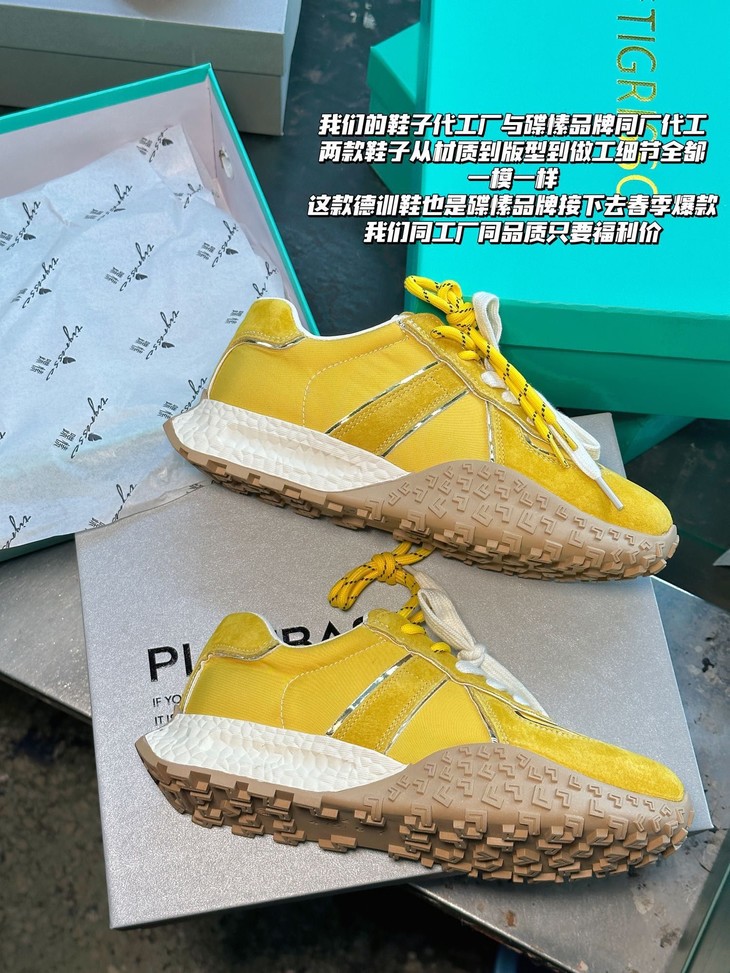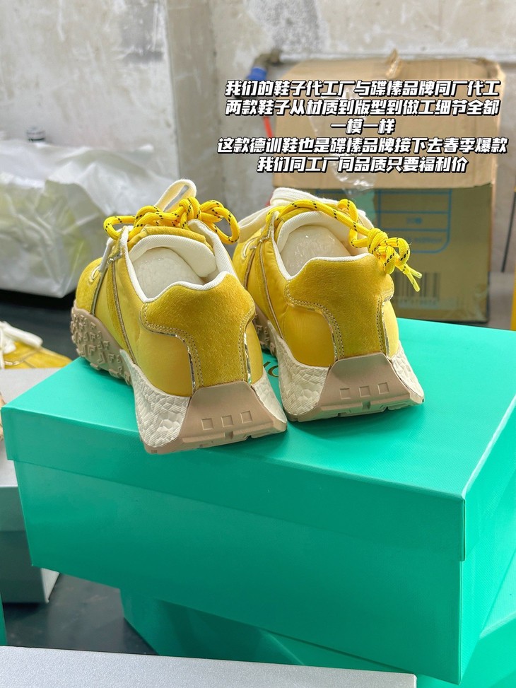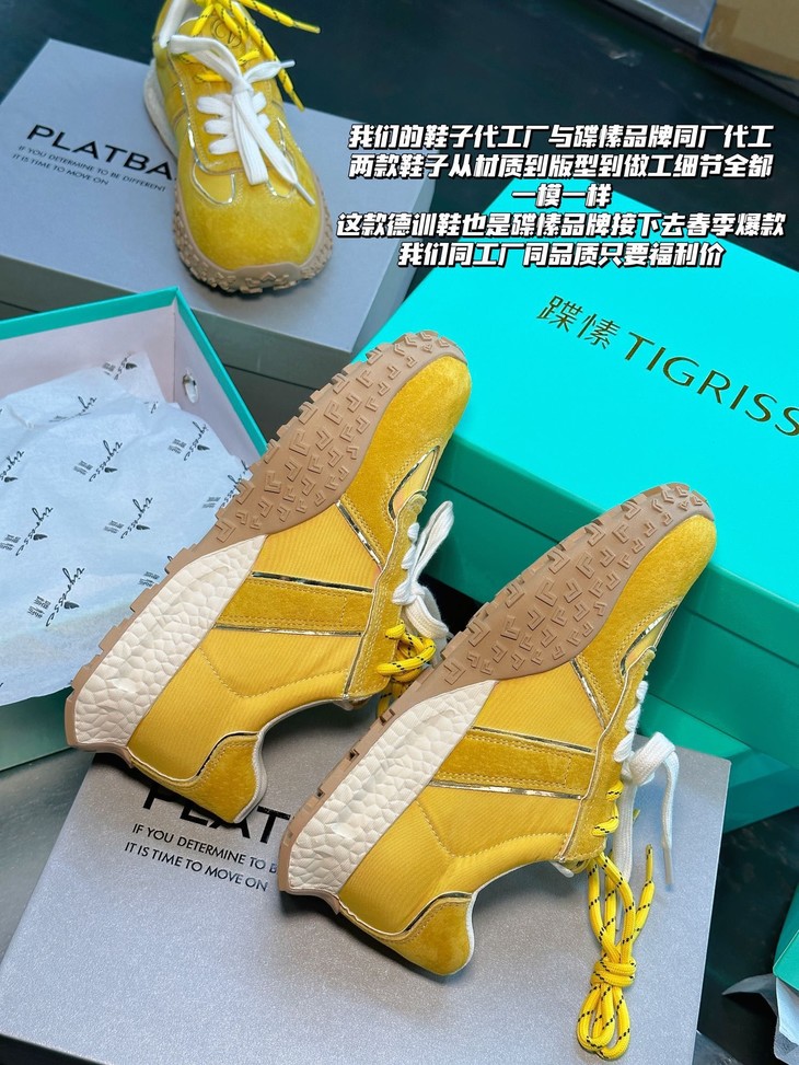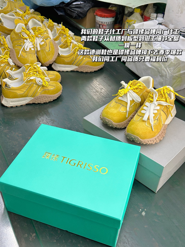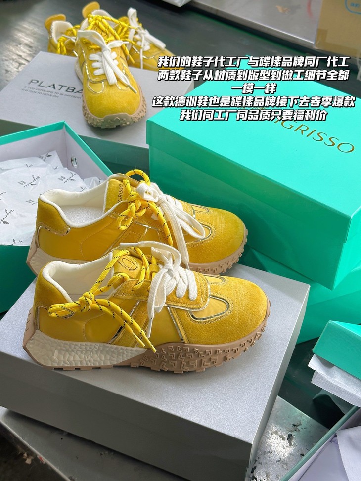 我们的鞋子代工厂与碟愫品牌同厂代工 两款鞋子从材质到版型到做工细节全都 一模一样 这款德训鞋也是碟愫品牌接下去春季爆款 我们同工厂同品质只要福利价