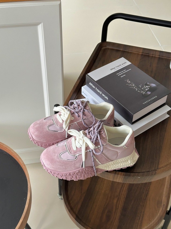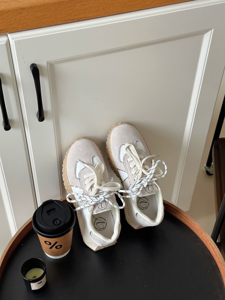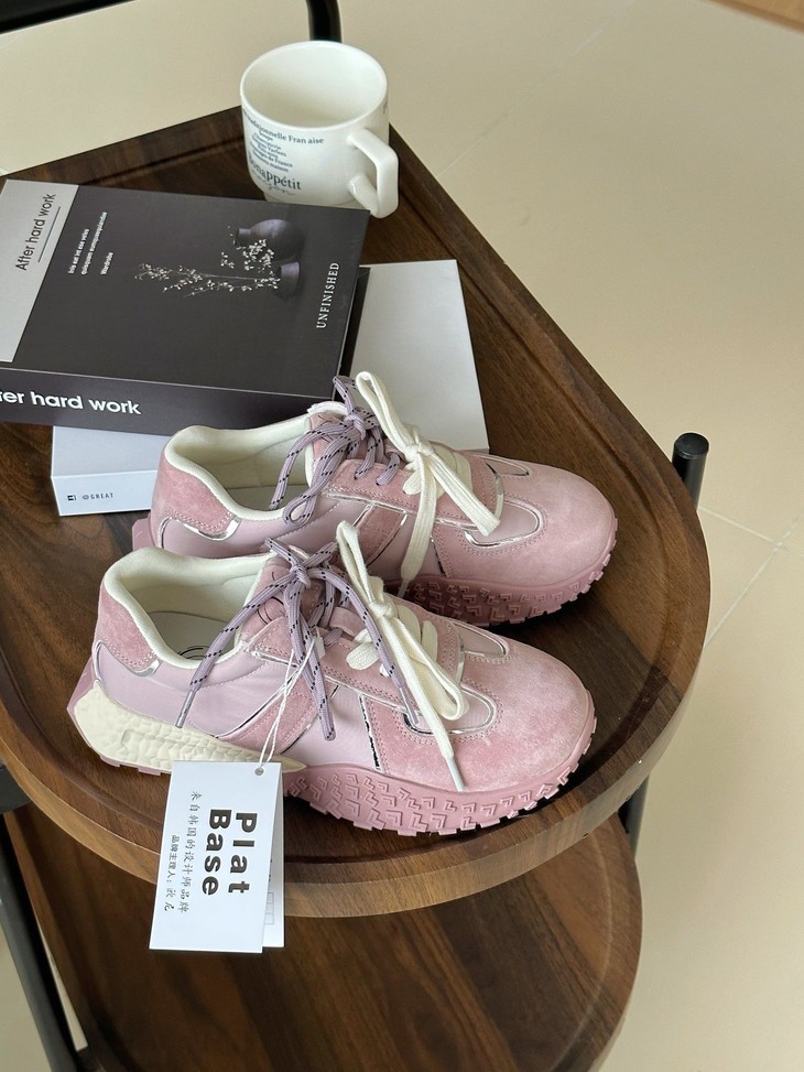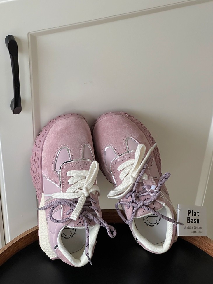 春天果然还是得亮色系 适合春天的明艳暖色调 粉白光色点真的很合适 双色鞋带设计很有调性