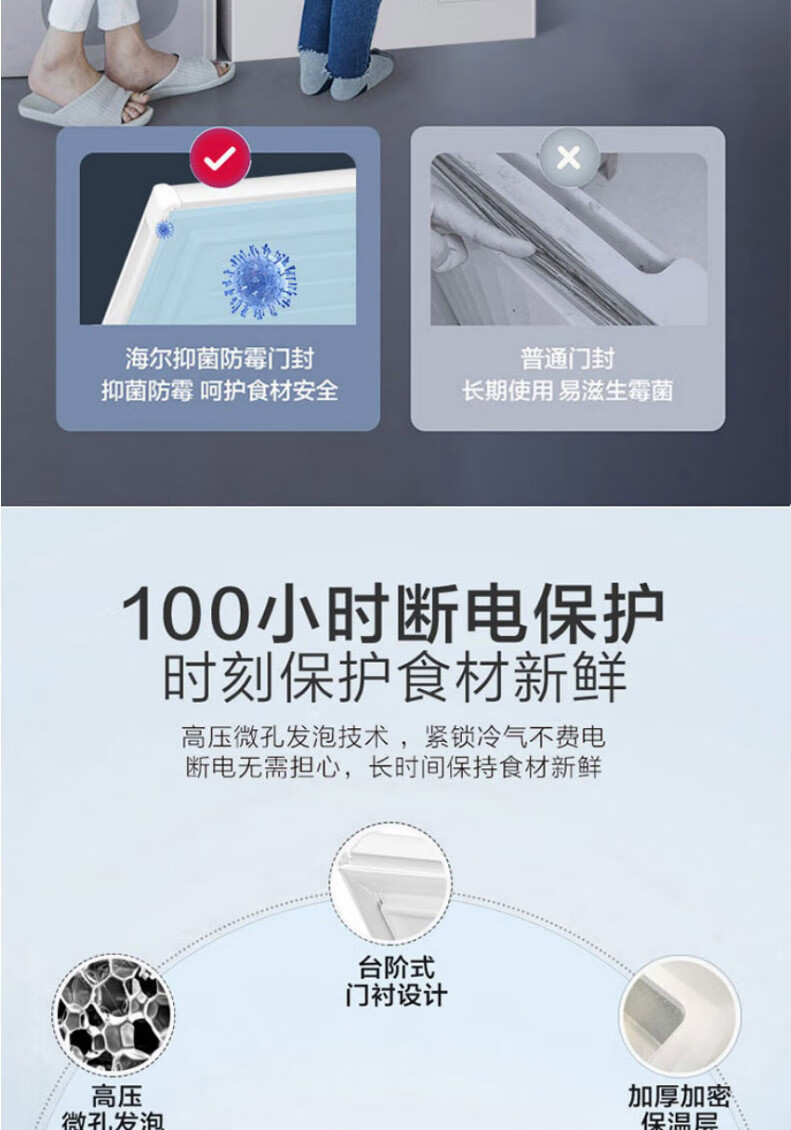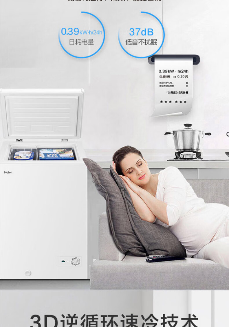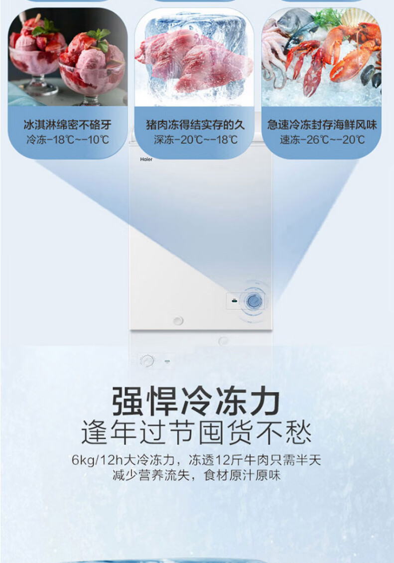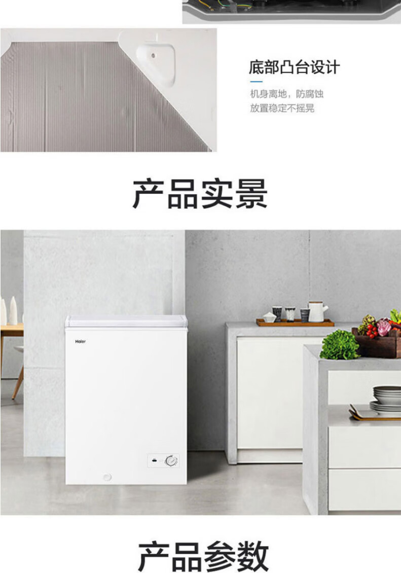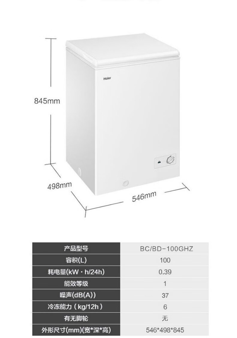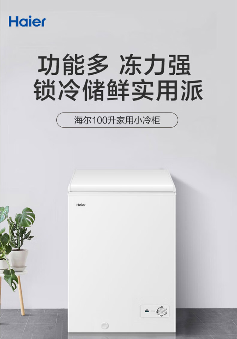 【海尔BC BD-100GH】海尔(Haier)冰柜家用小型一级能效卧式单温冷柜商用保鲜冷藏冷冻转换BC BD-100GH