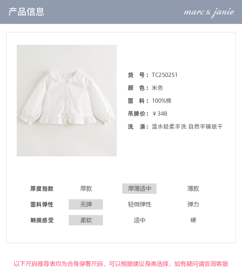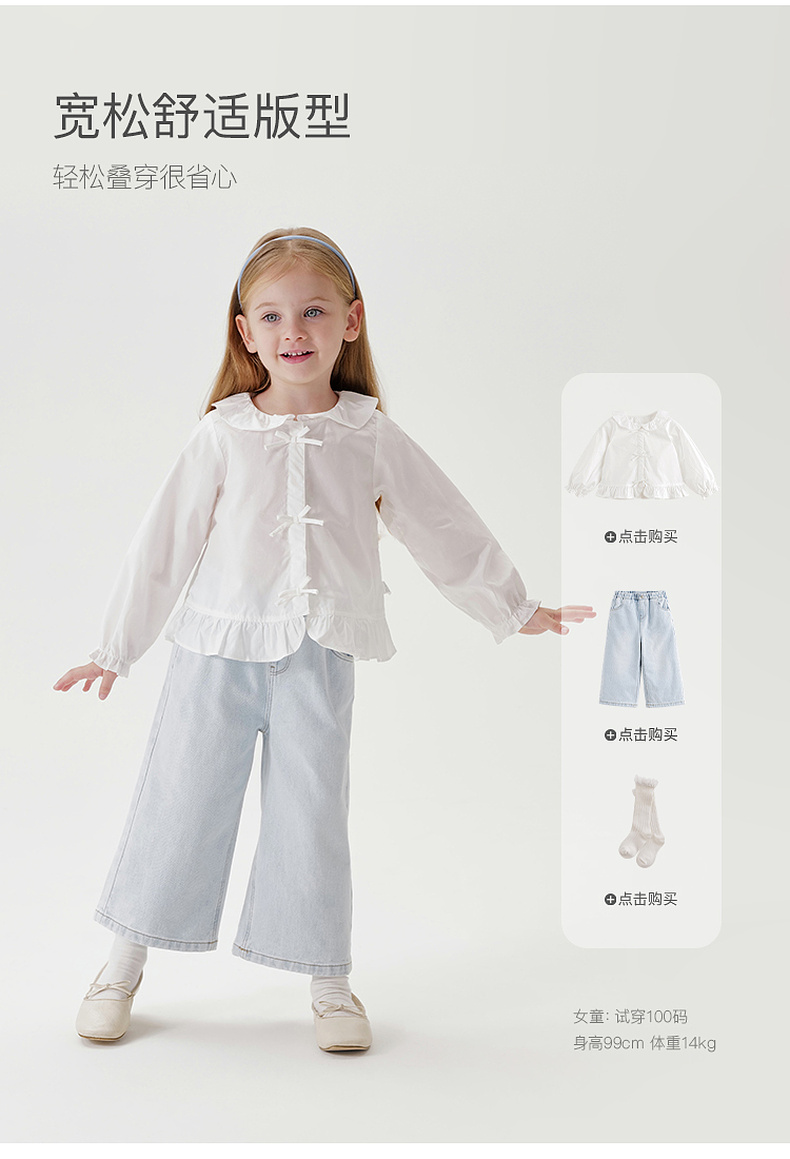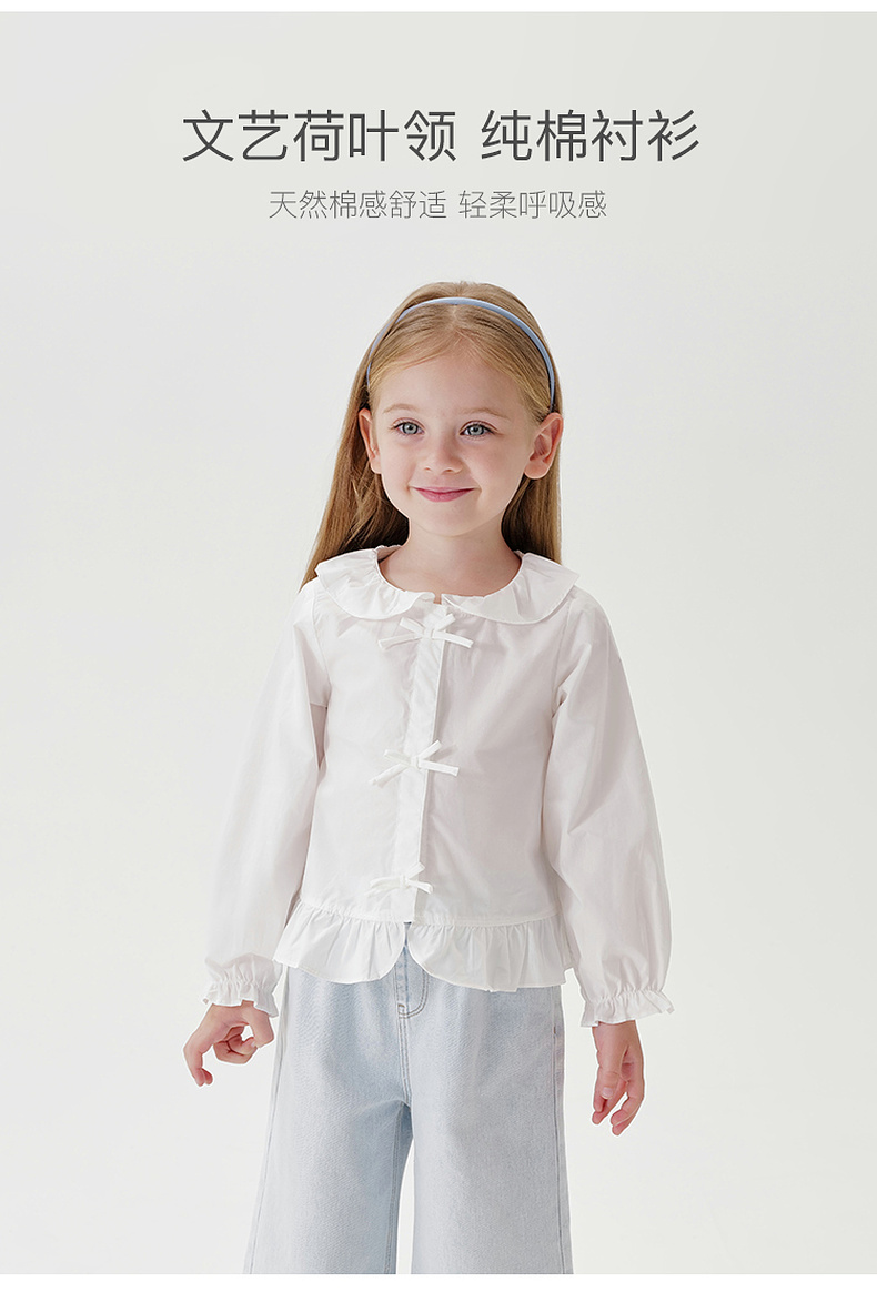 马克珍妮女童甜美荷叶领衬衫 宝宝纯棉衬衣2025年春装新款250251