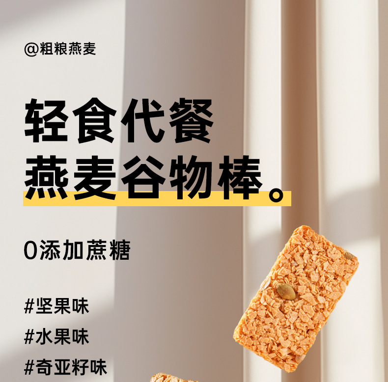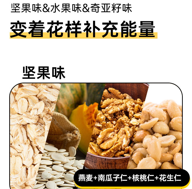 【健康粗粮!燕麦谷物能量棒】不单独添加蔗糖,坚果味&水果味&奇亚籽味,变着花样补充能量!代餐零食休闲食品超饱腹解馋饼干