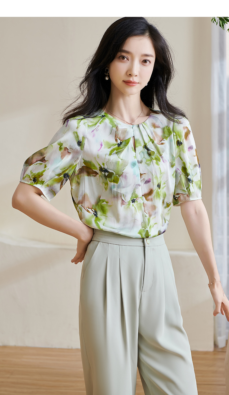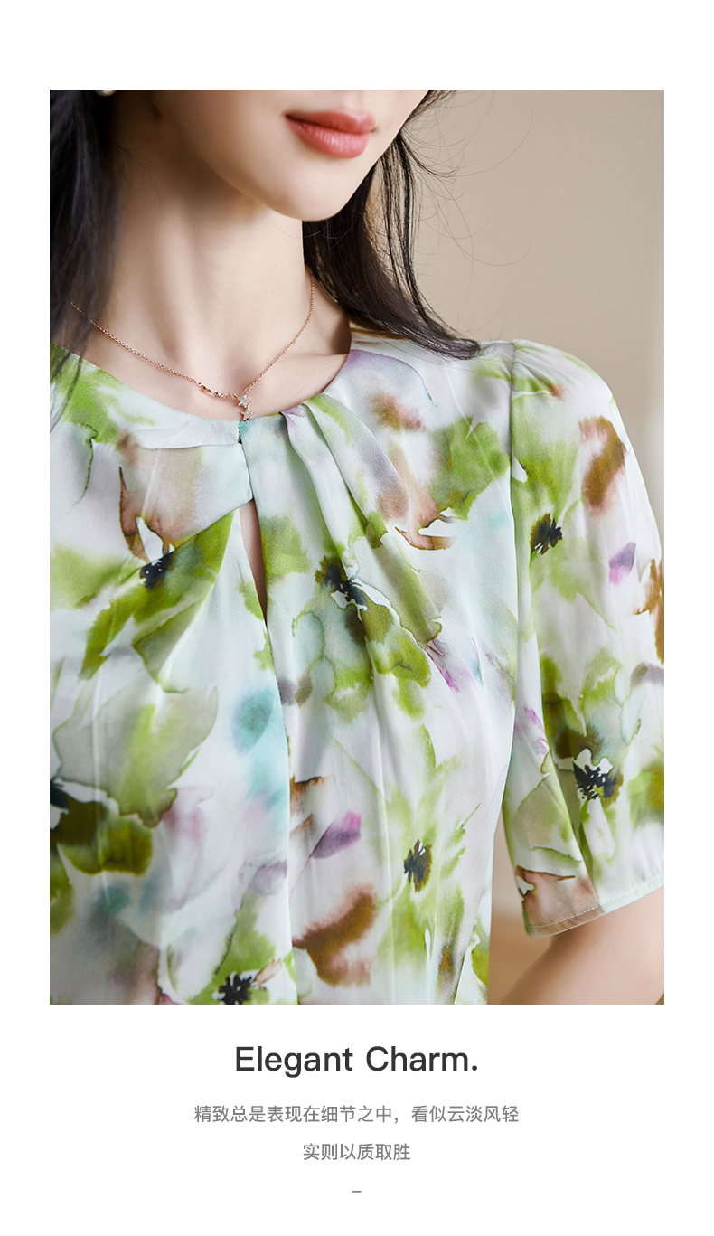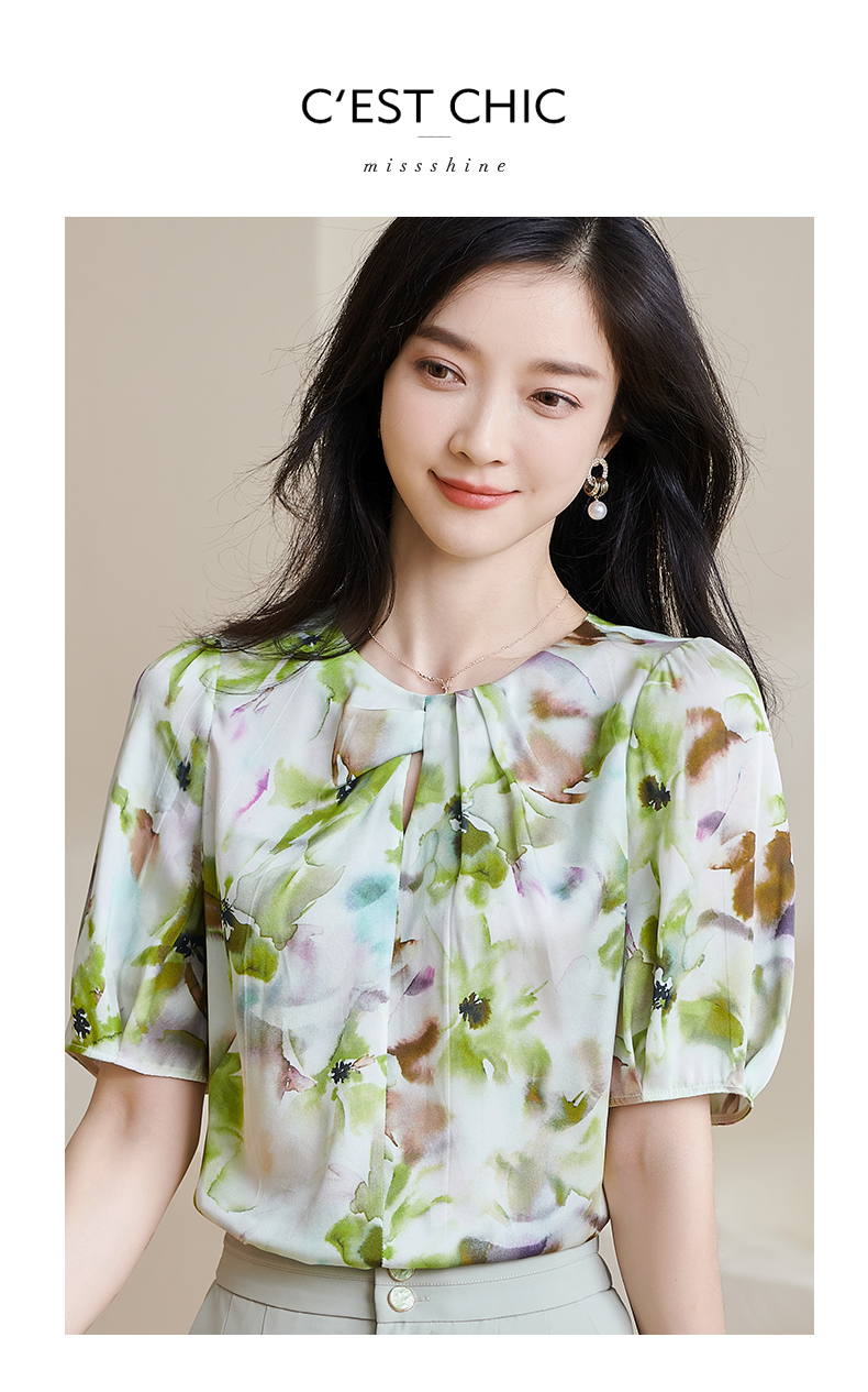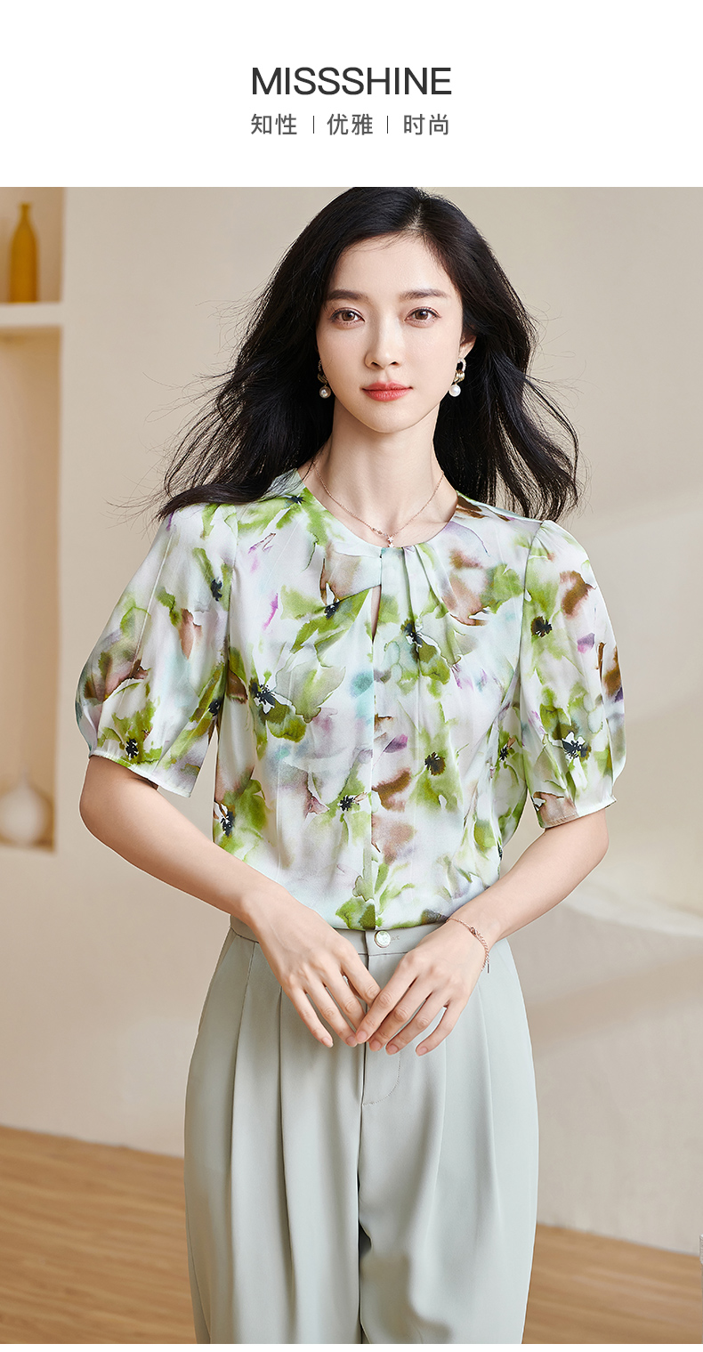 米思阳2025夏季新款透气真丝衬衣宽松遮肉桑蚕丝女上衣短袖女1509
