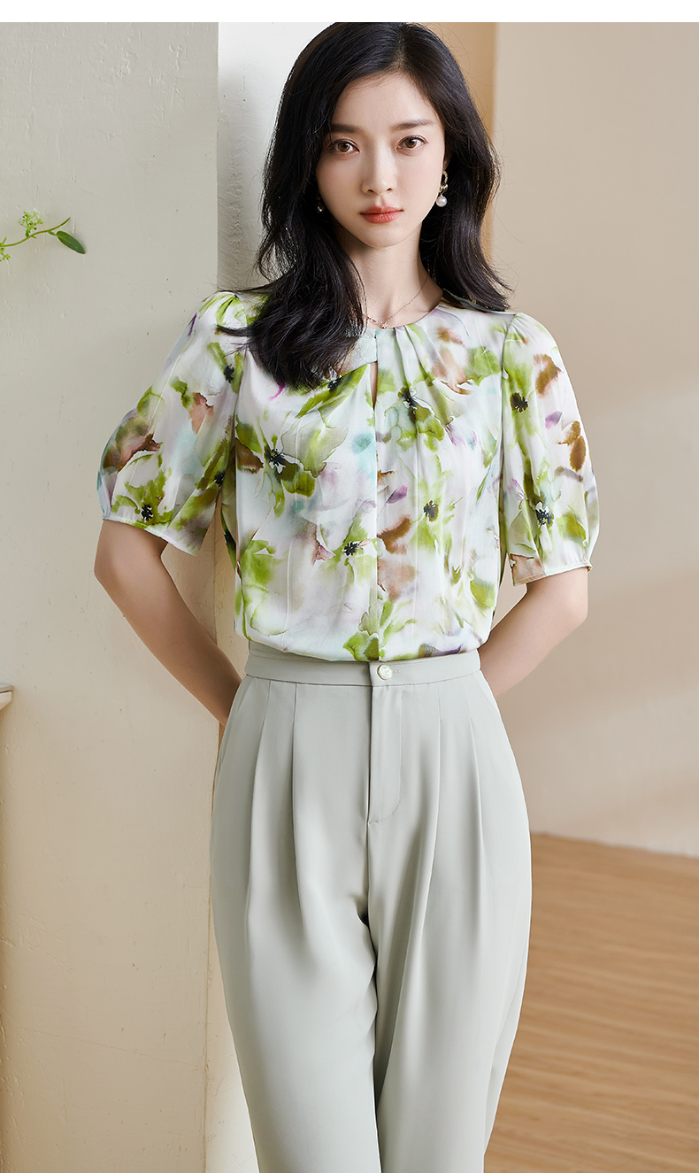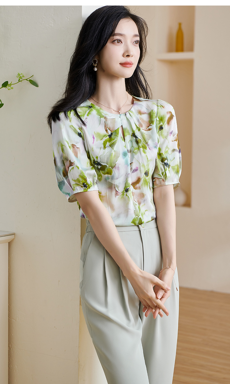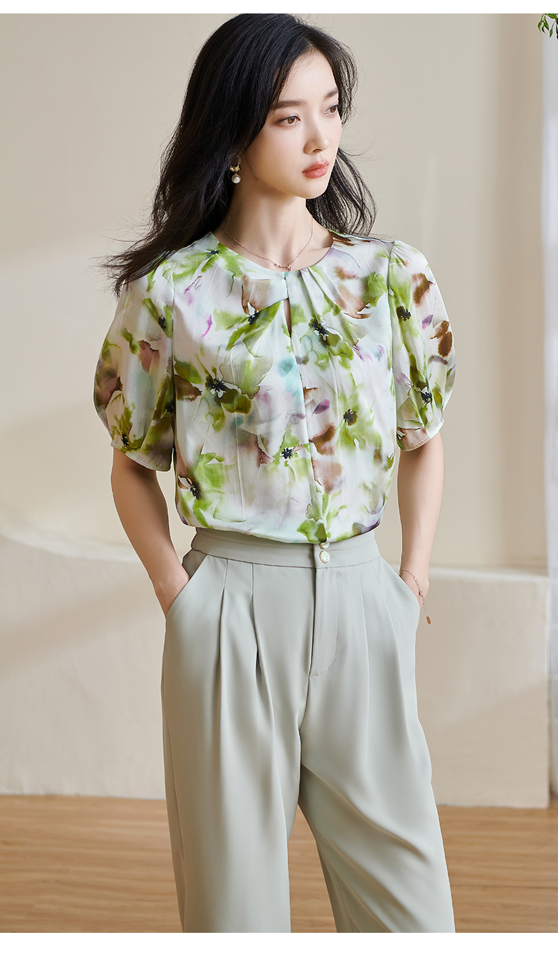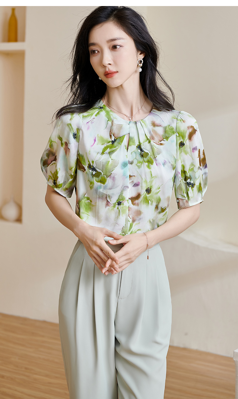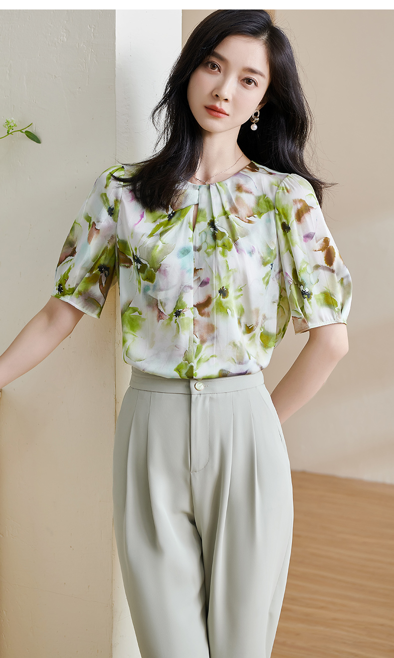 米思阳2025夏季新款透气真丝衬衣宽松遮肉桑蚕丝女上衣短袖女1509