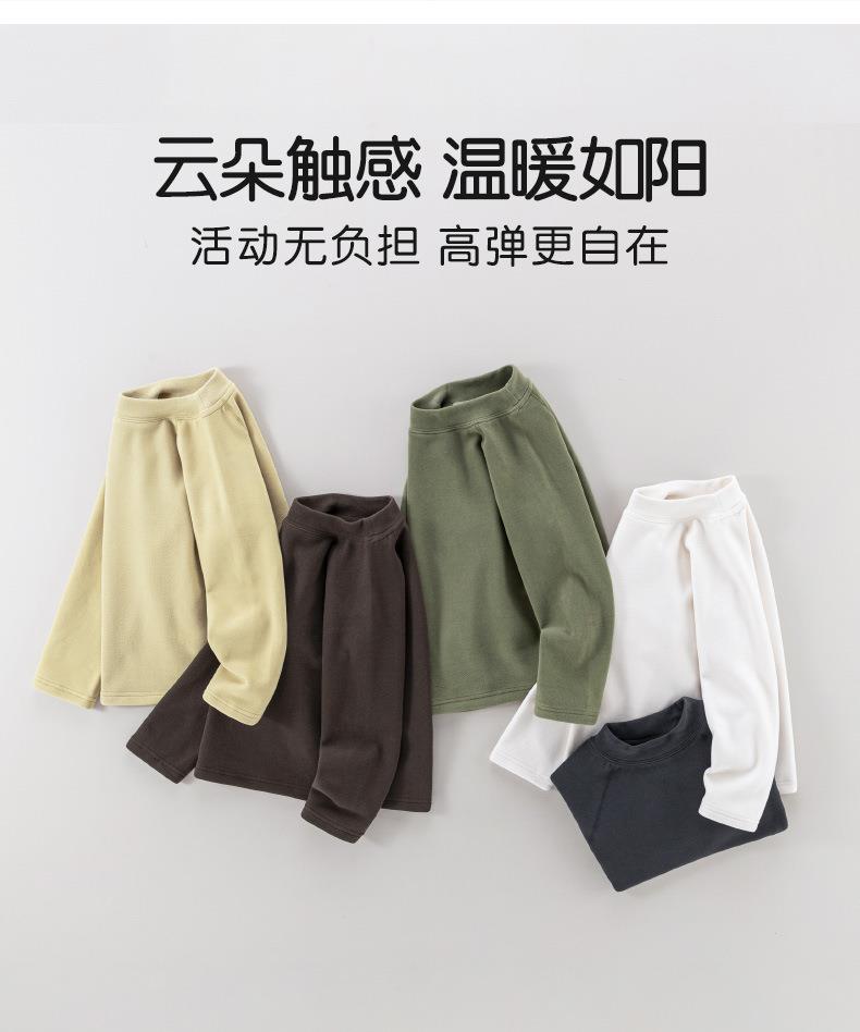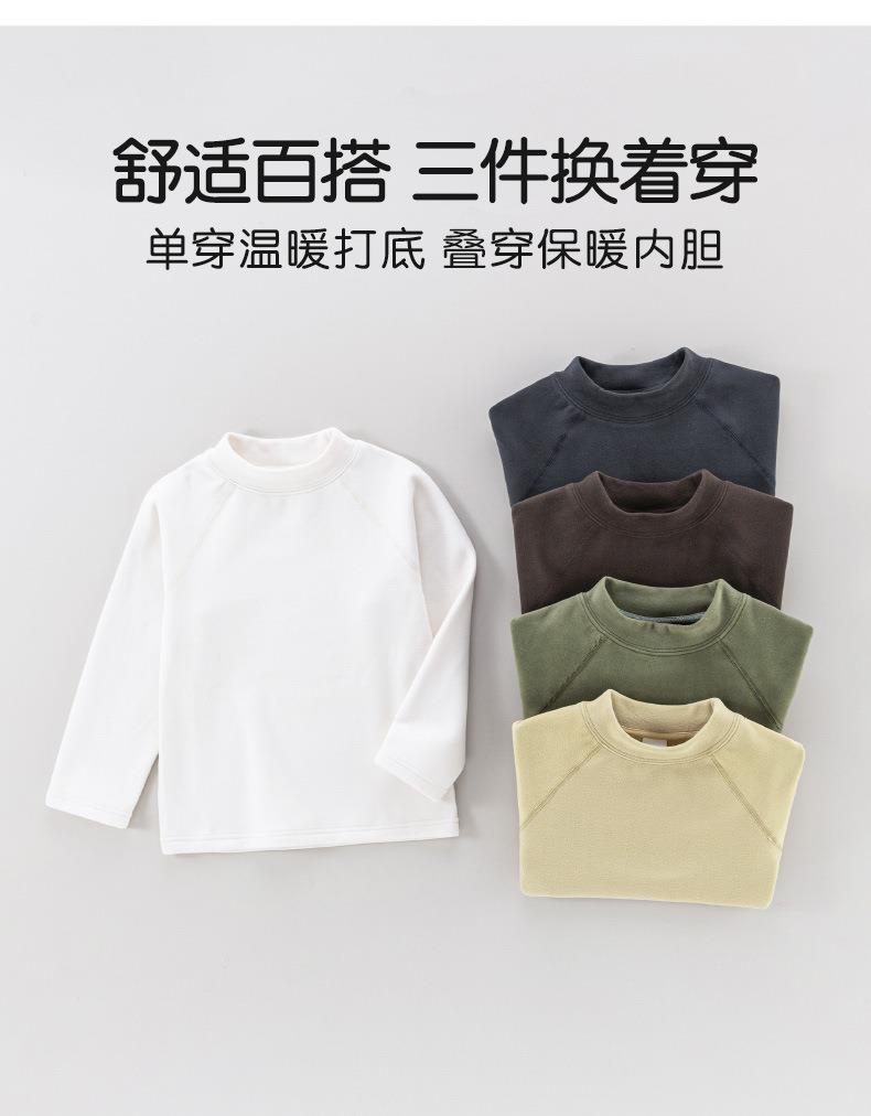 儿童打底衫冬季男童加绒上衣女童长袖加厚衣服大童半高领保暖衣冬