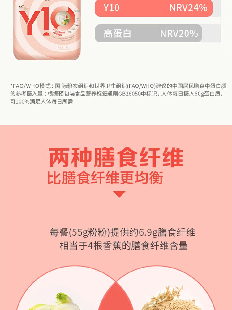 Y10益生元高蛋白高纤高钙早餐代餐粉 1100g(现金价)