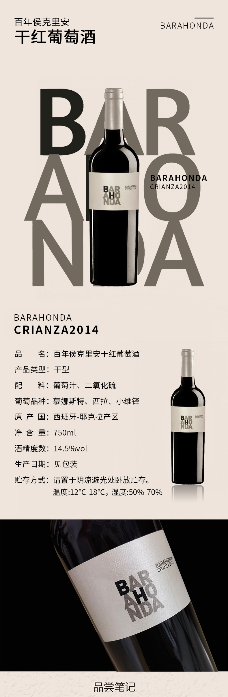 西班牙进口百老侯克里安2014干红葡萄酒750ml