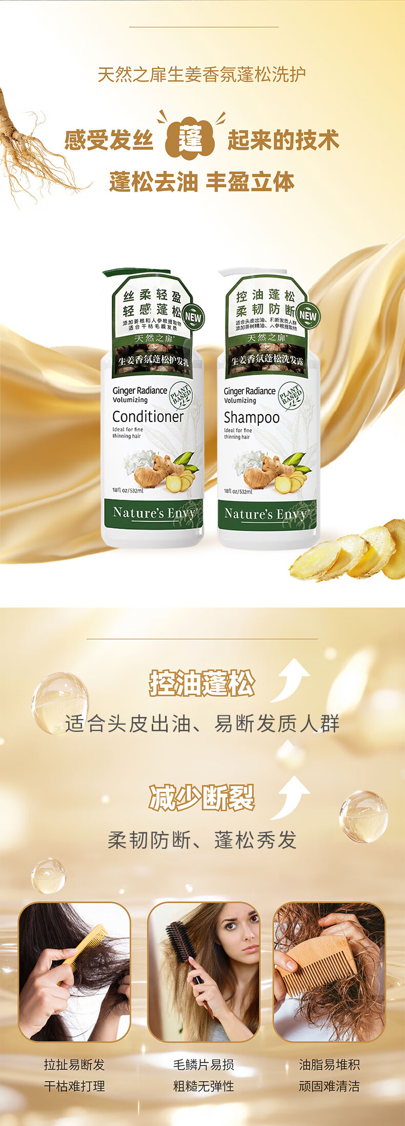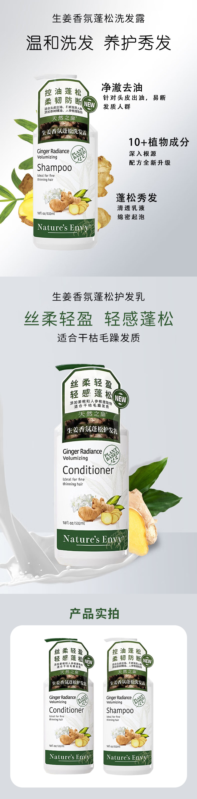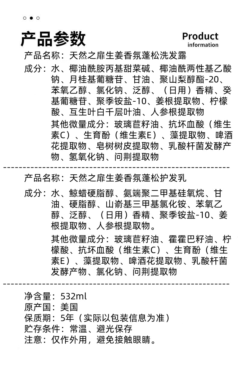 美国进口天然之扉生姜香氛蓬松洗发露丨护发乳532ml