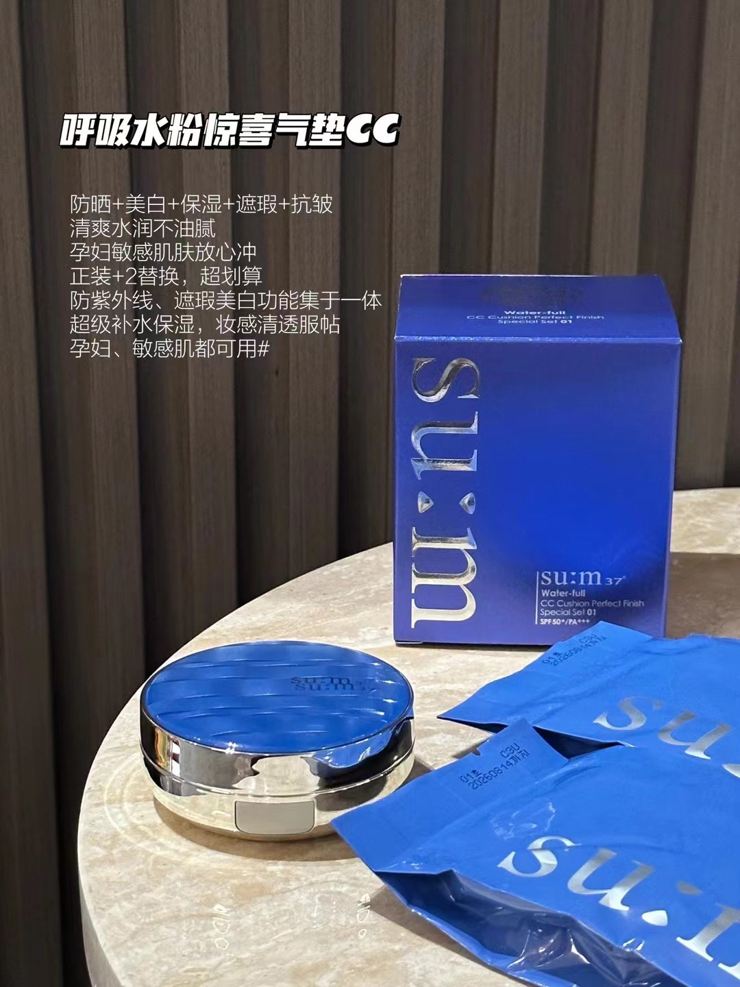 呼吸sum37度苏秘惊喜气垫cc水感粉底液bb 美白防晒一壳三芯套装