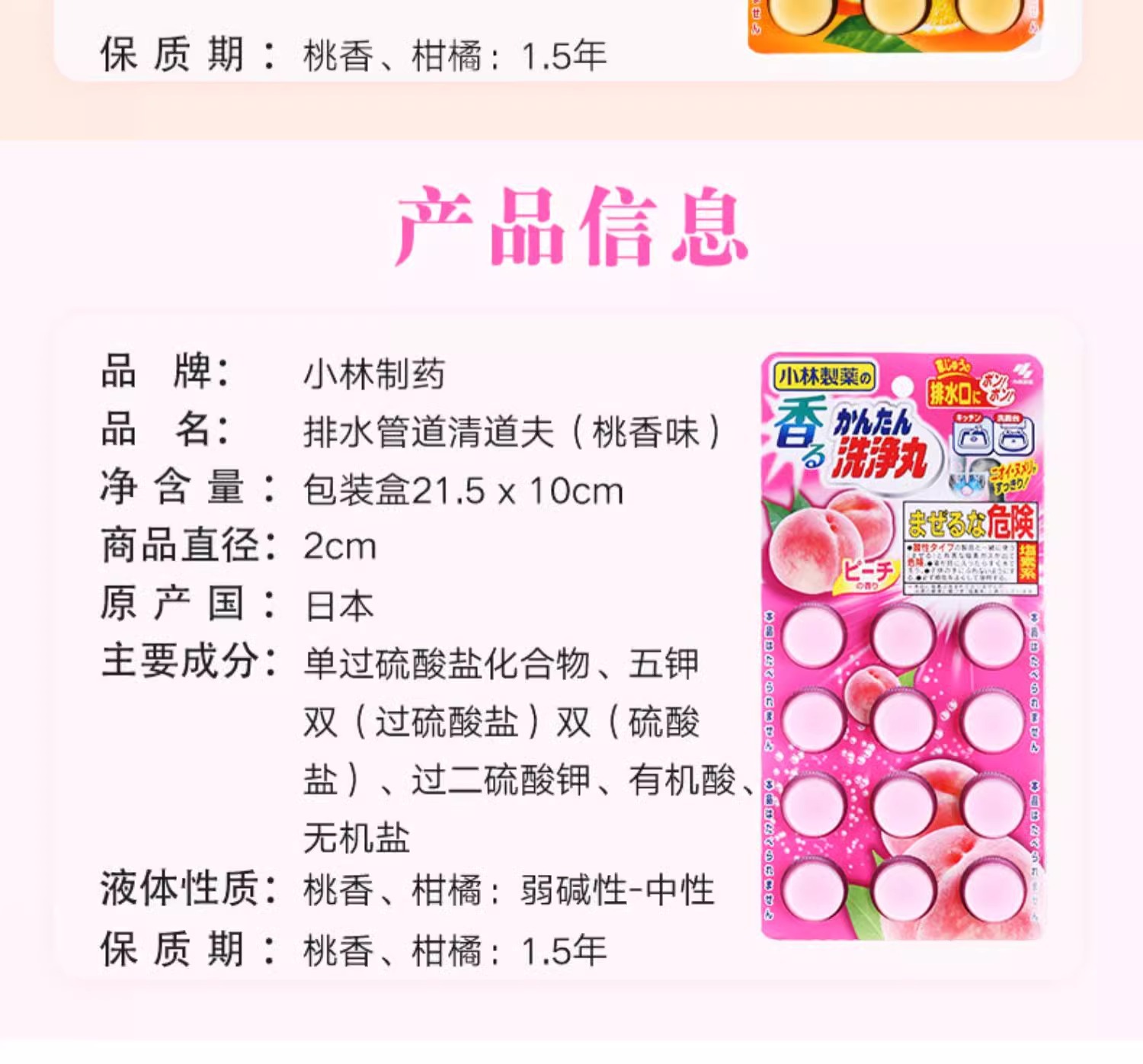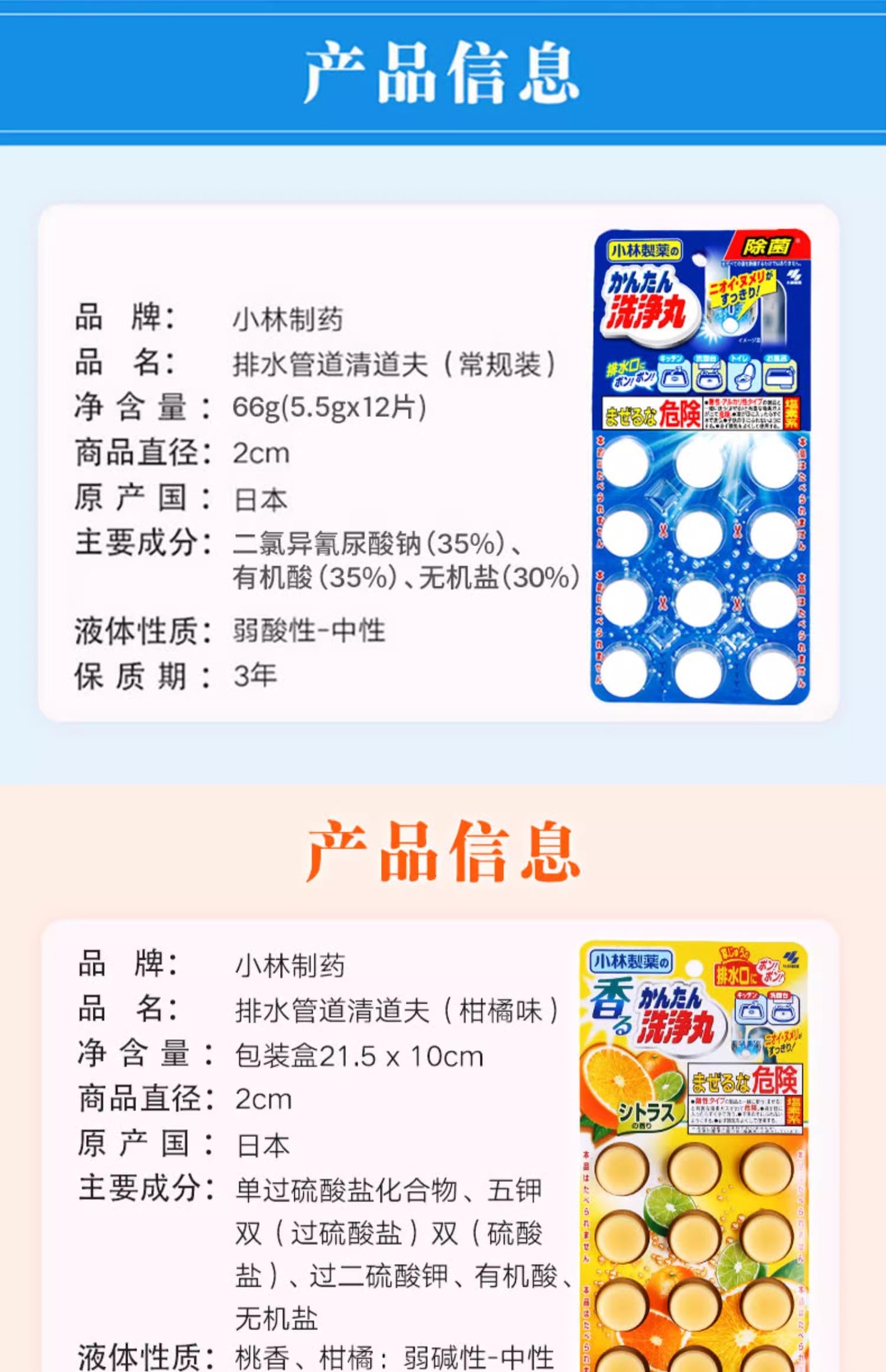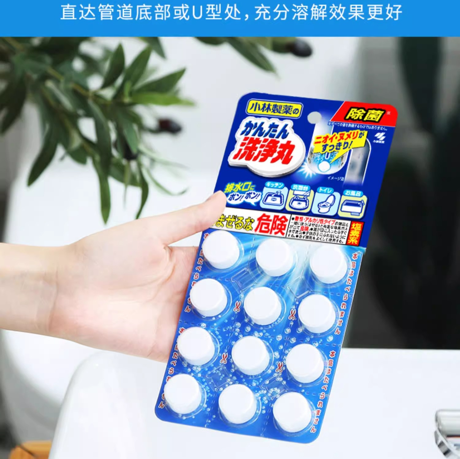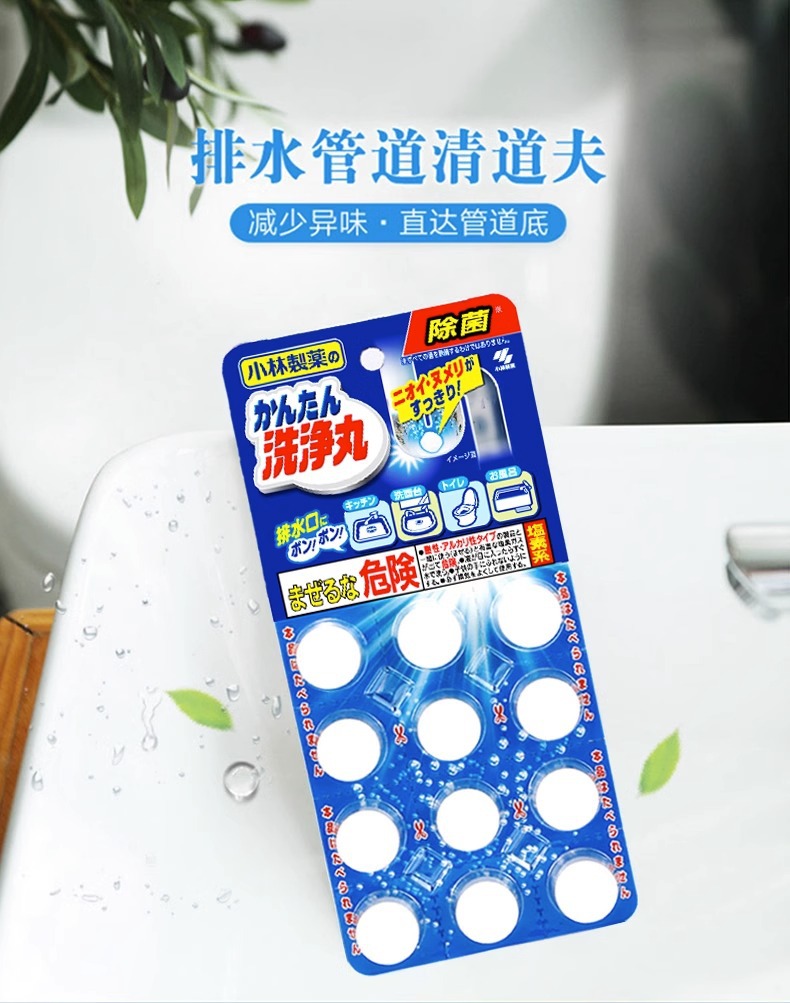 小林制药 排水管除臭疏通清洁丸 蓝色 12枚