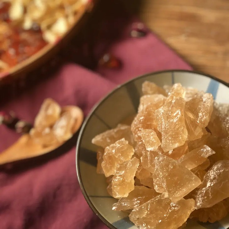 好的老冰糖不止天然淡黄色晶体,透亮,像未打磨的黄宝石。
