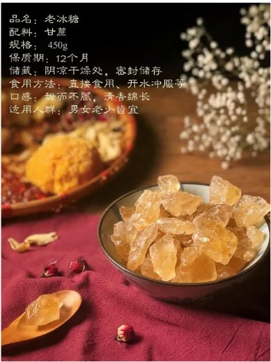 老冰糖由于容易吸水受潮,我们采用了密封袋包装,