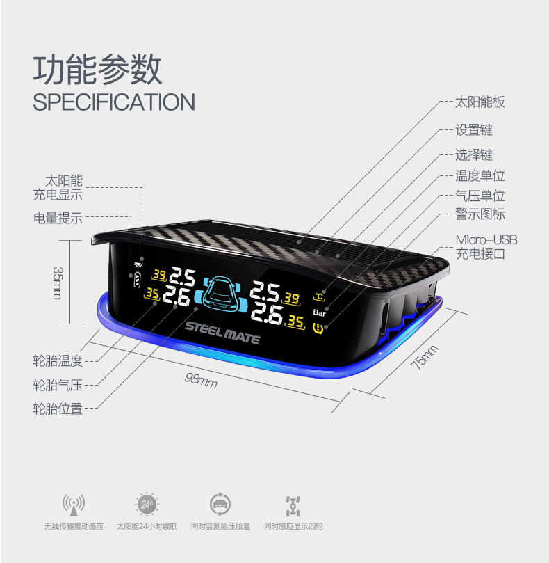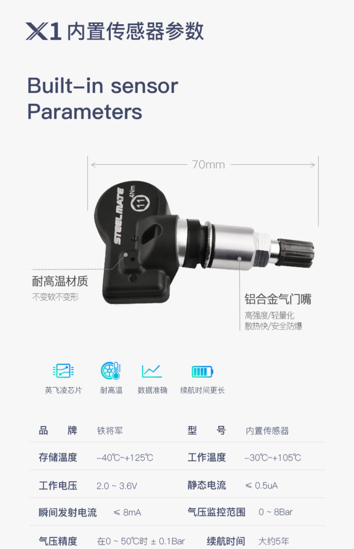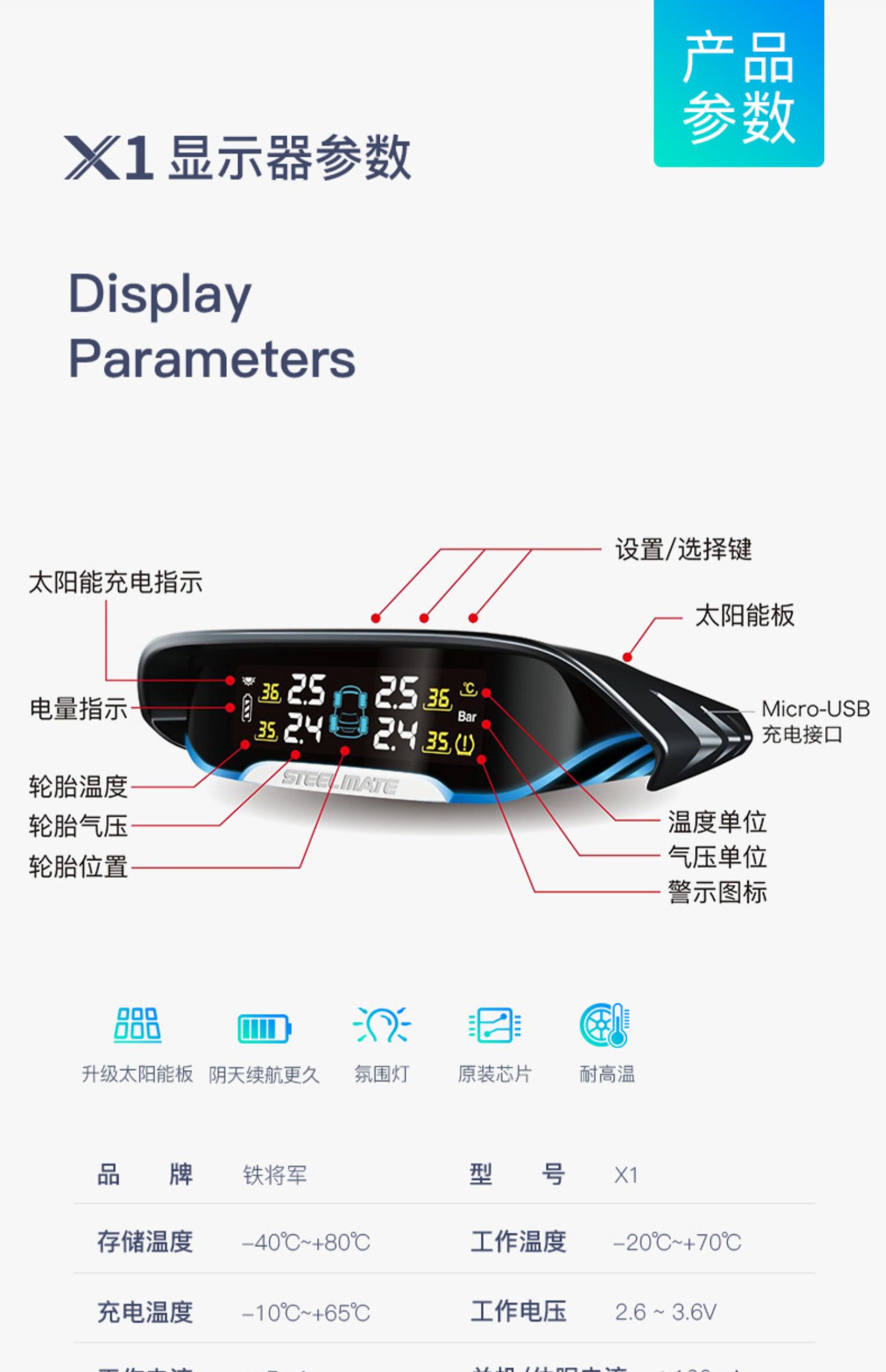 铁将军胎压监测器无线内置汽车轮胎气压检测仪高精度太阳能智能X1