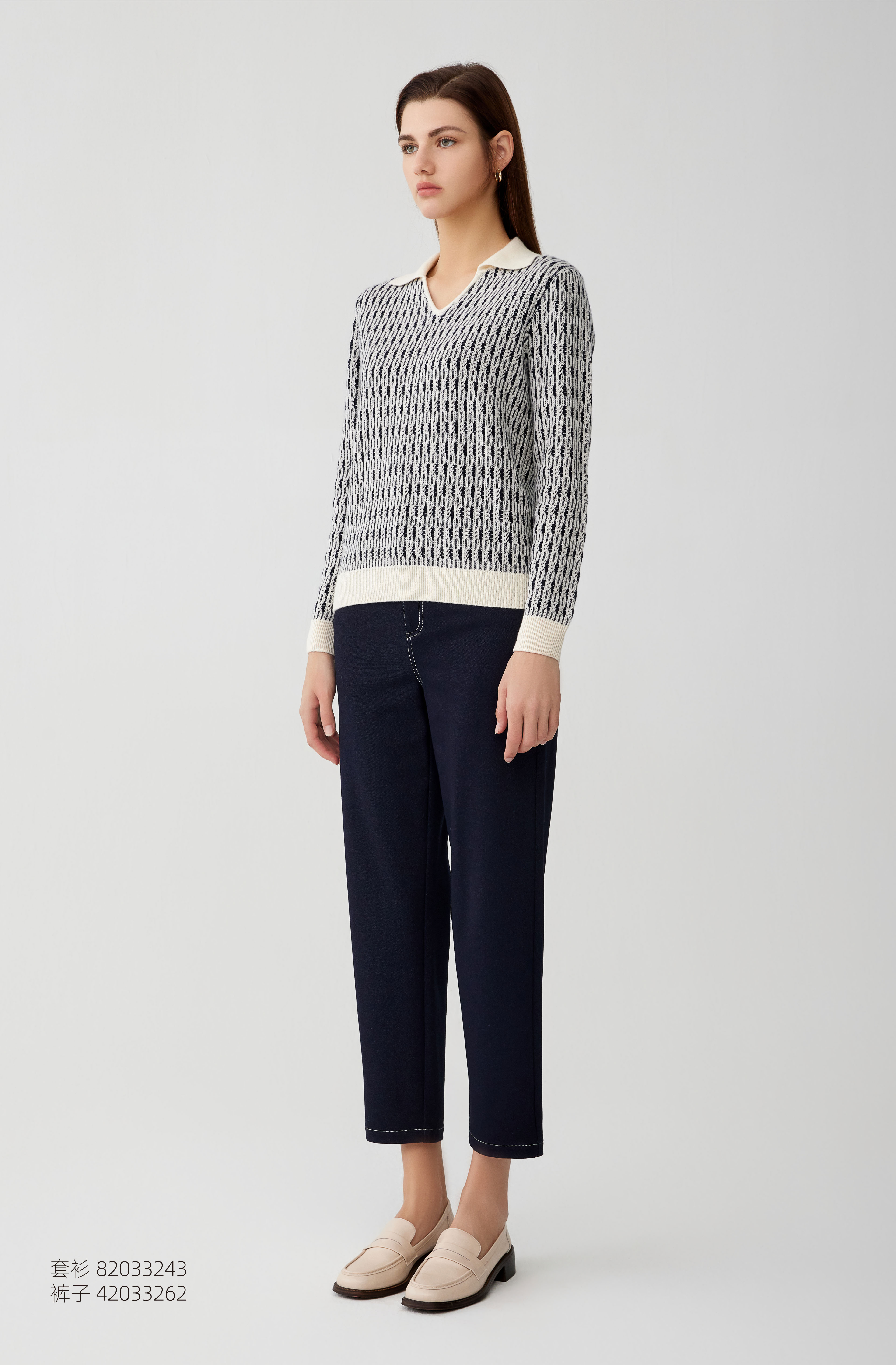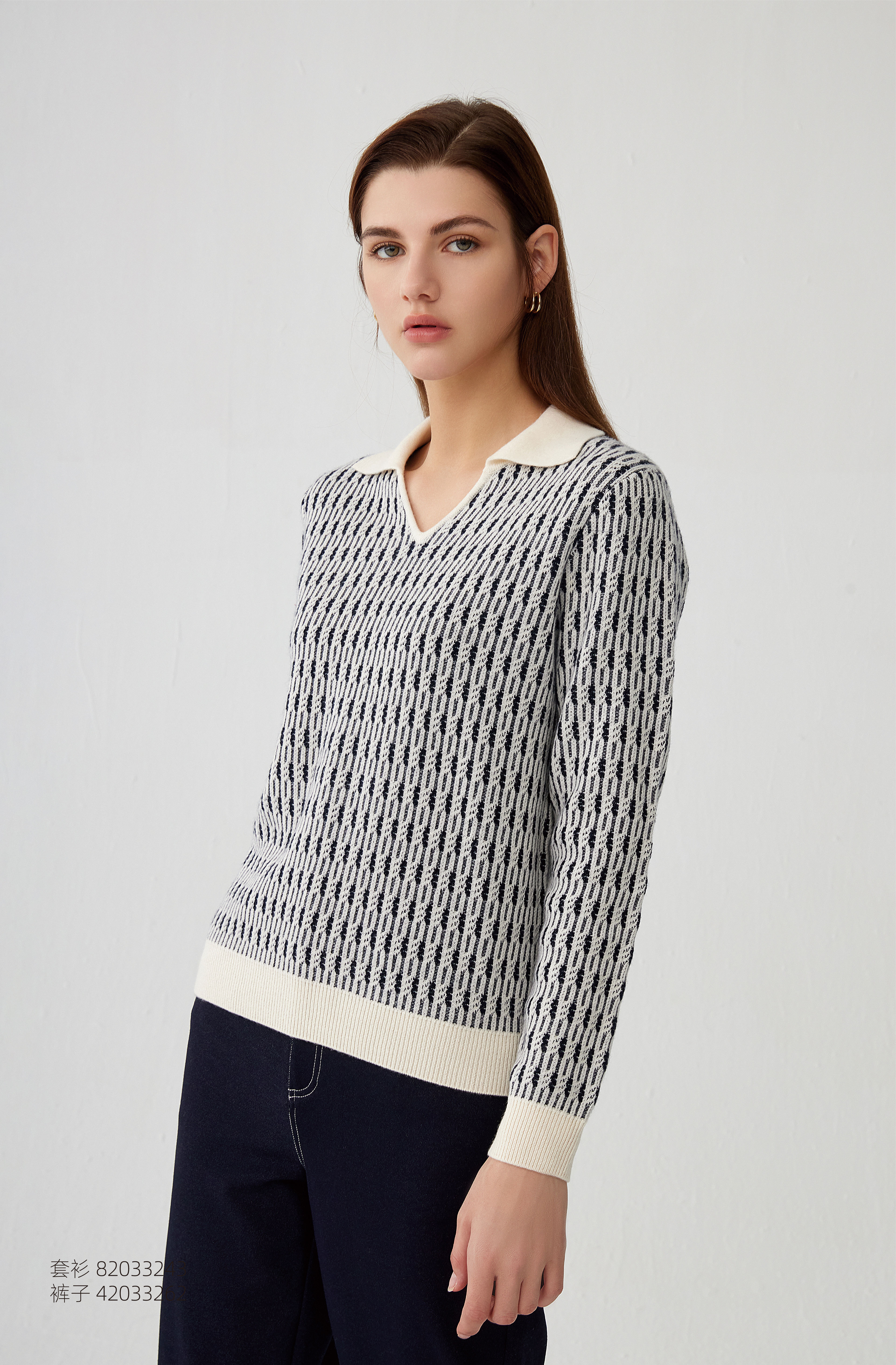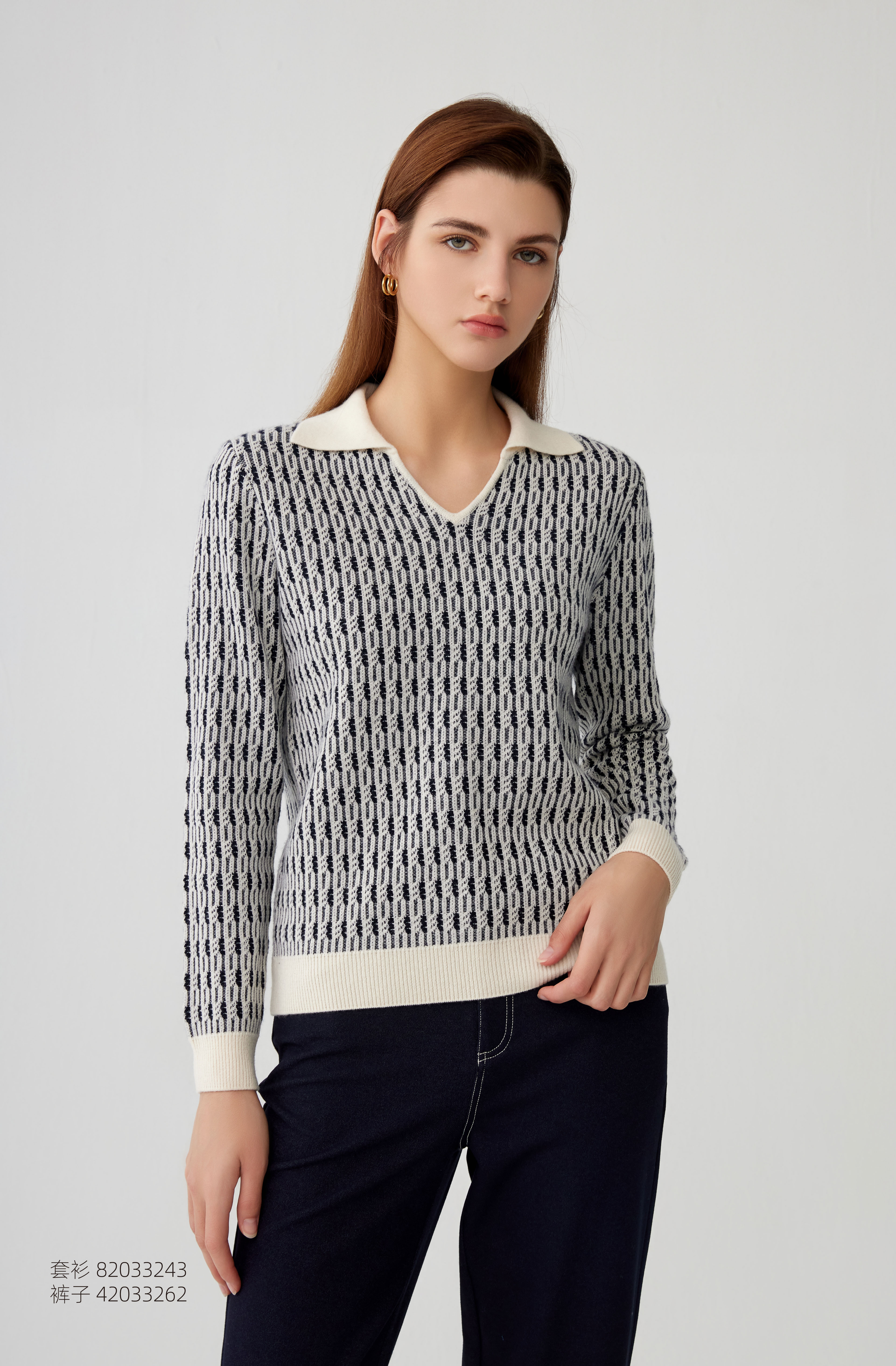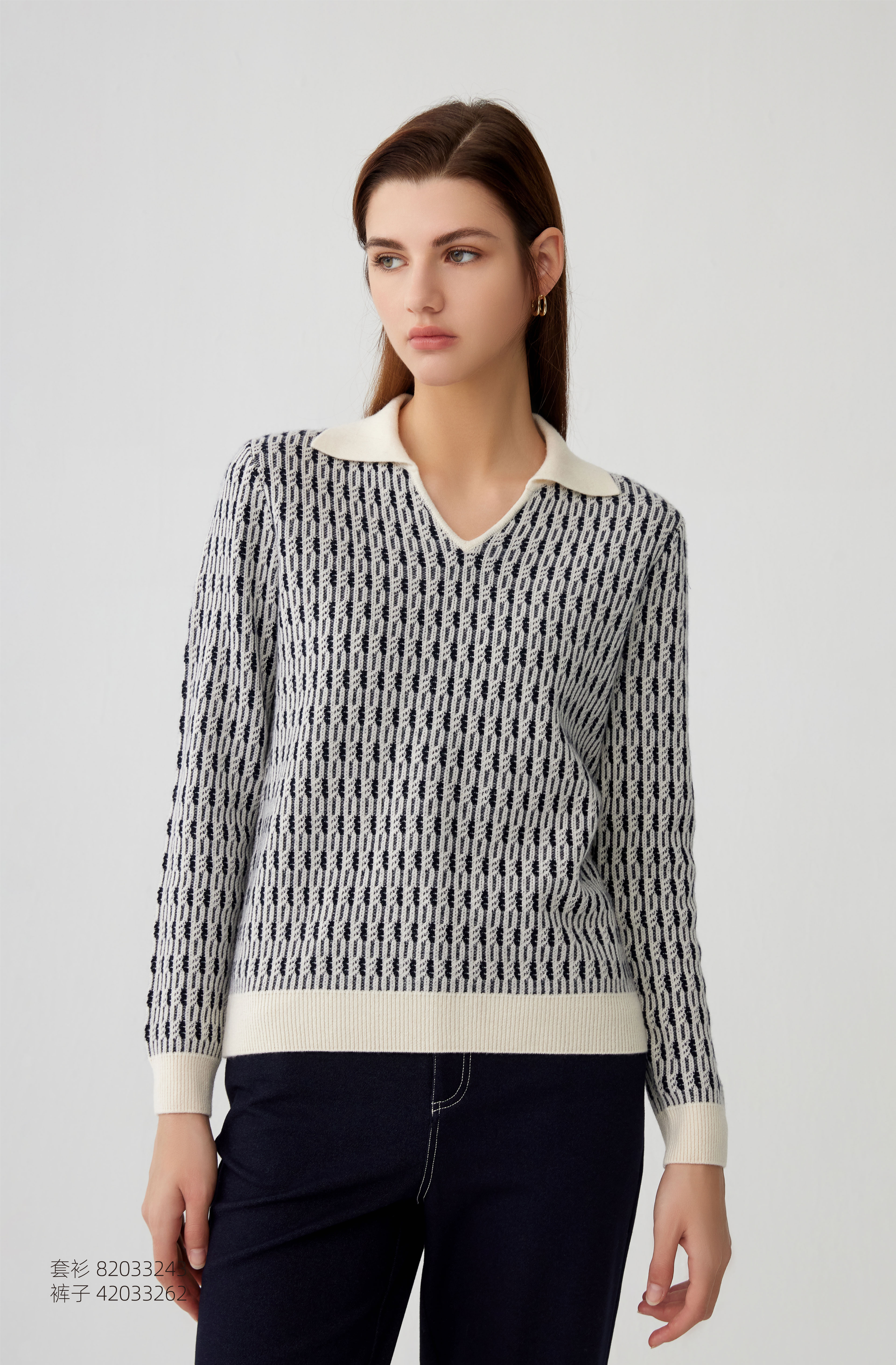 【V领撞色高织羊绒衫】羊绒时间秋冬新品女士100%山羊绒黑白撞色针织保暖毛衣
