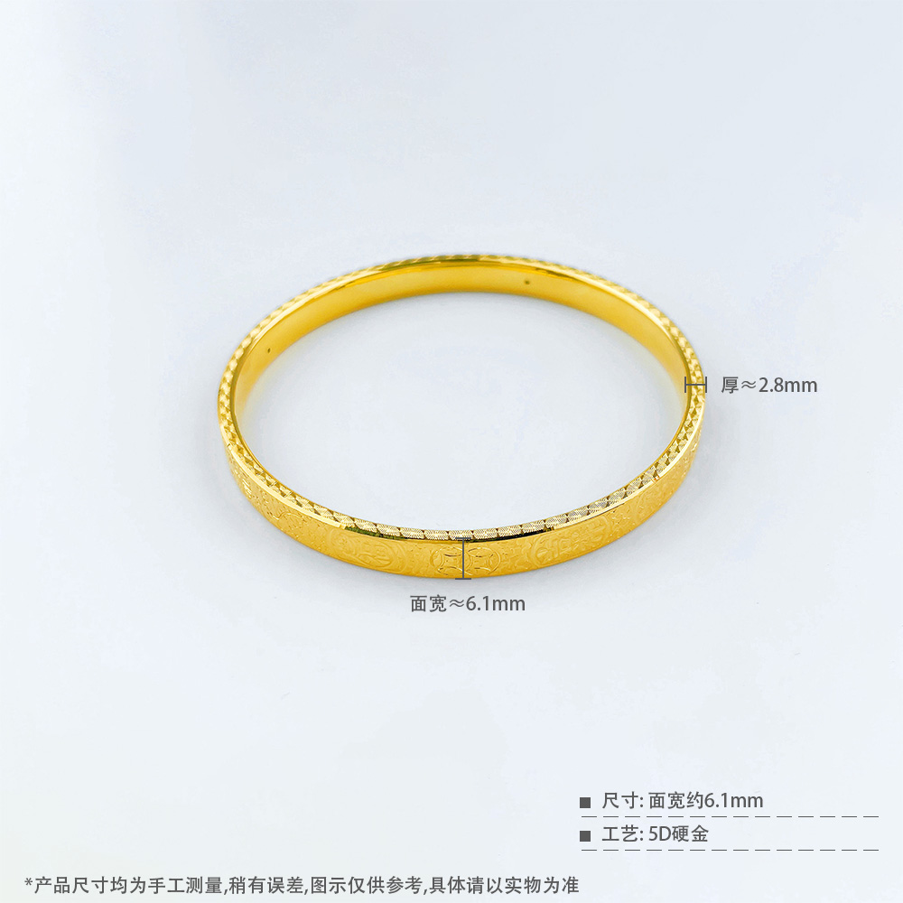 【限时克减150元】足金 无氰5D空心固口手镯鱼鳞招财进宝吉言手镯(面宽约5.9-6.3mm)(AR5DSZ00052)(预售产品下单后不退款不退货不换货不补差价