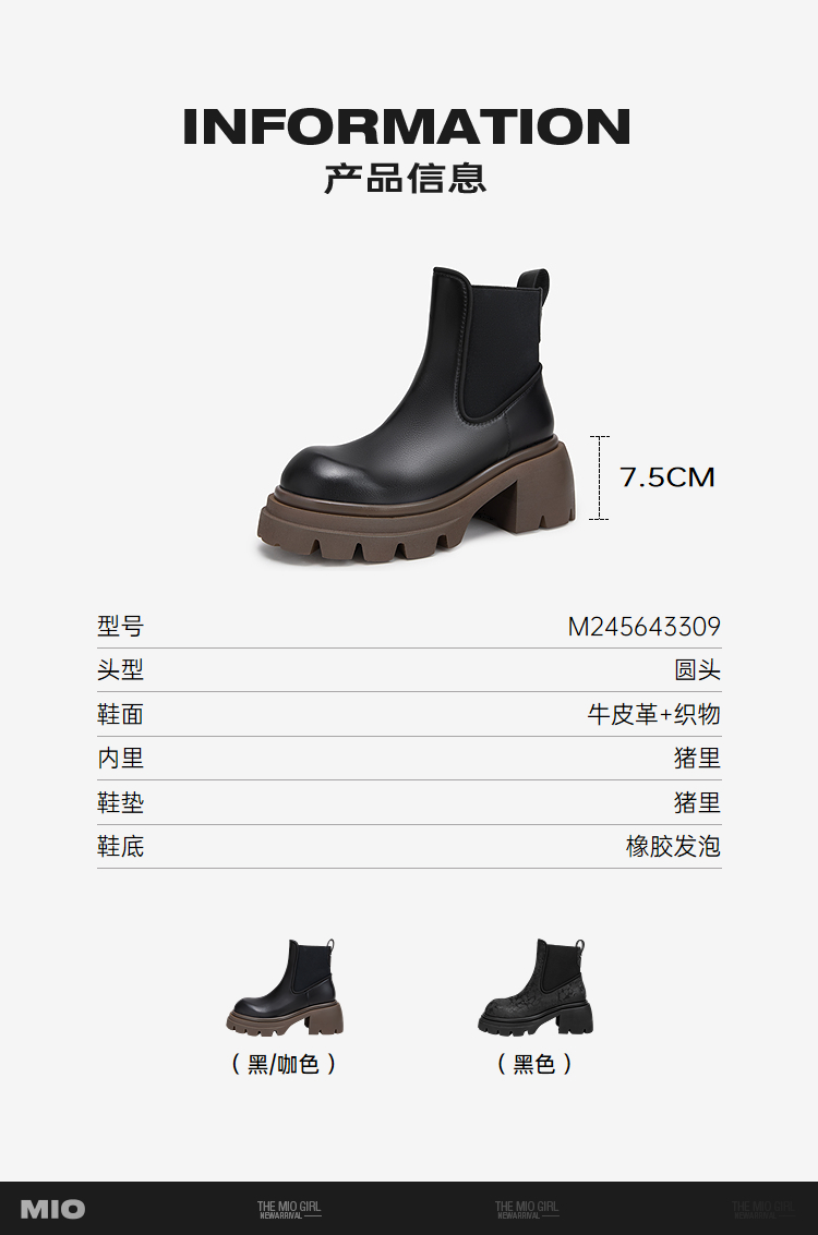 MIO米奥冬季圆头厚底马丁靴简约百搭切尔西靴酷感靴子女M245643309