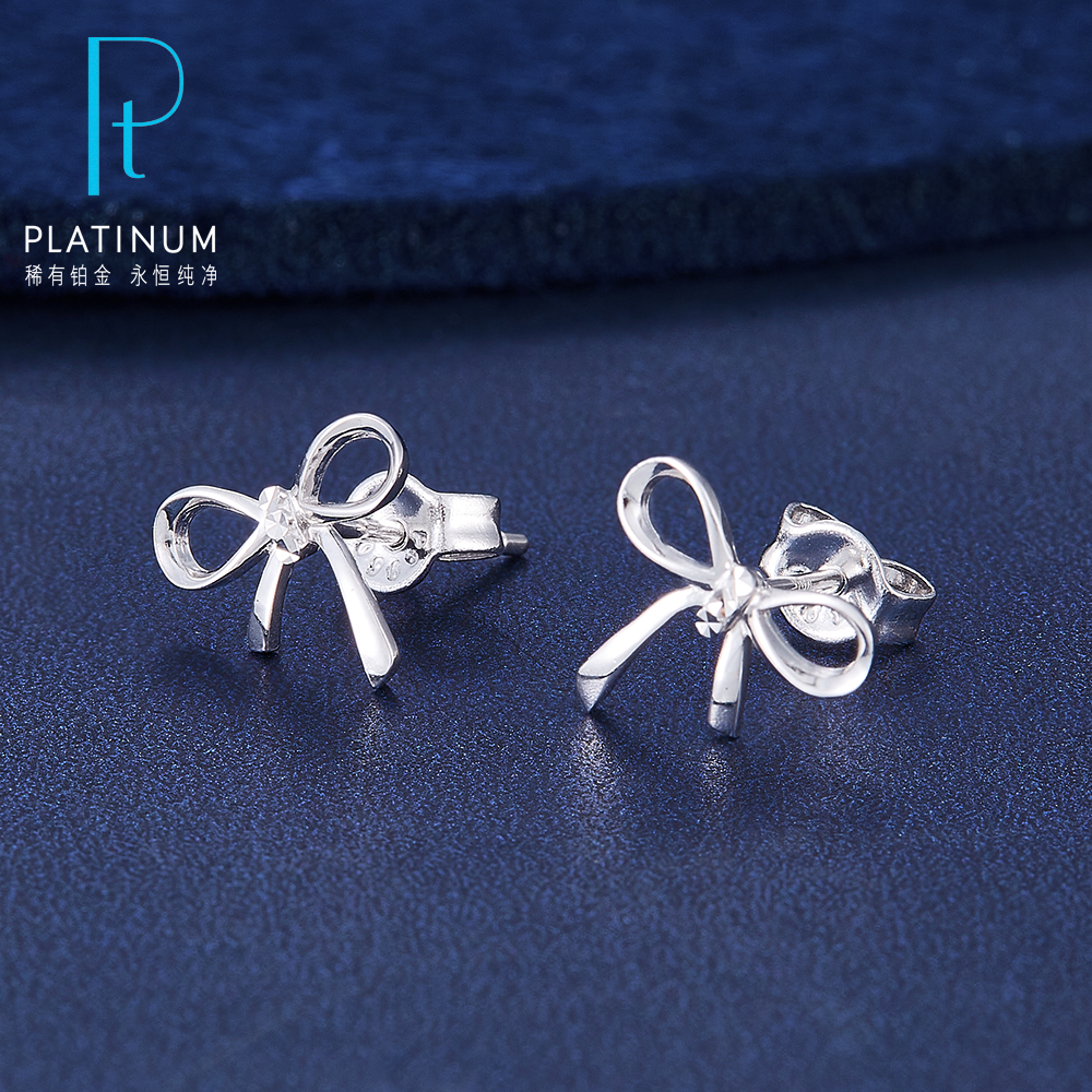 【限时8.8折】【线上铂金馆】PT950 【国际铂金协会】铂金蝴蝶结耳钉(直针配铂金耳迫)(BES00098),(预售产品下单后不退款不退货不换货不补差价)