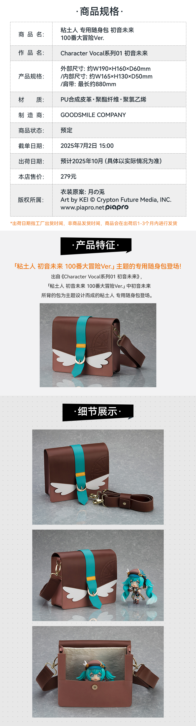 【GSC现货】粘土人 专用随身包 初音未来 100番大冒险Ver. 官方限定