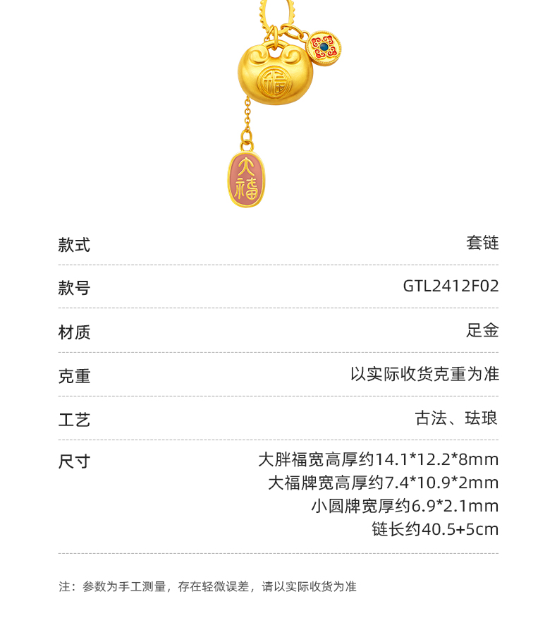 【美好有福】古法足金福如心意吊坠 福字小金坨挂坠送女友