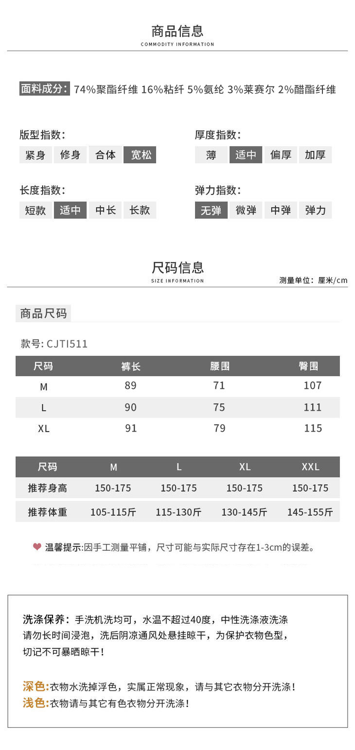 【商场同款】CJTI511 活力蓝色!宽松有度香蕉裤 显瘦舒适 轻薄透气 减龄好穿
