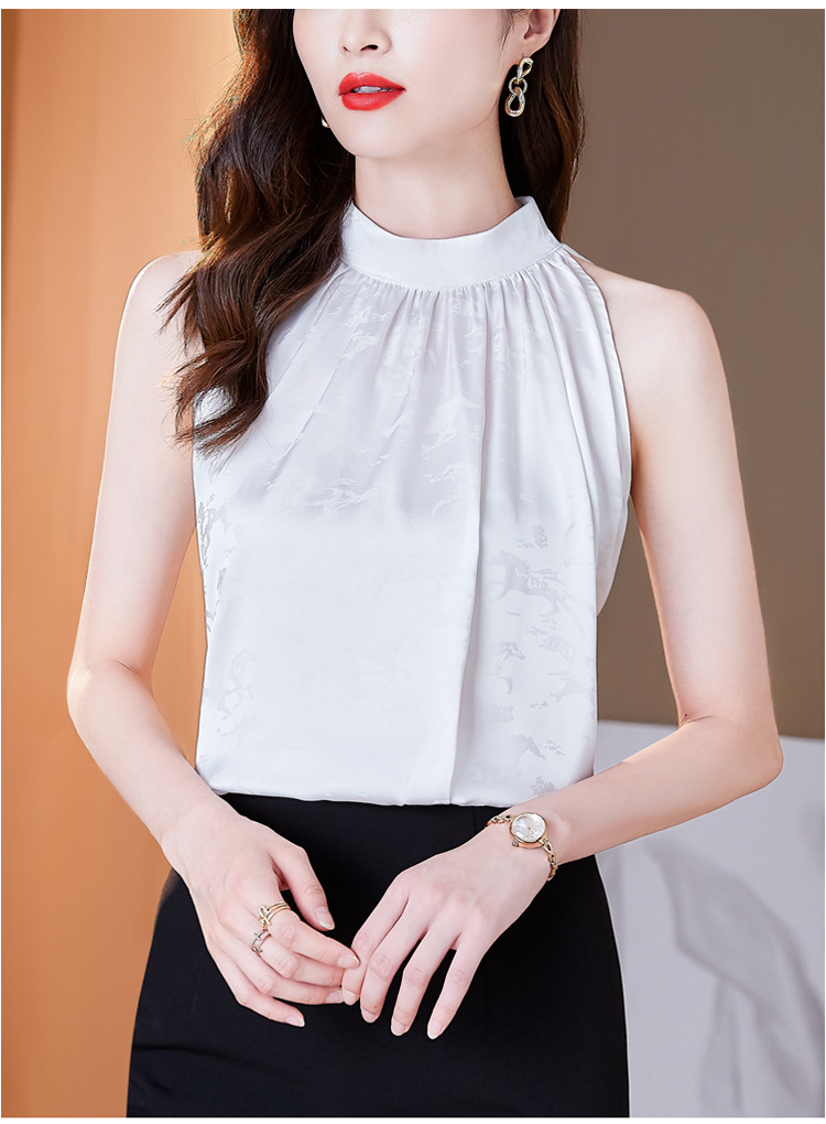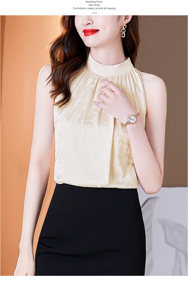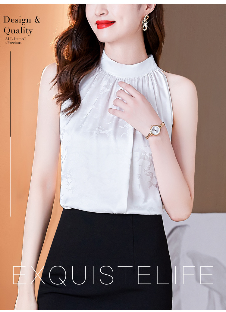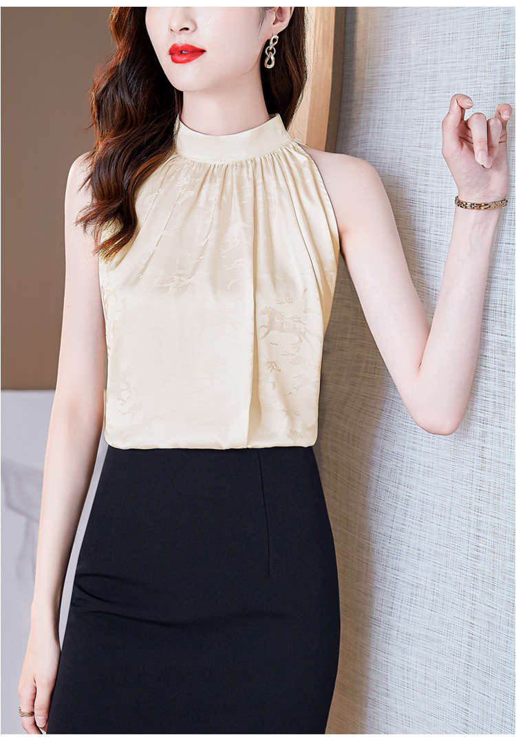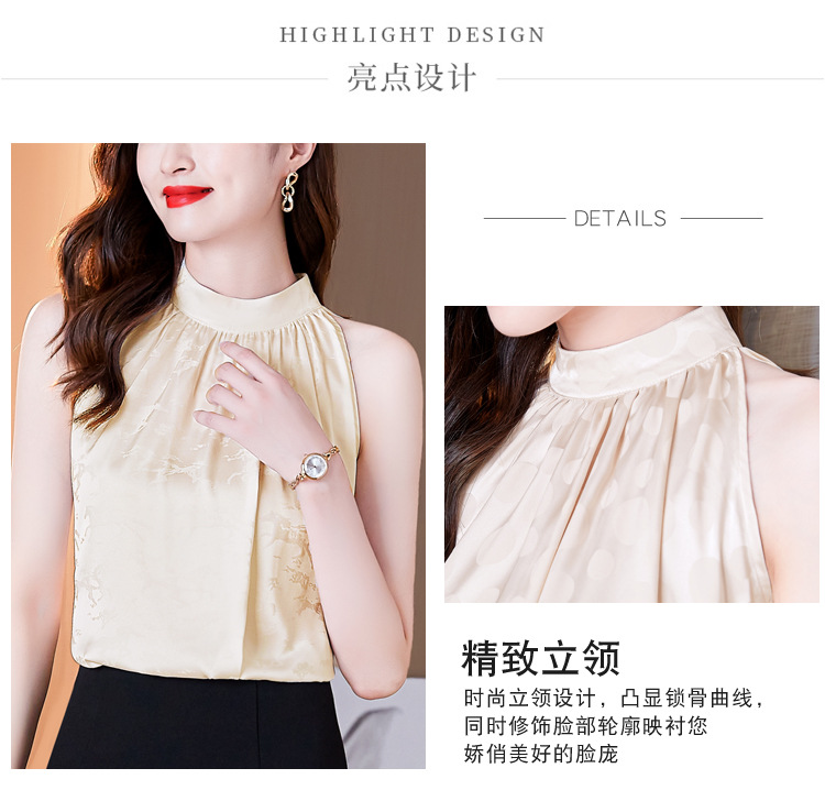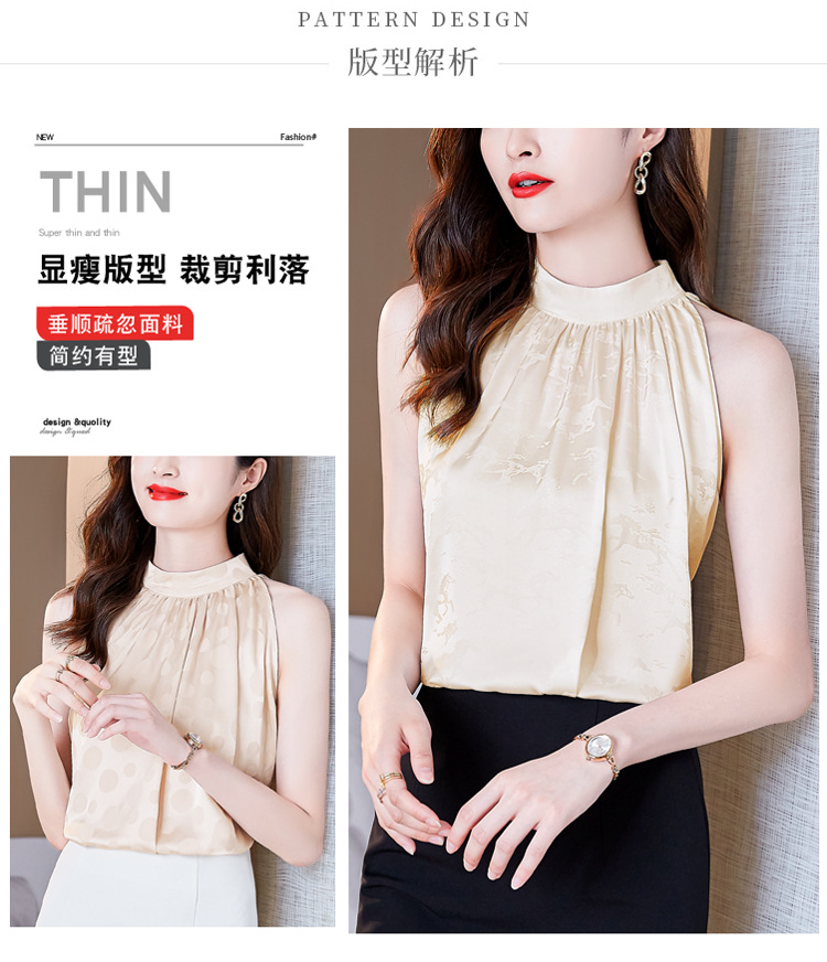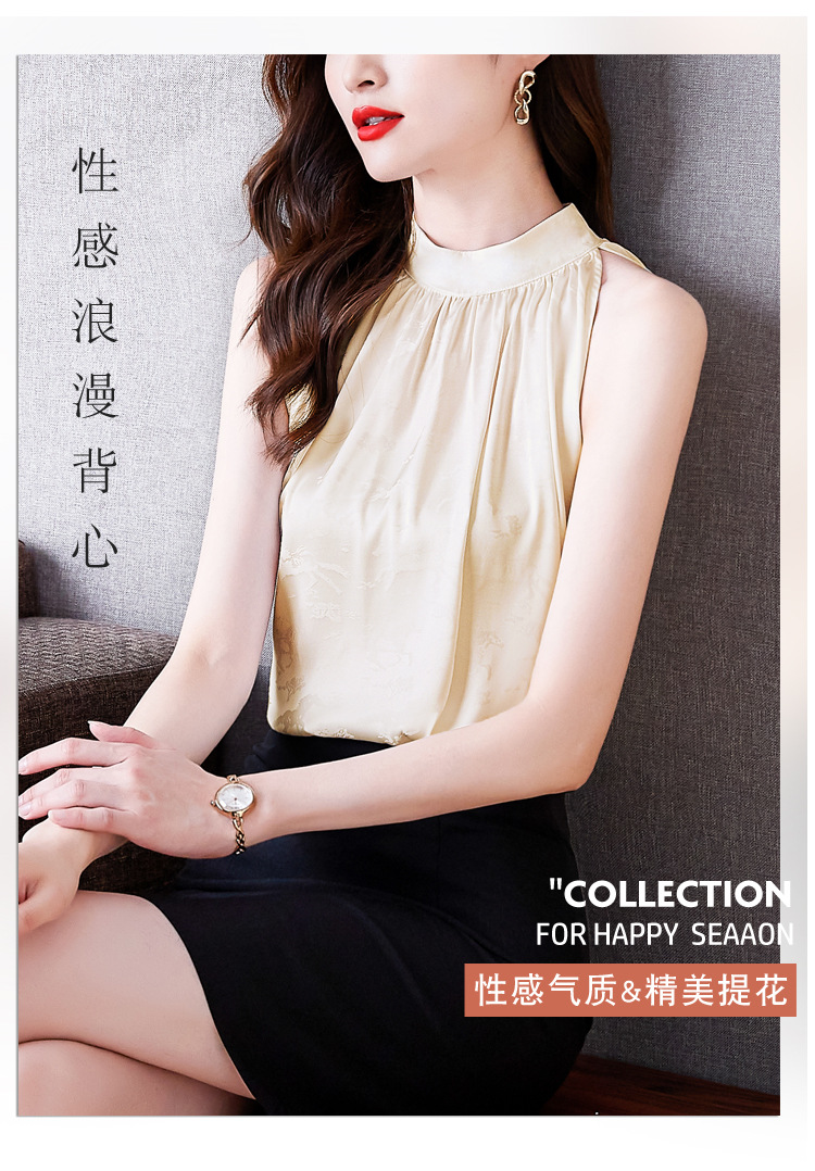 挂脖吊带背心,设计感小众缎面无袖仿真丝衬衫上衣KQL-1328