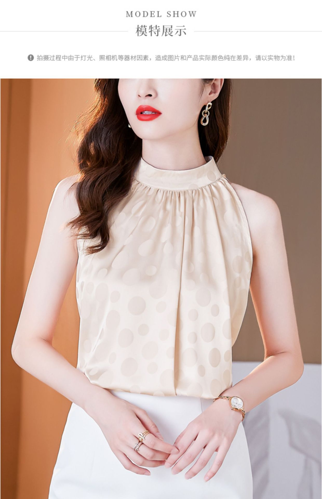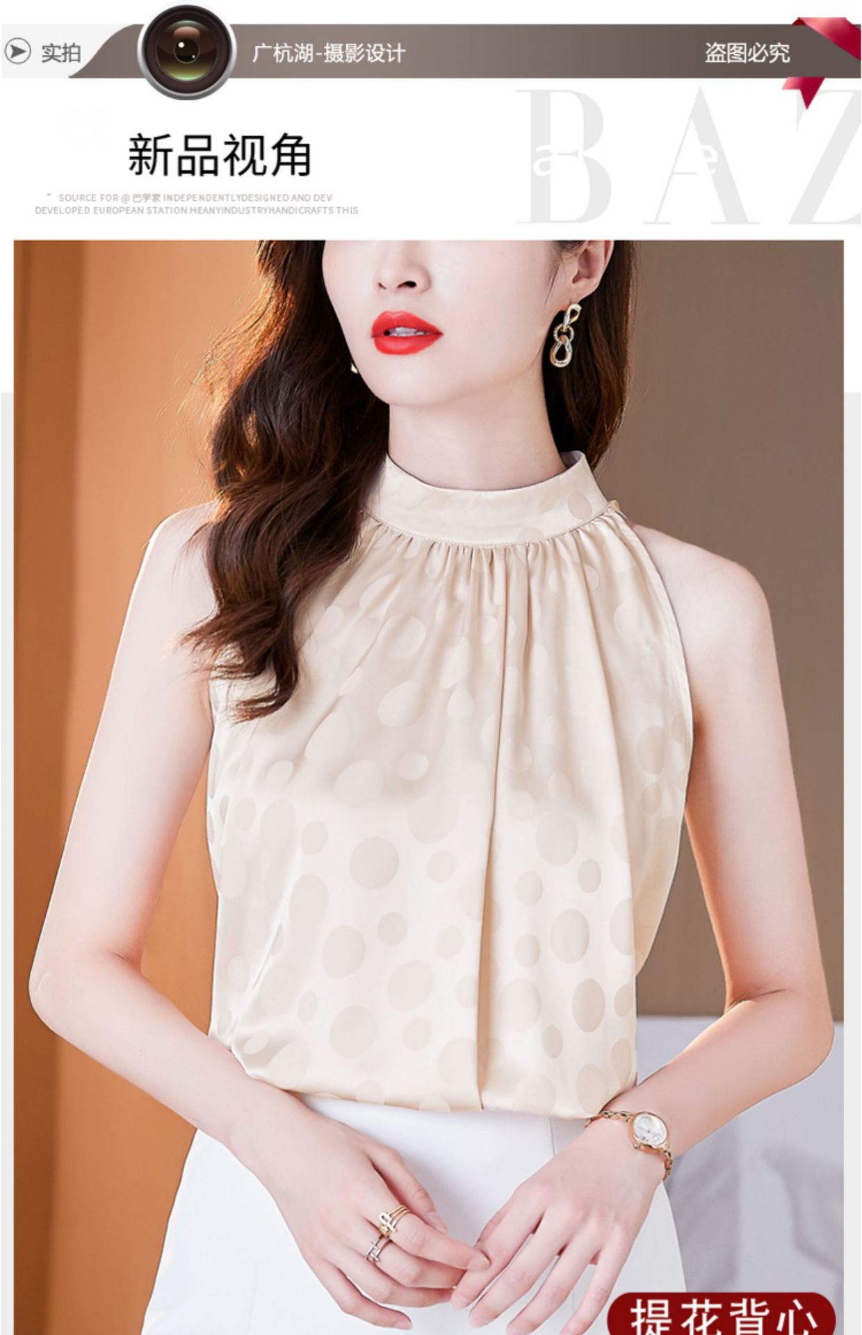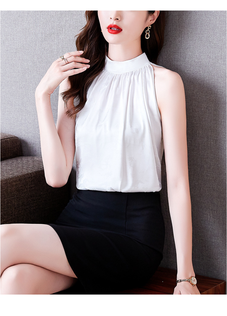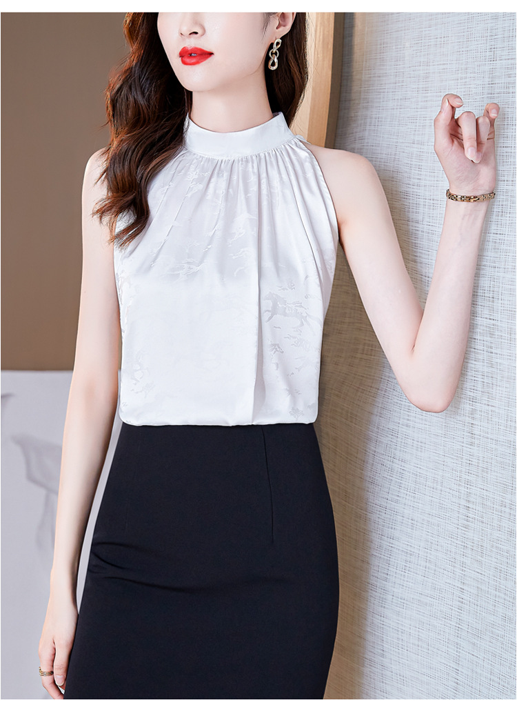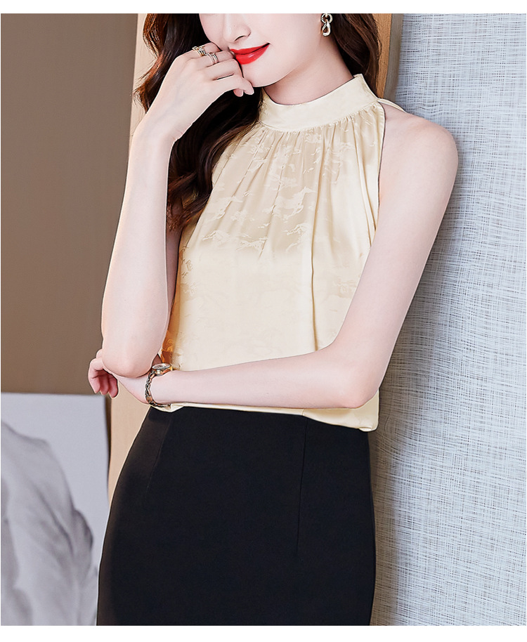 挂脖吊带背心,设计感小众缎面无袖仿真丝衬衫上衣KQL-1328