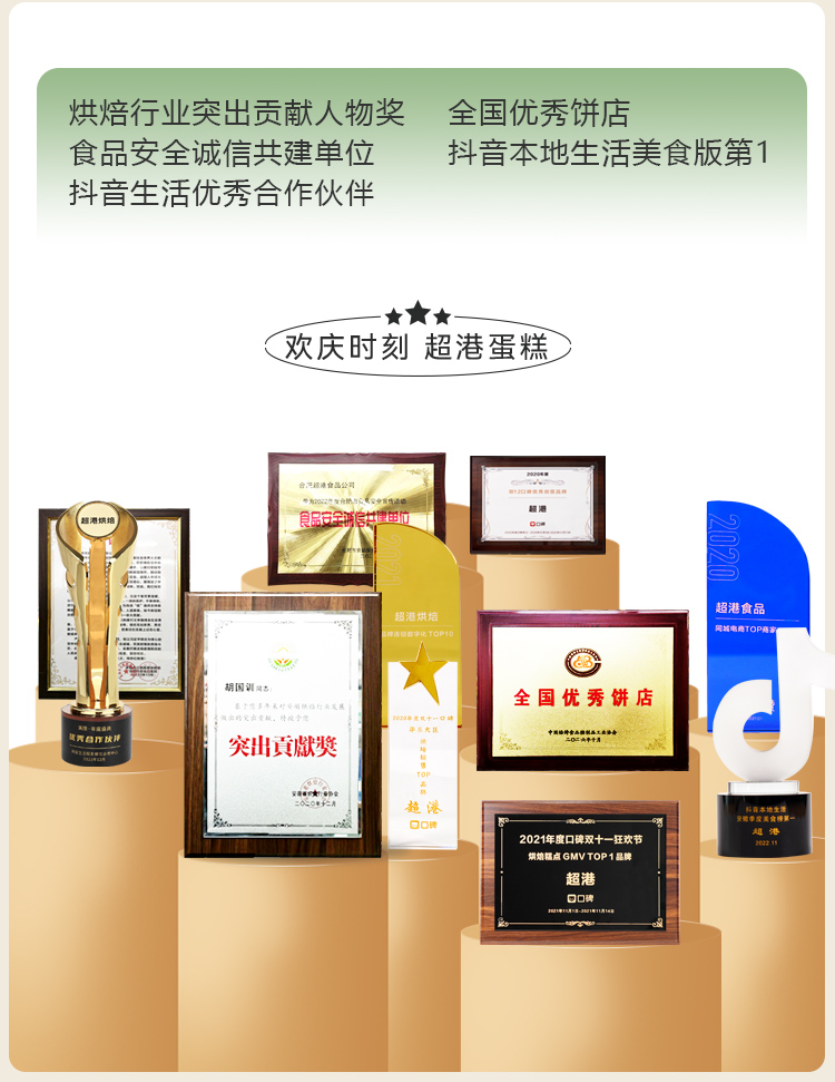 超港创立于1992年,是一家集生产销售面包、蛋糕、传统糕点、中西点于一体的全国性连锁烘焙企业,拥有百余家直营门店。超港以“玩味烘焙、文创美学”为经营理念。