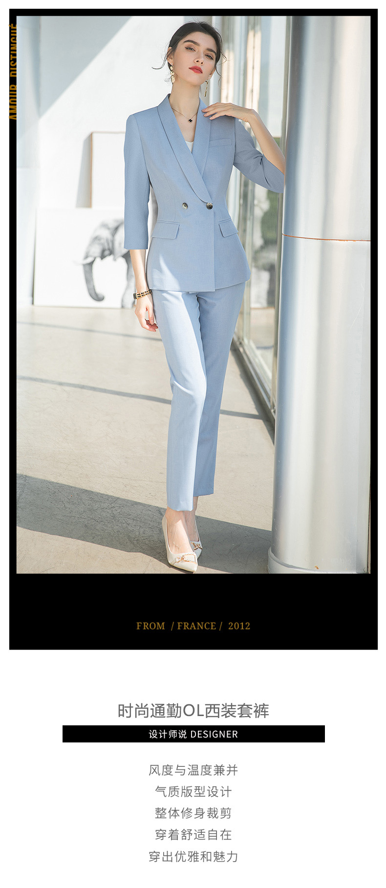 IWY/蓝色高级感西装套装女时尚职业装气质女神范修身显瘦面试正装C1600+P1548