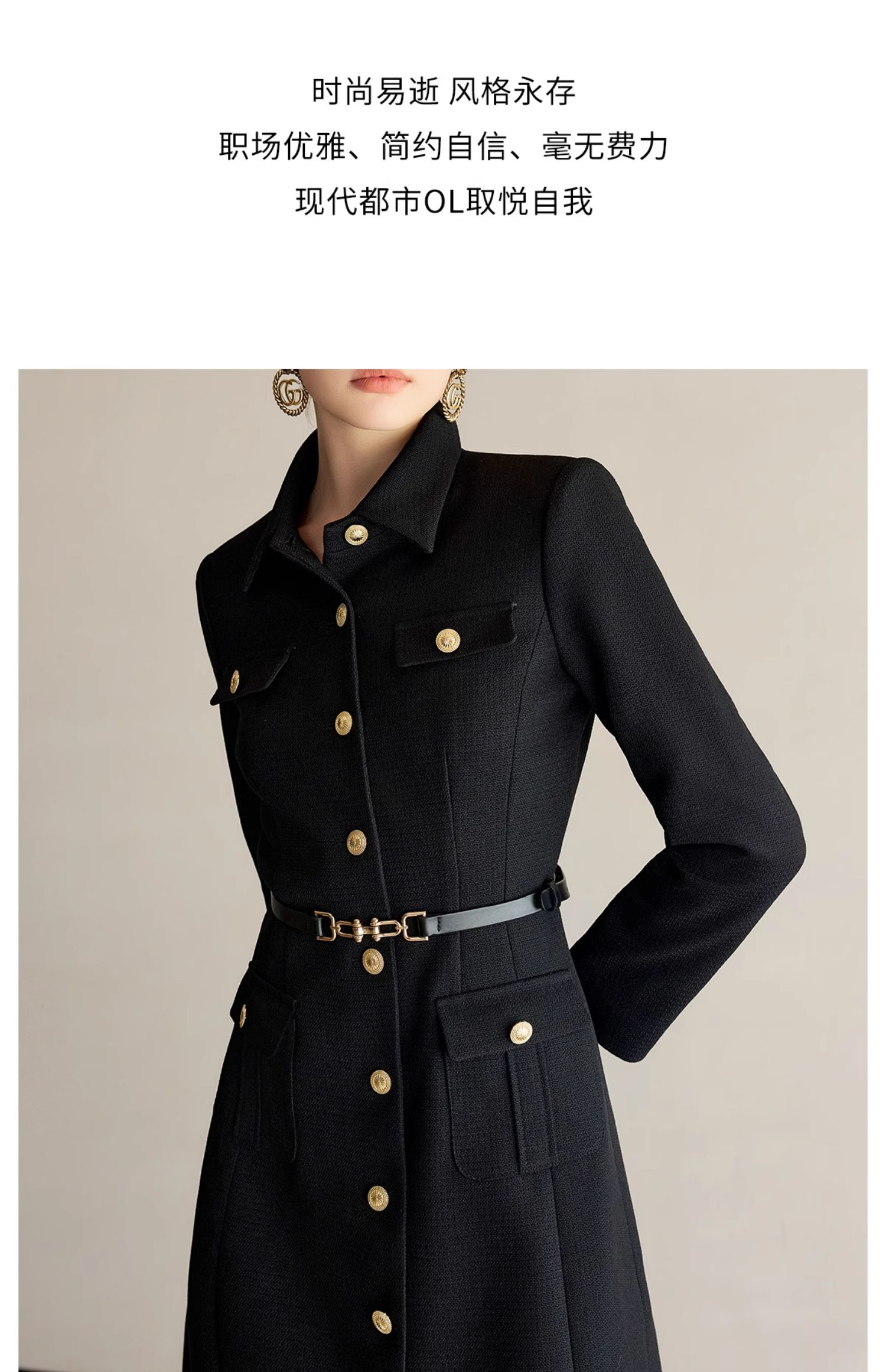 IWY/气质轻奢黑色西装裙女新款绑带长裙正式场合职业连衣裙Q1280
