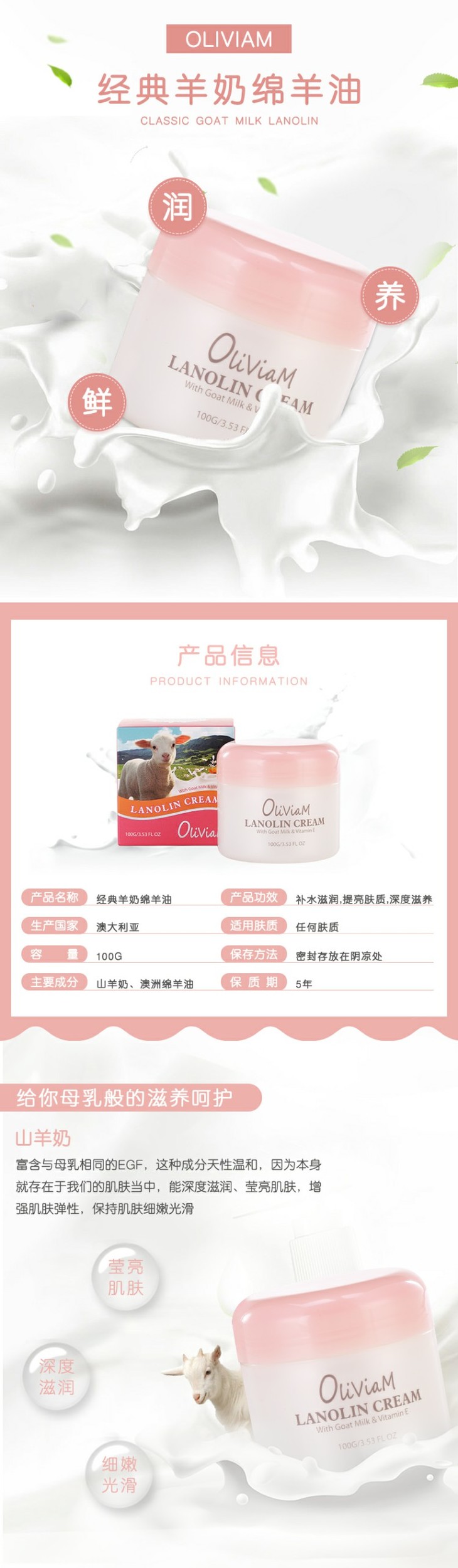 【一般贸易】·澳洲Oliviam经典羊奶绵羊油面霜100g/瓶