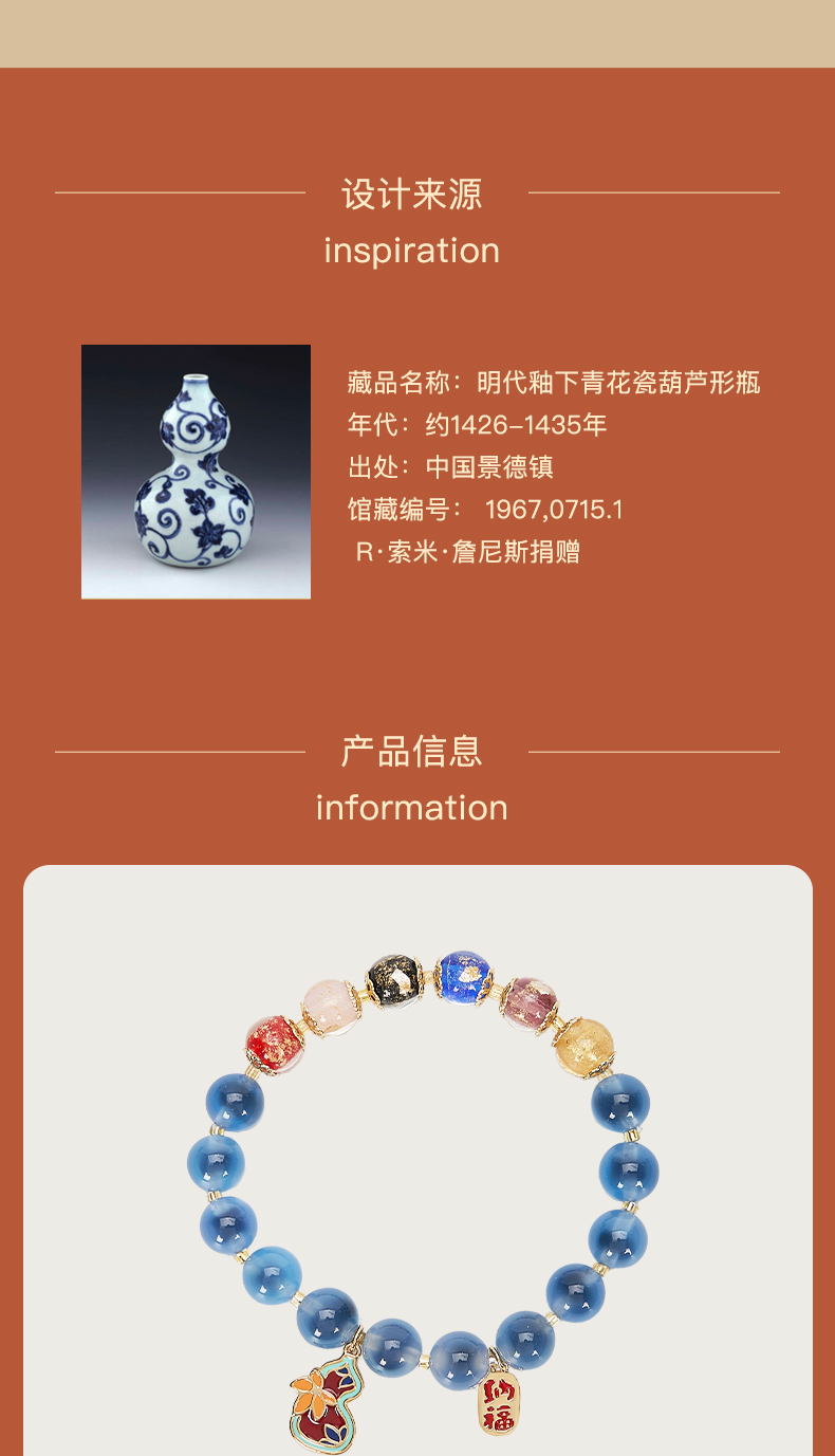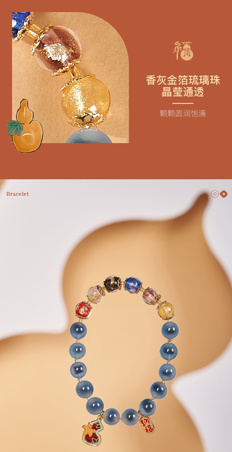 大英博物馆 东方梦境系列 福禄香灰琉璃 溏心玛瑙 手链