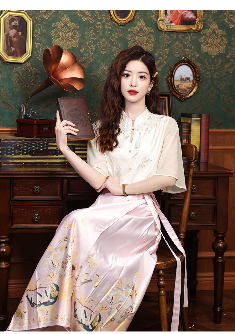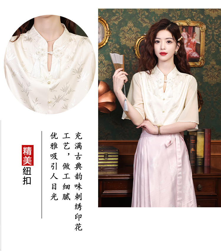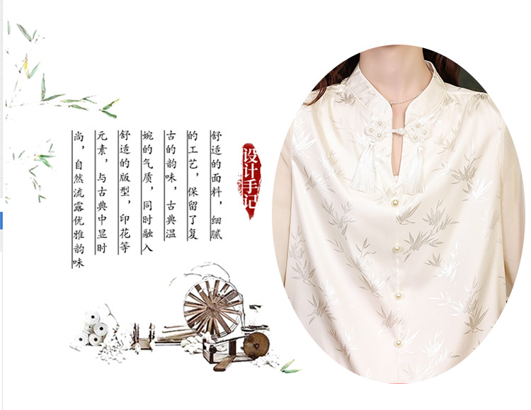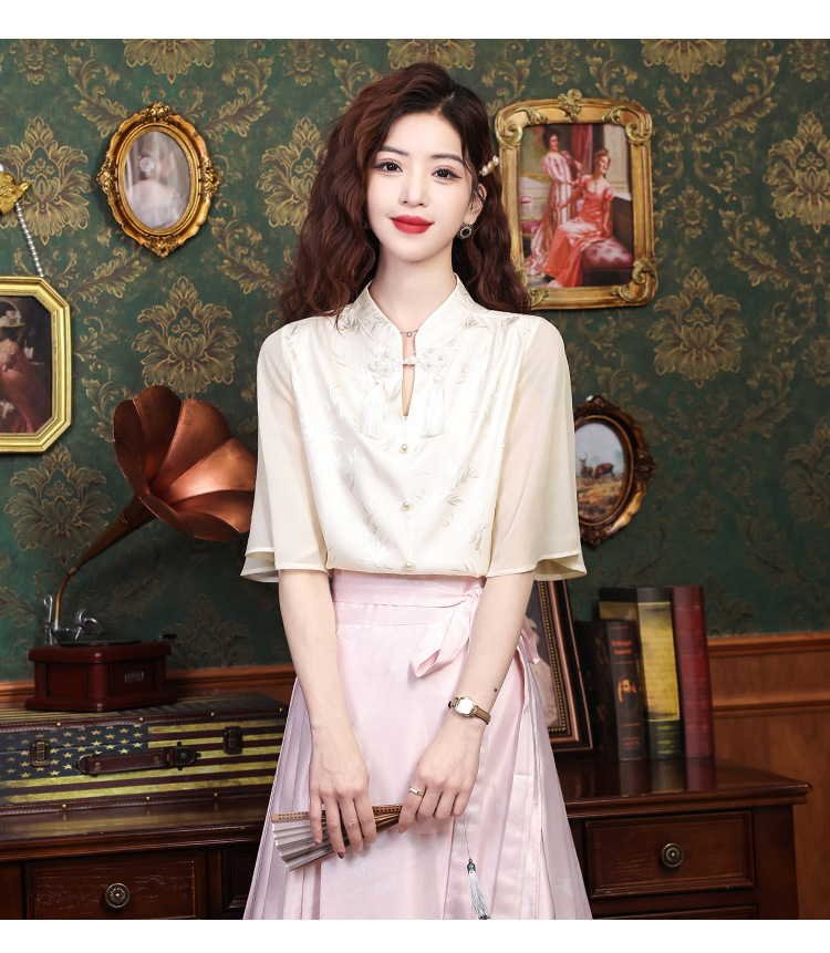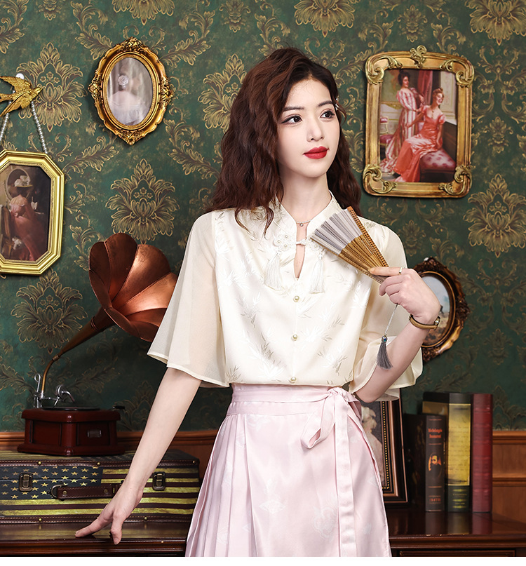 中式国风,流苏盘扣印花荷叶袖雪纺衫KQL-559G1340