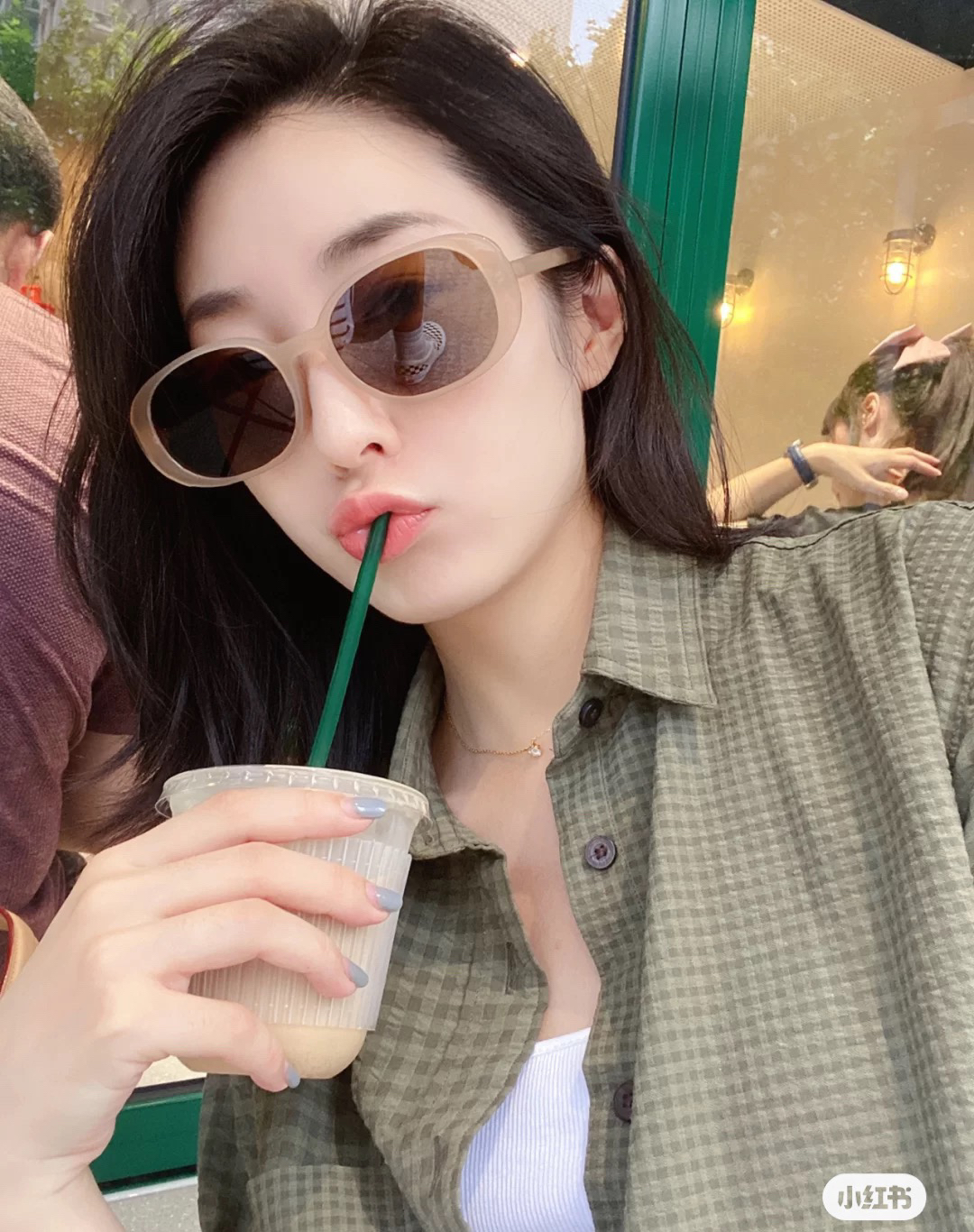 韩国女星目前带的时髦墨镜基本这款,轻便,时髦,干净利落,树脂材质相当干净,而且浅色显白显温油,INS风情满满。脸宽的胖瓜在更宽的镜框对比之下,就显得脸小多了。效果就相当于松糕厚底老爹鞋显腿细,更宽一点的镜框显脸小,一个道理。优雅时髦,复古风情。