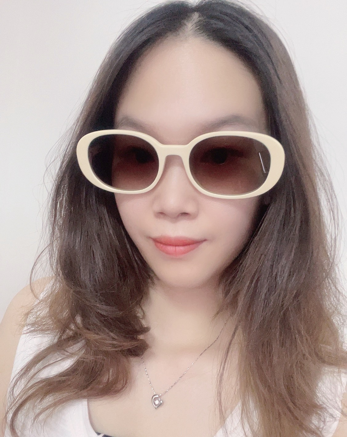 颜色很多,我自留了两色,这个配色看着就很时髦。复古椭圆形,15cm的宽度,脸窄的姑娘,越发显得墨镜宽了。我这样的还好,哈哈哈。