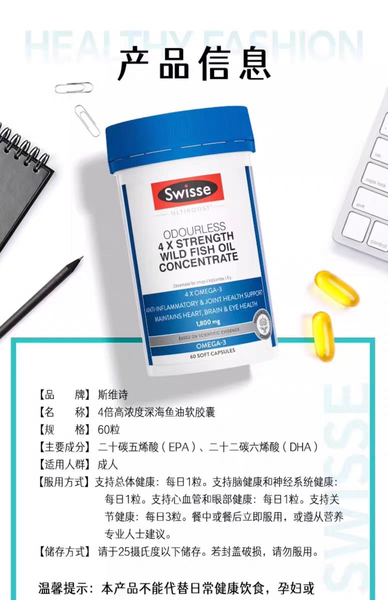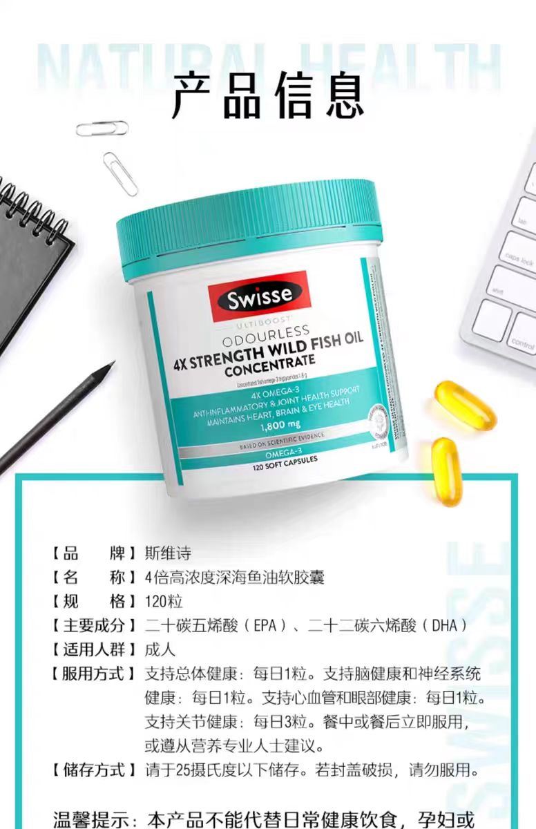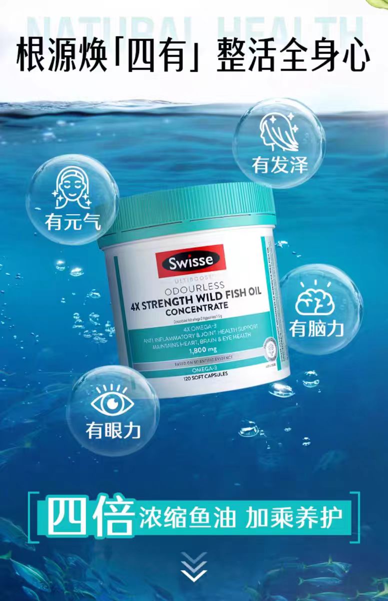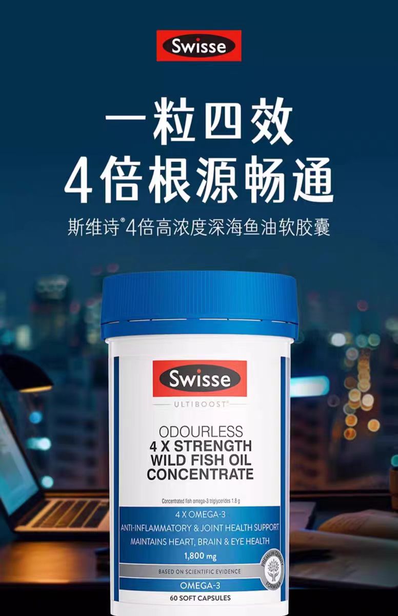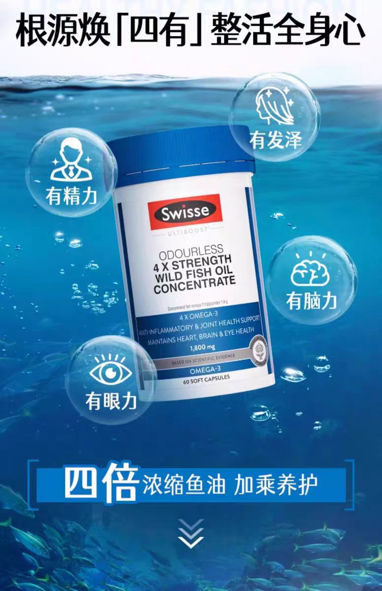 Swisse四倍强度野生深海鱼油胶囊的独特之处在于其高浓度的鱼油配方。