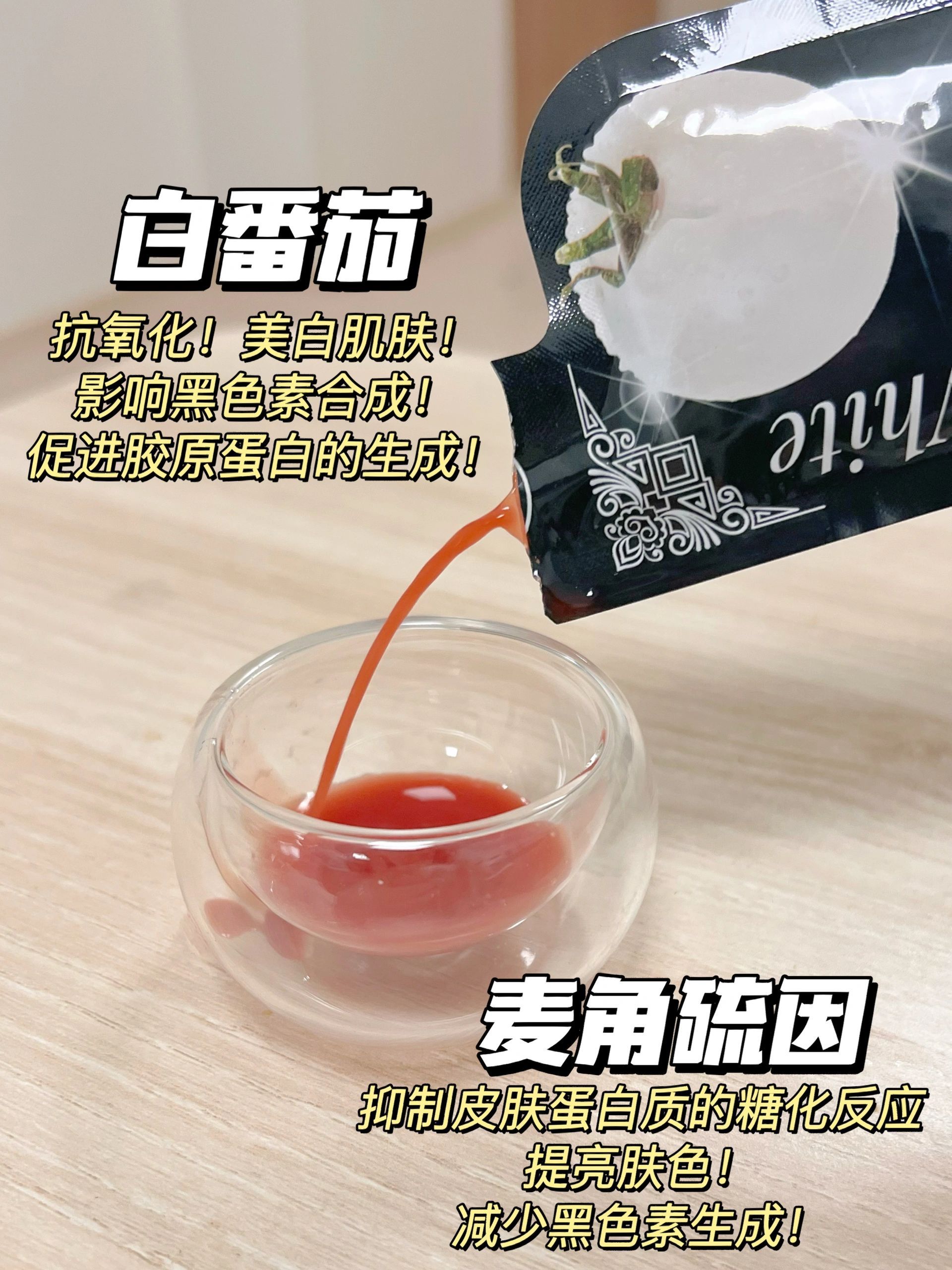 1袋=100mg专利麦角硫因➕200mg高浓度专利白番茄,不玩虚的!喝!
