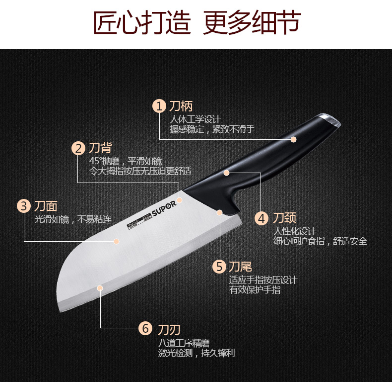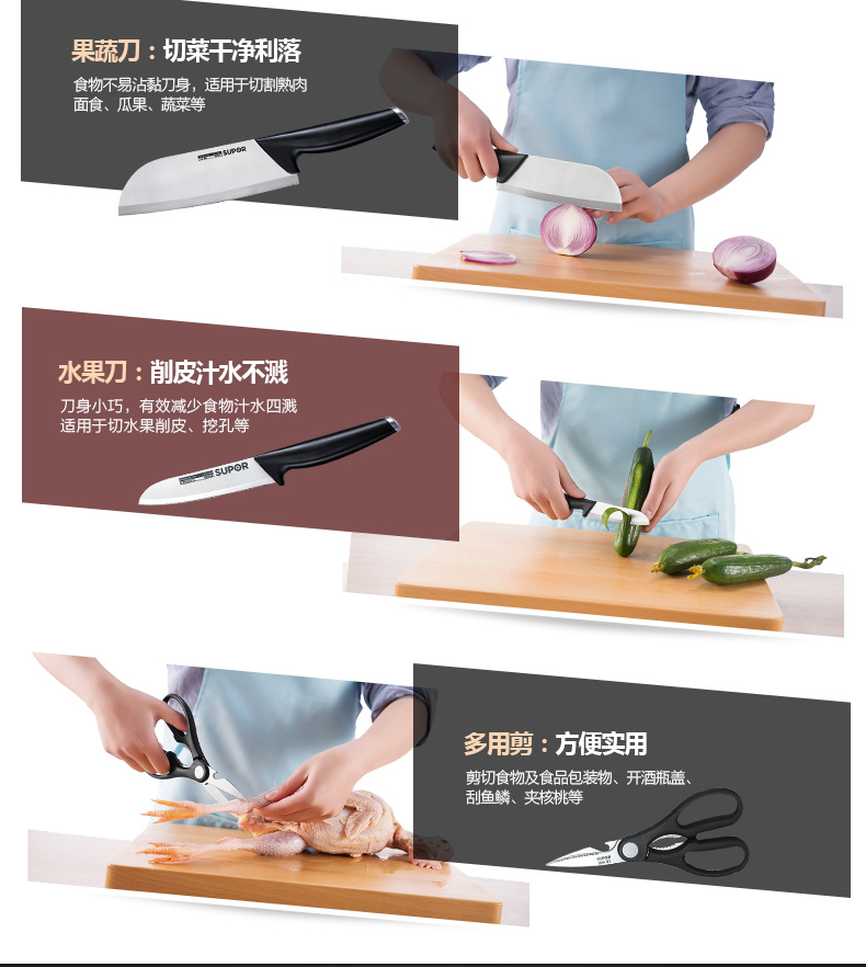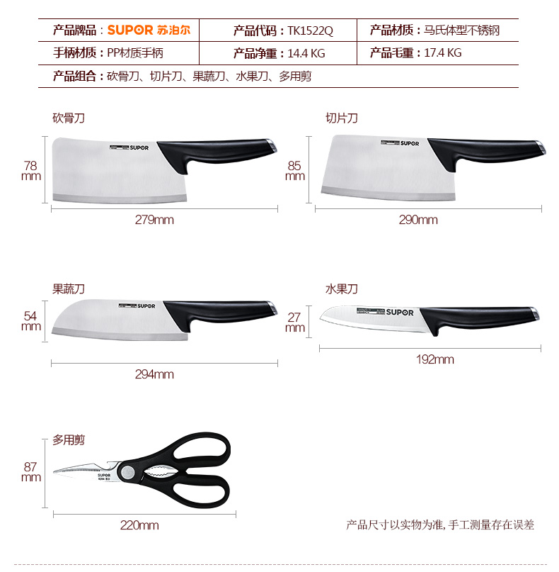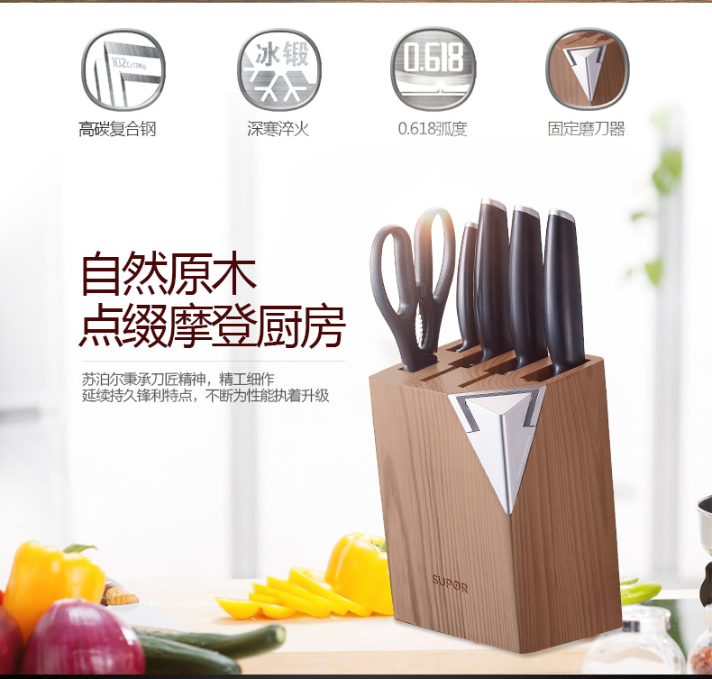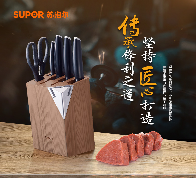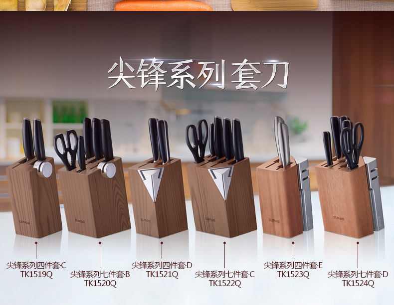 苏泊尔厨具TK1522Q刀具尖锋系列七件套·C菜刀剪刀小刀果皮刀