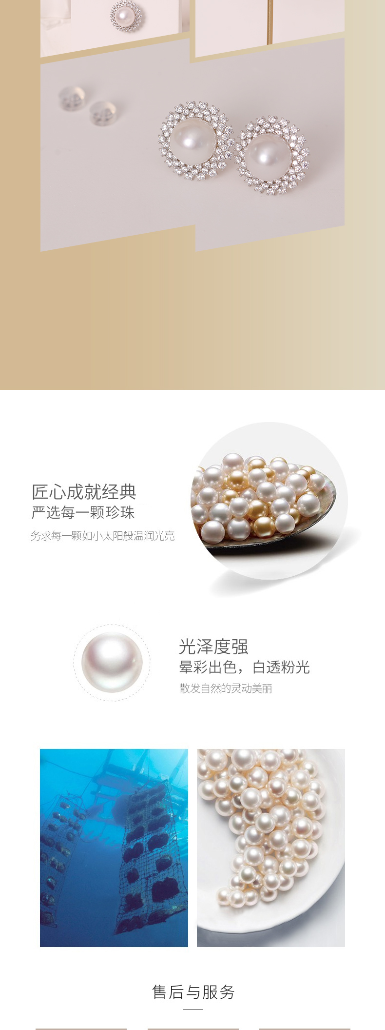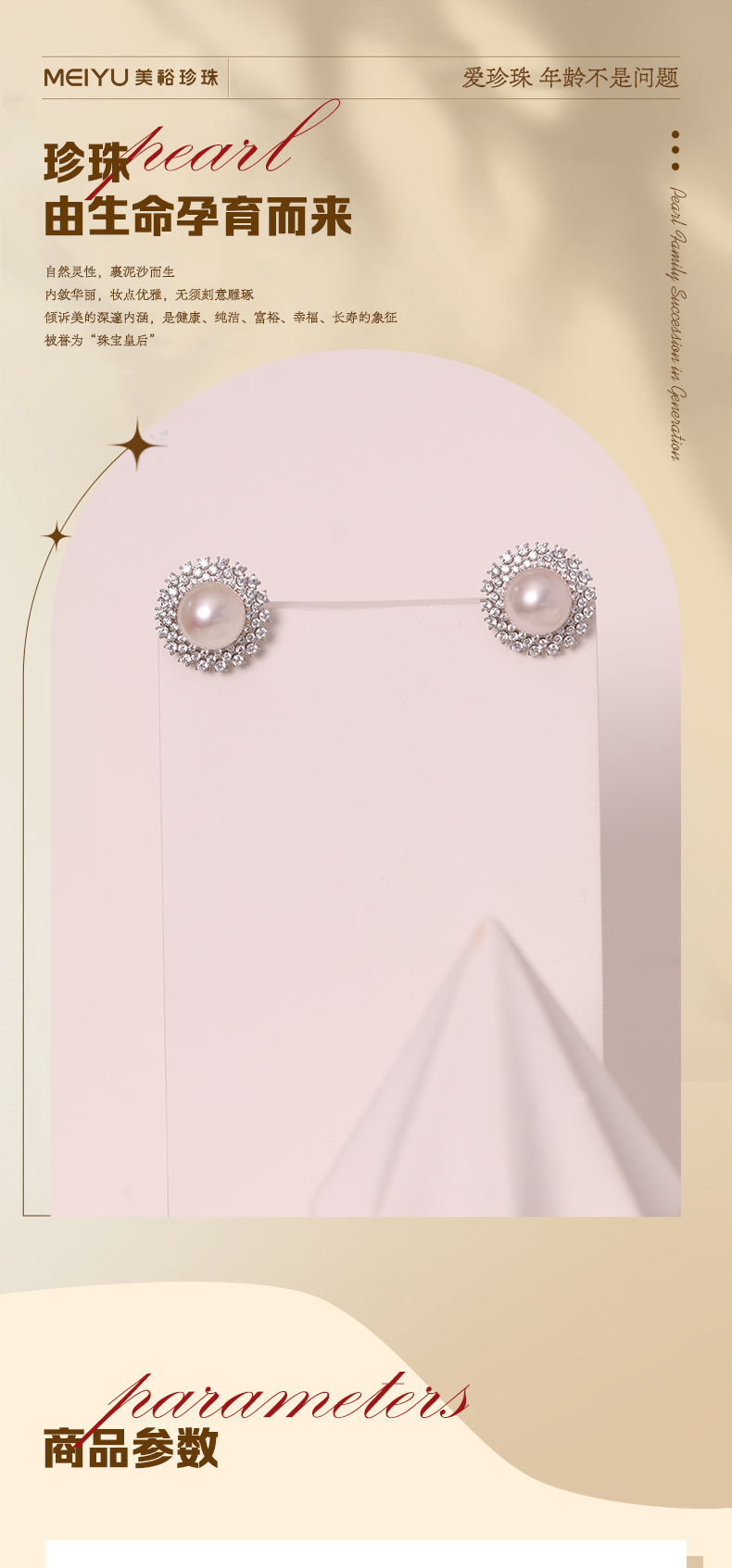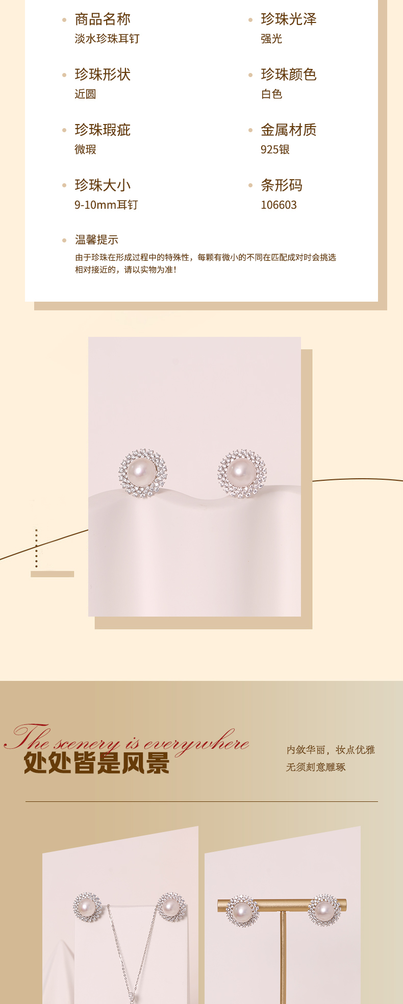 美裕 银925淡水珍珠耳钉 9-10mm白 106603