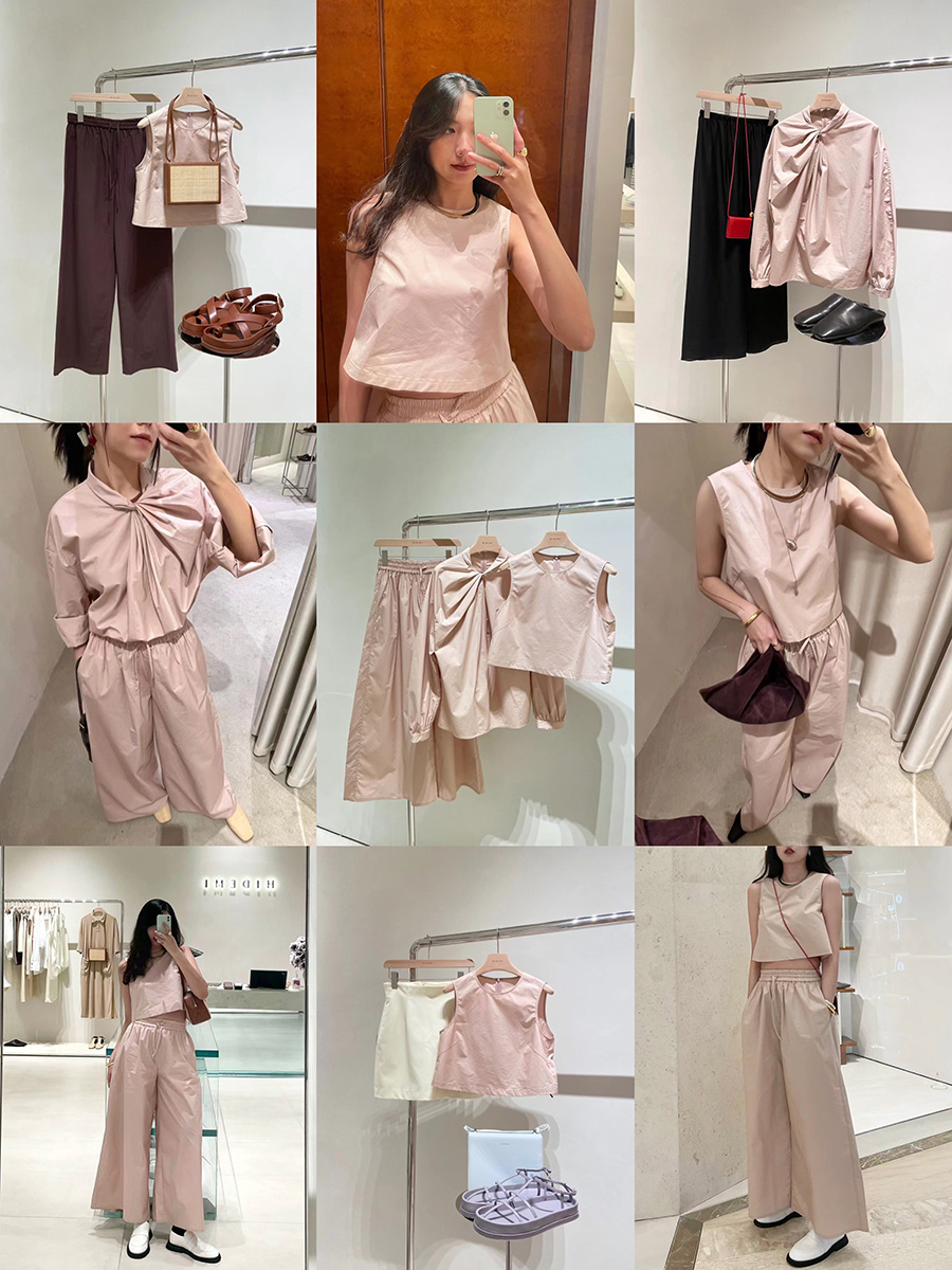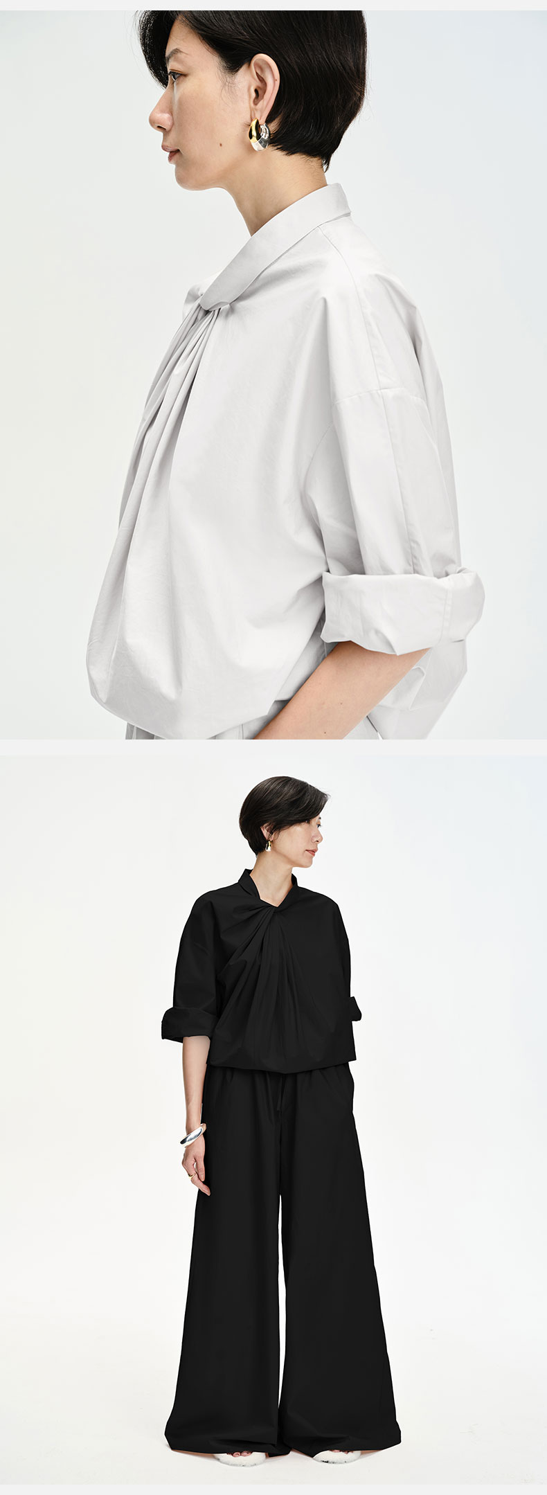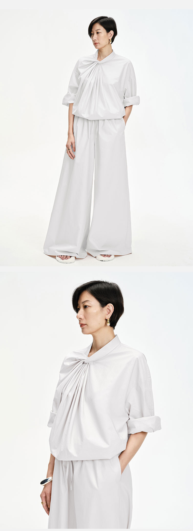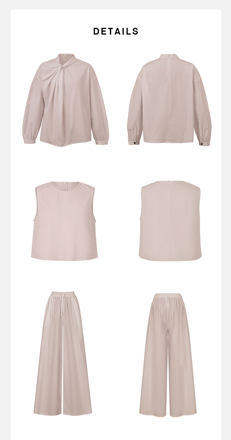HIDEMI 设计感⽔洗棉褶皱套装 ⾁桂粉/⽩⾊/⿊⾊