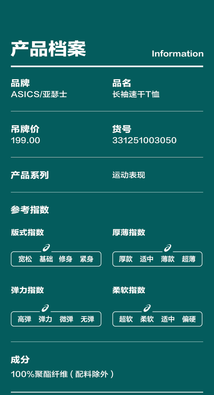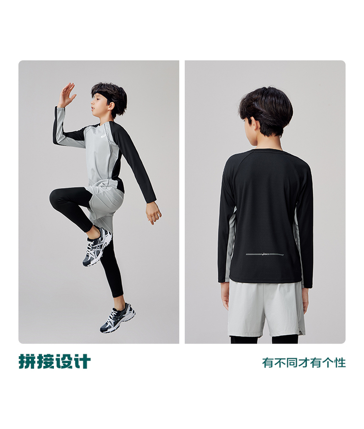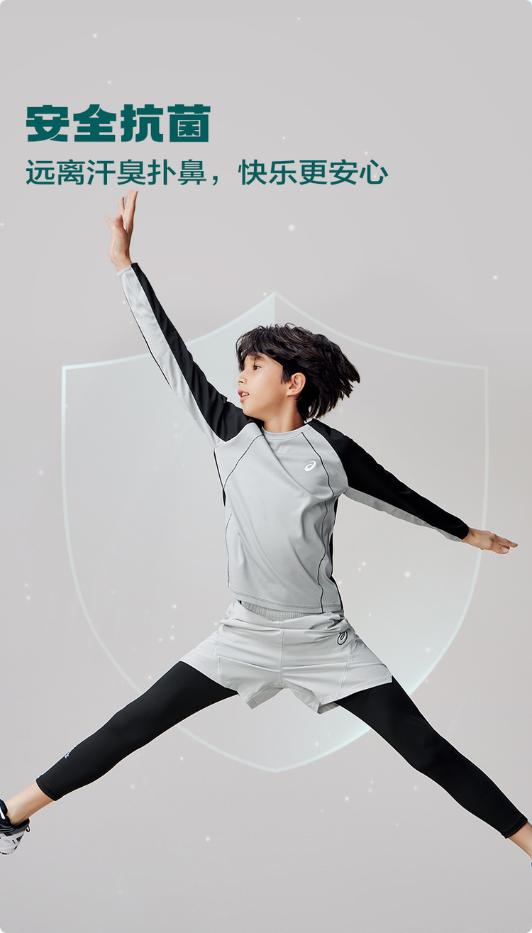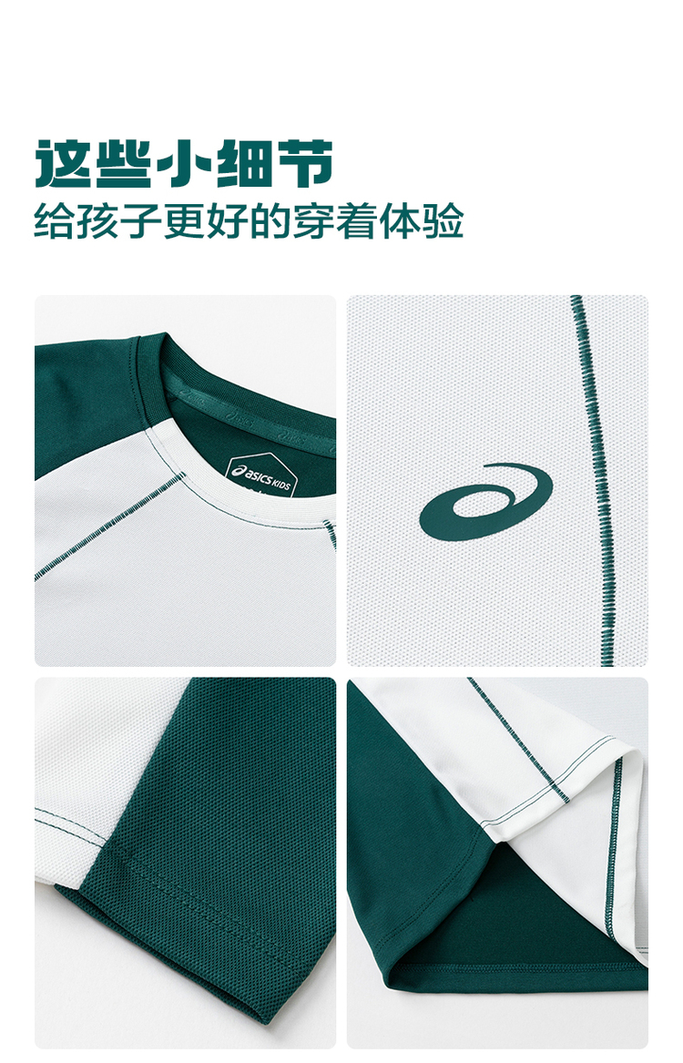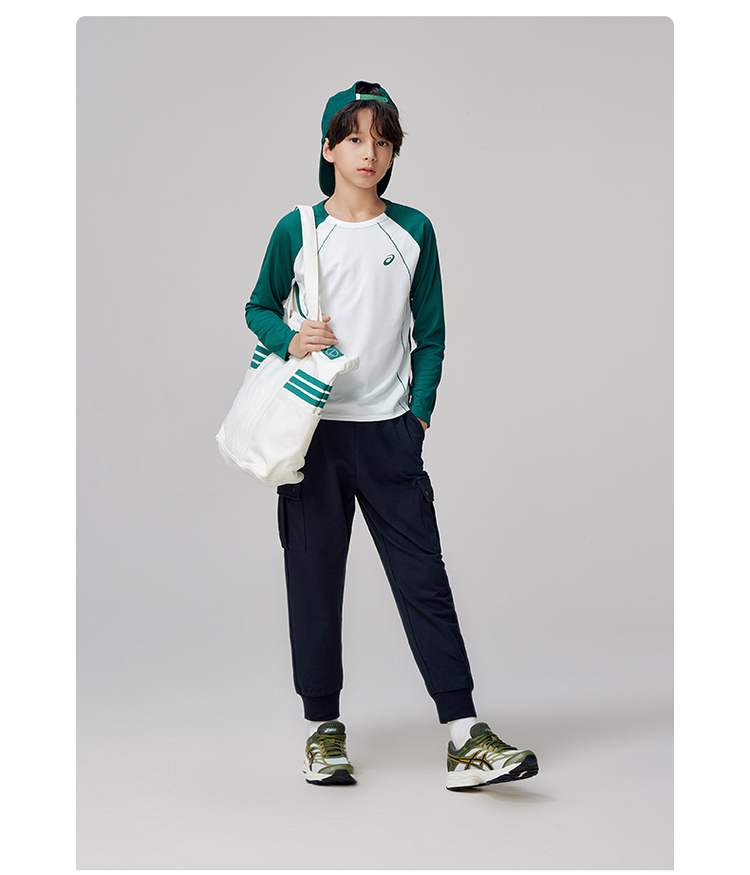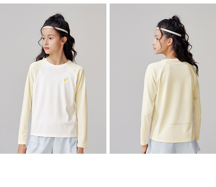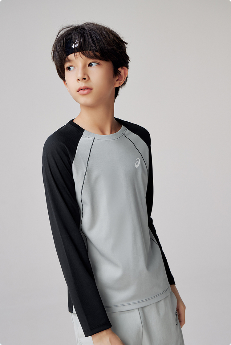 Asics/亚瑟士童装运动插肩袖T恤吸湿排汗抗菌针织内搭2025年春季