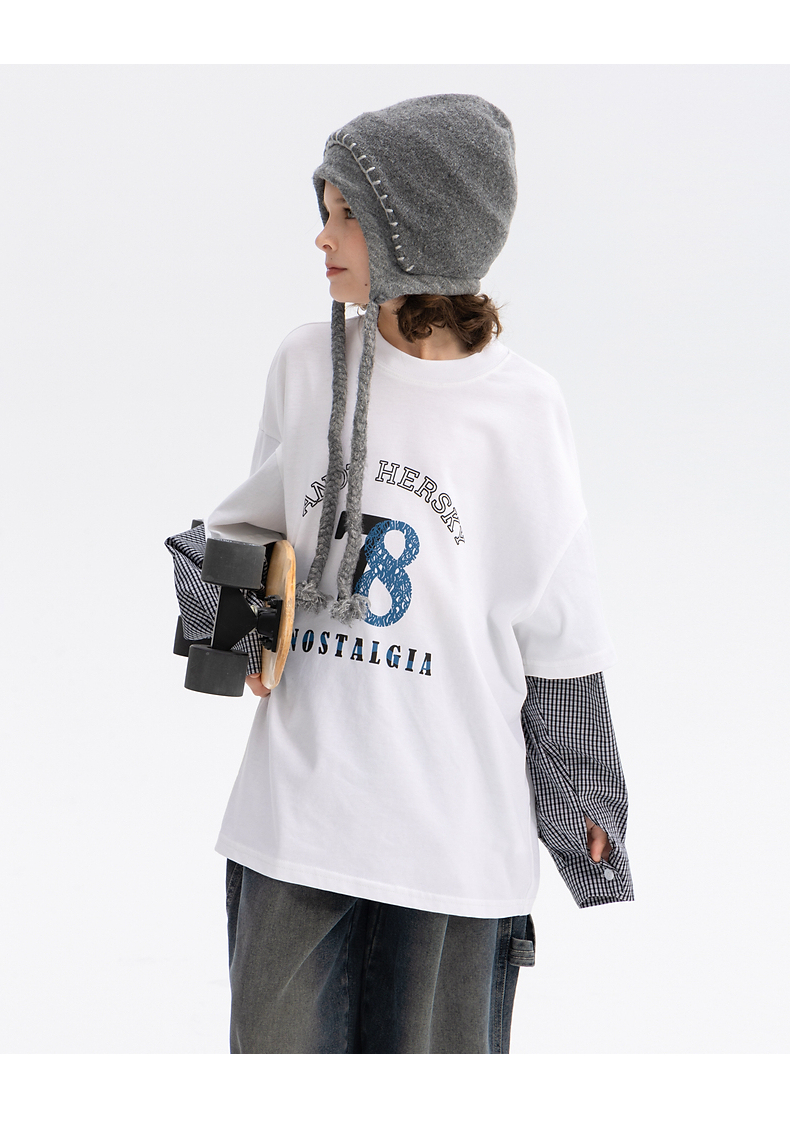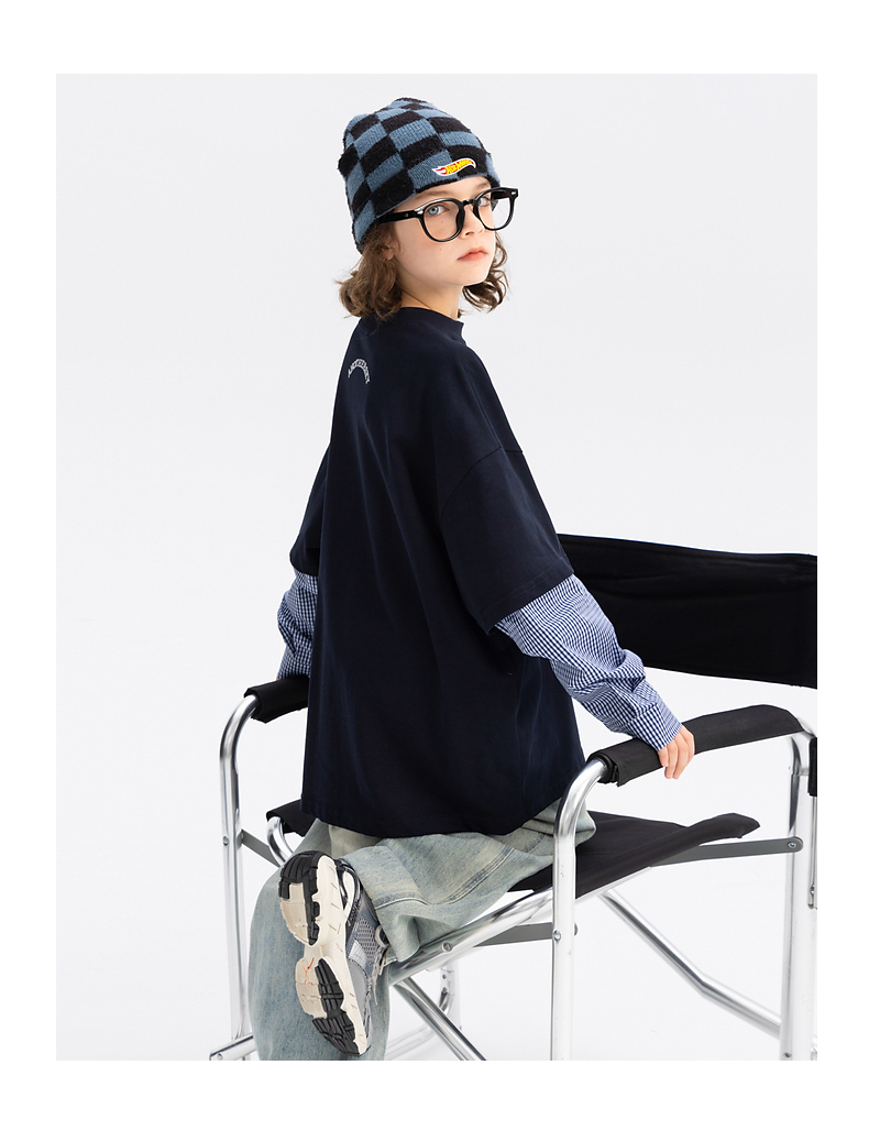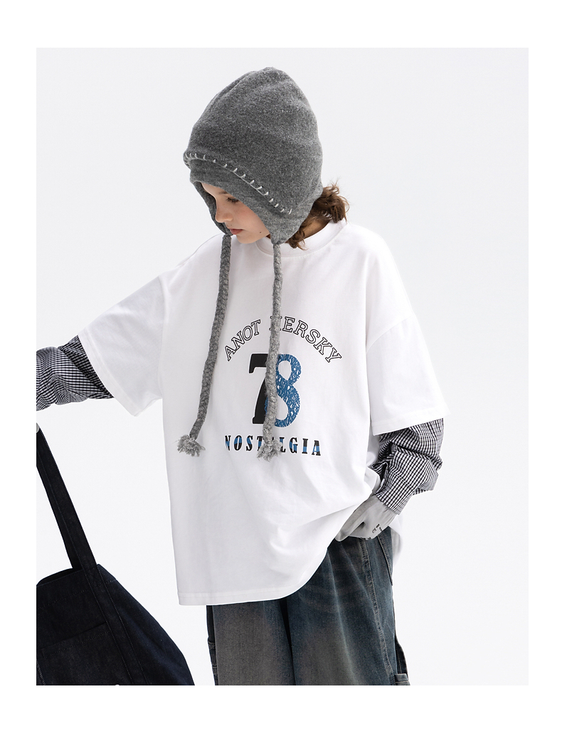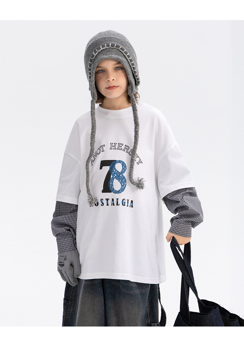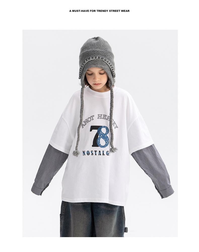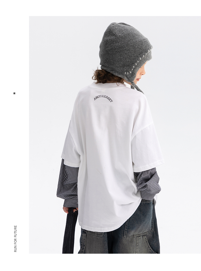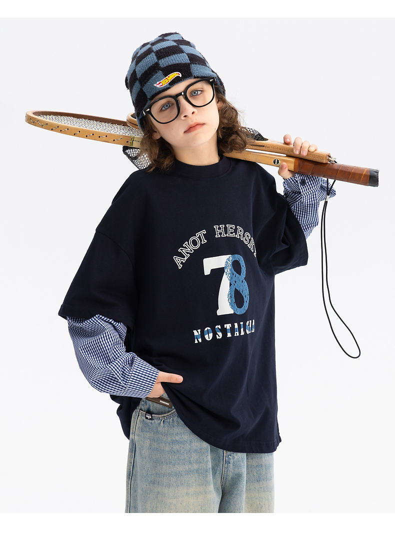 anothersky 男童秋季纯棉假两件t恤2025新款儿童洋气秋装长袖上衣