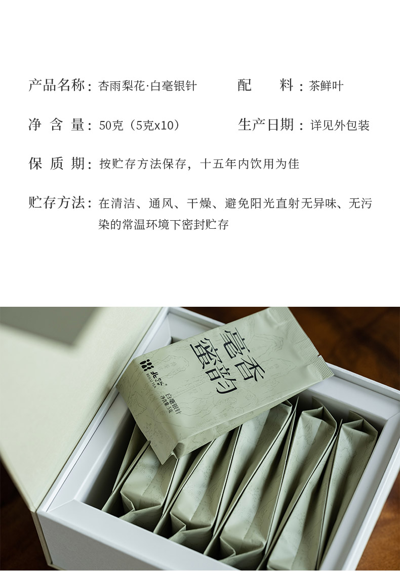「北路白茶」杏雨梨花 福鼎白茶白毫银针2024新茶明前特级茶叶50g